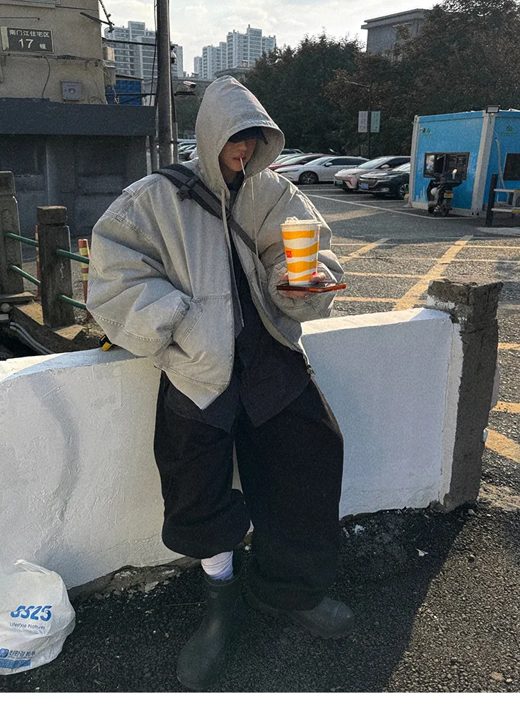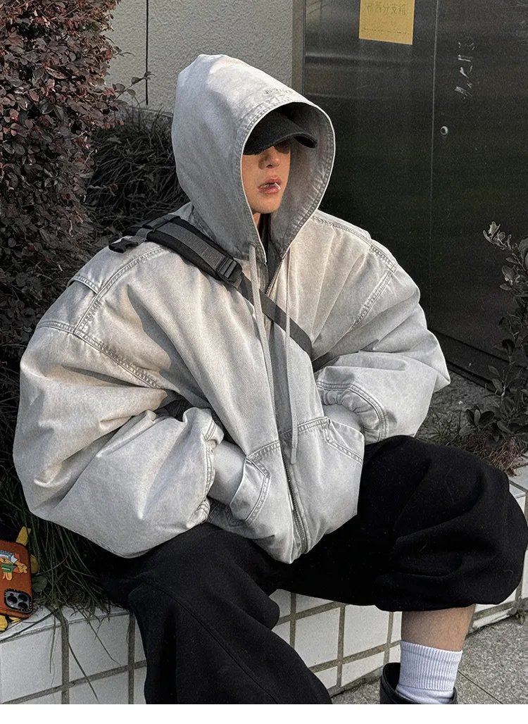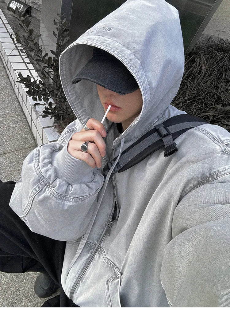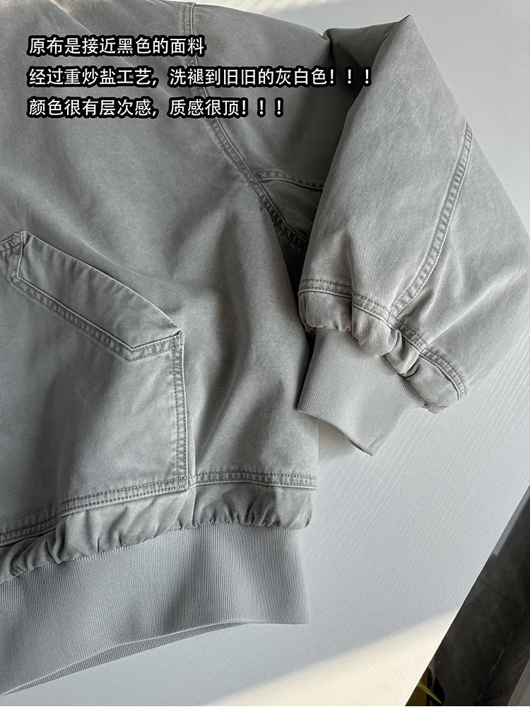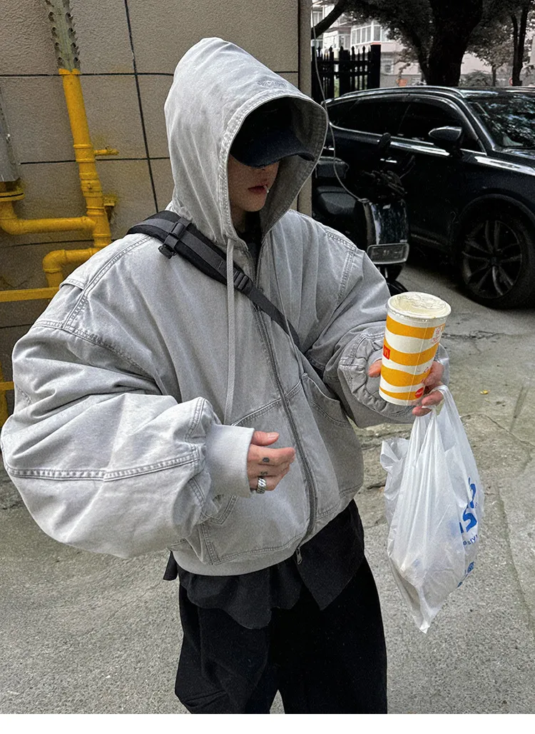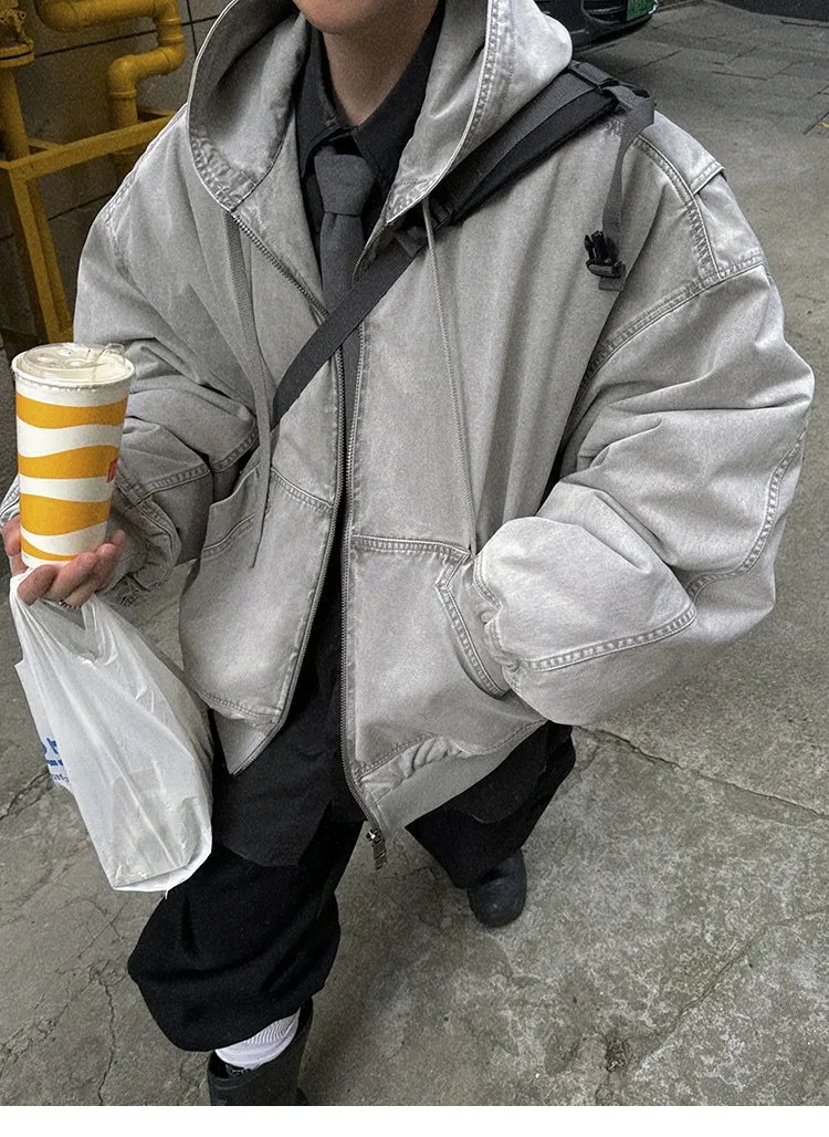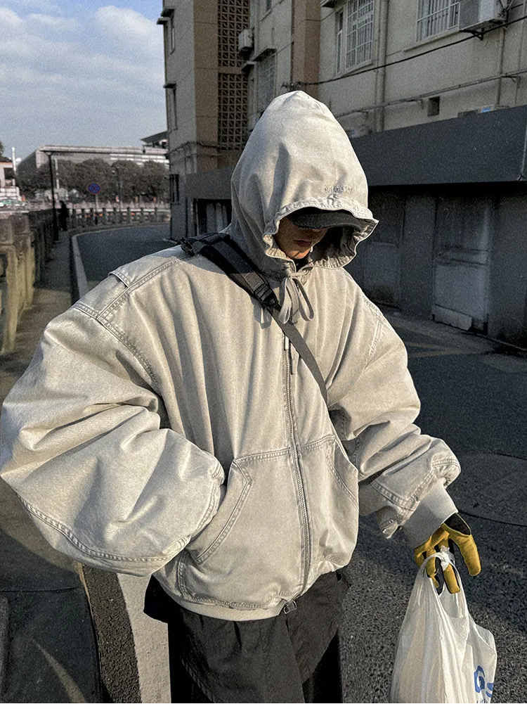 AUROCEAN 寬短 連帽 重磅 外套(灰白)