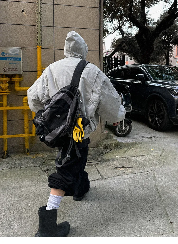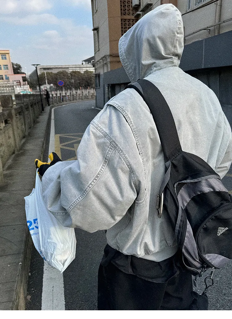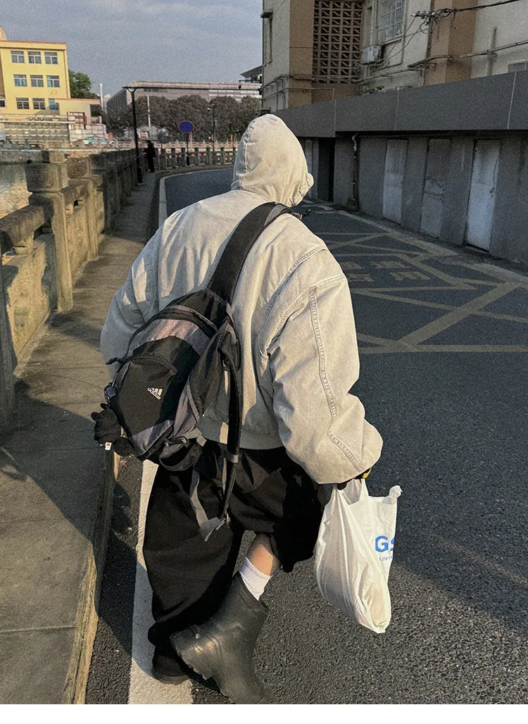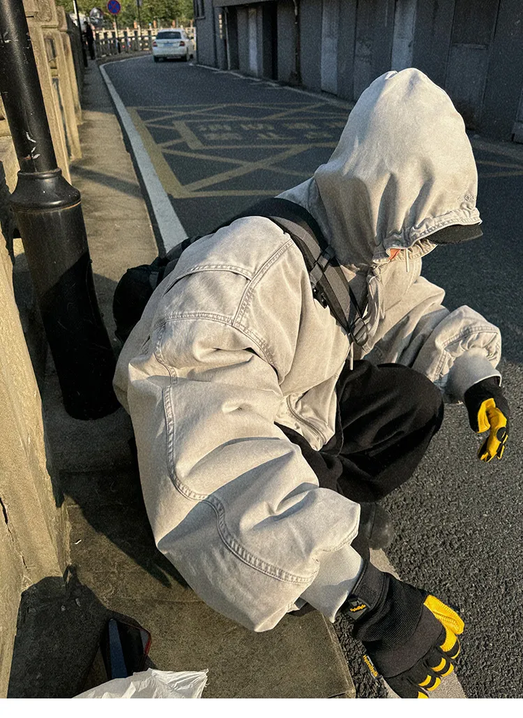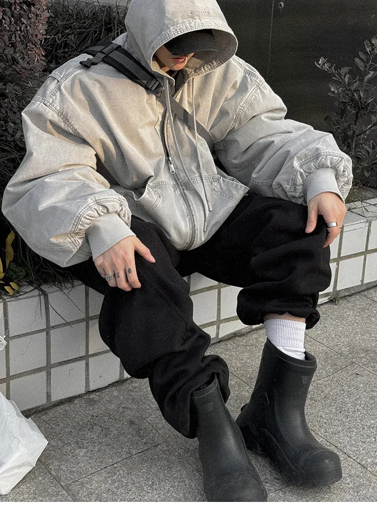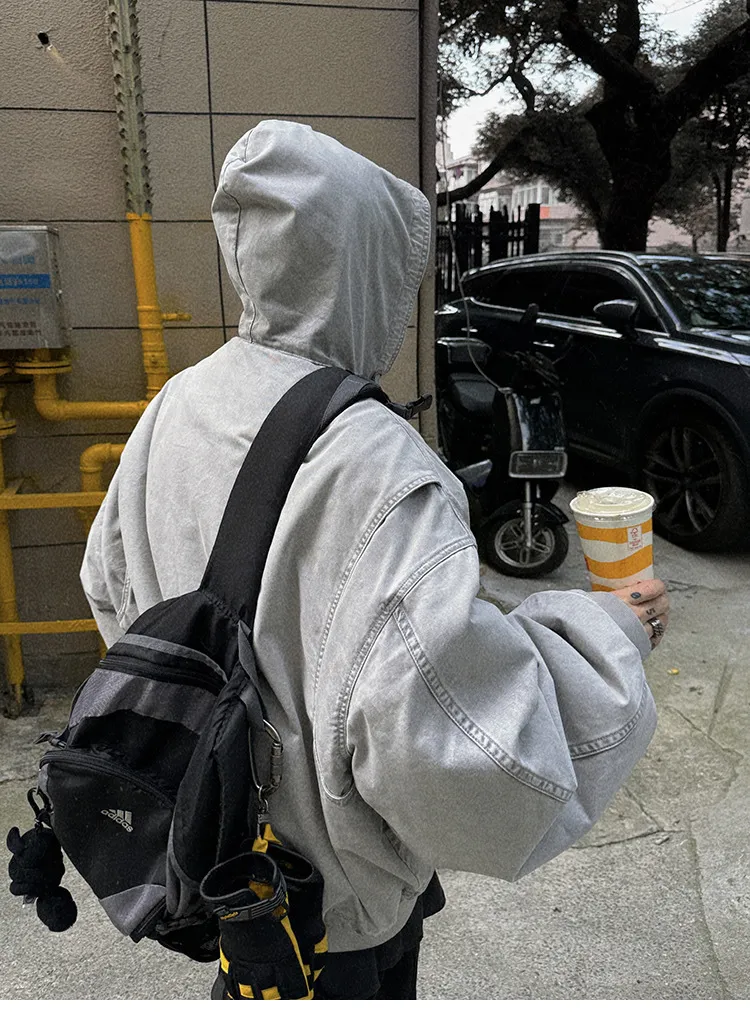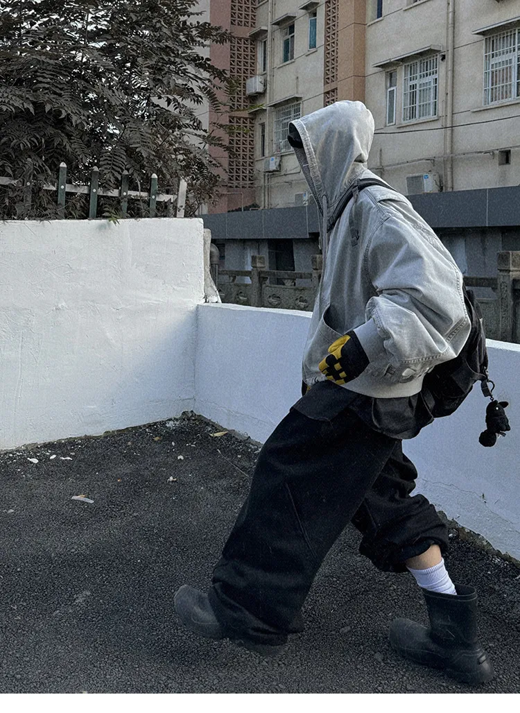 AUROCEAN 寬短 連帽 重磅 外套(灰白)
