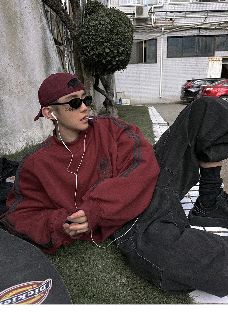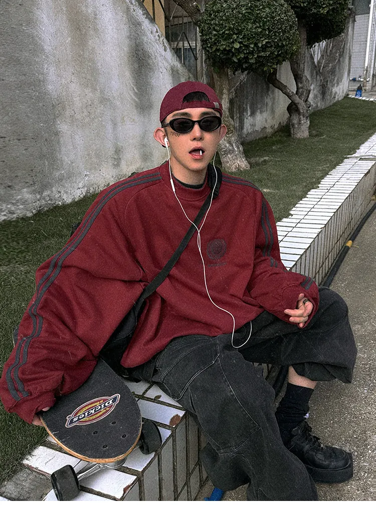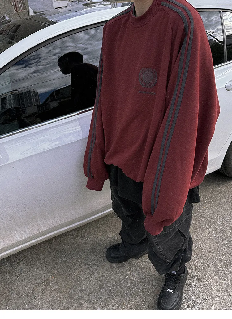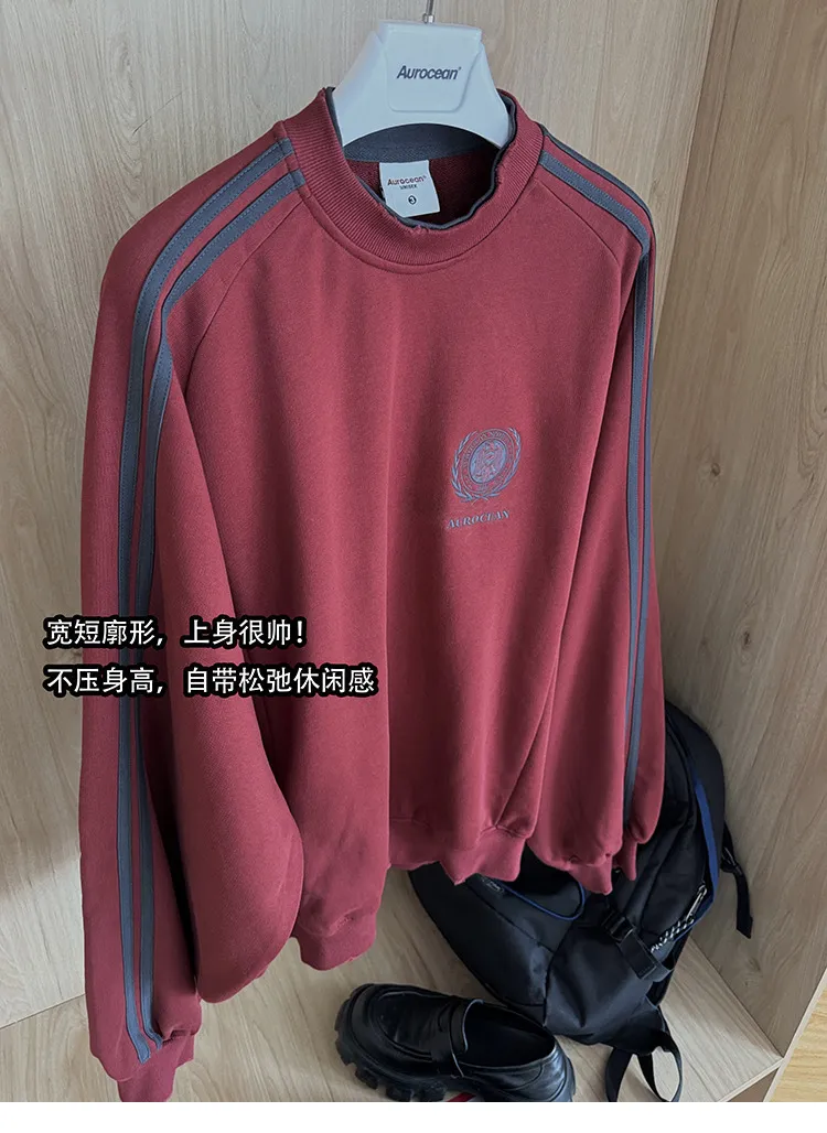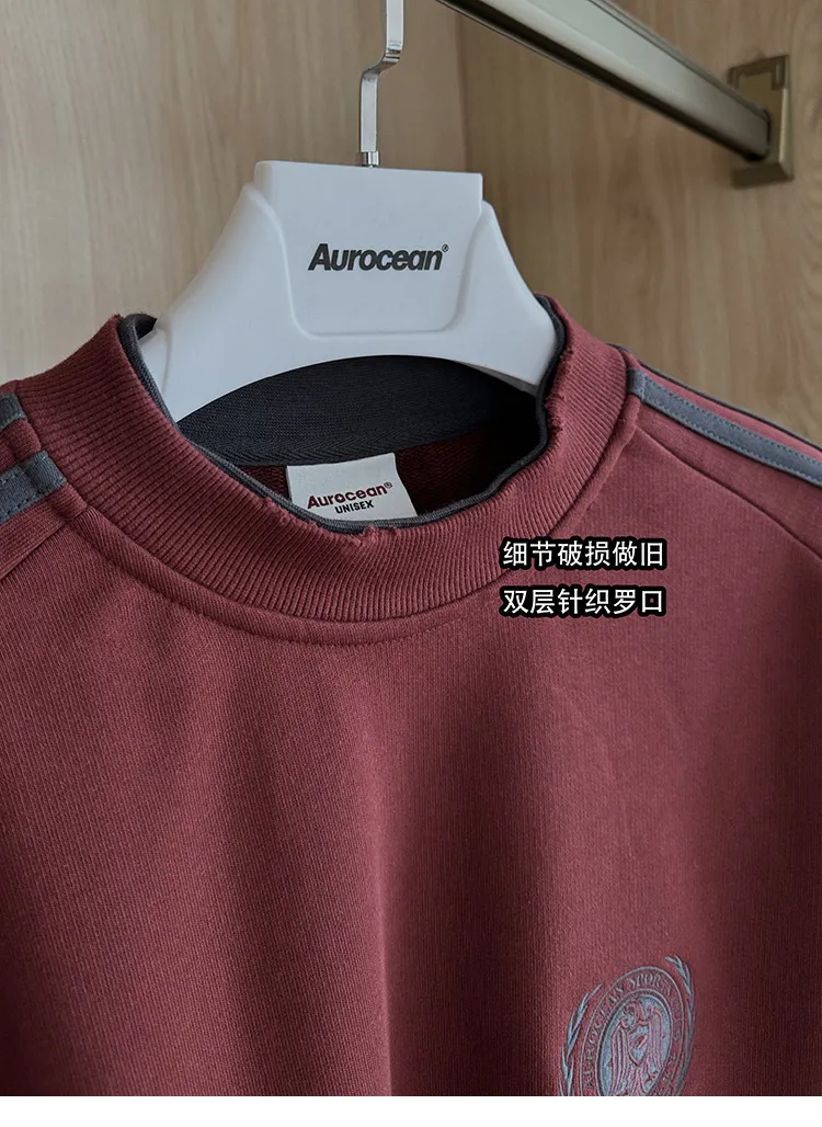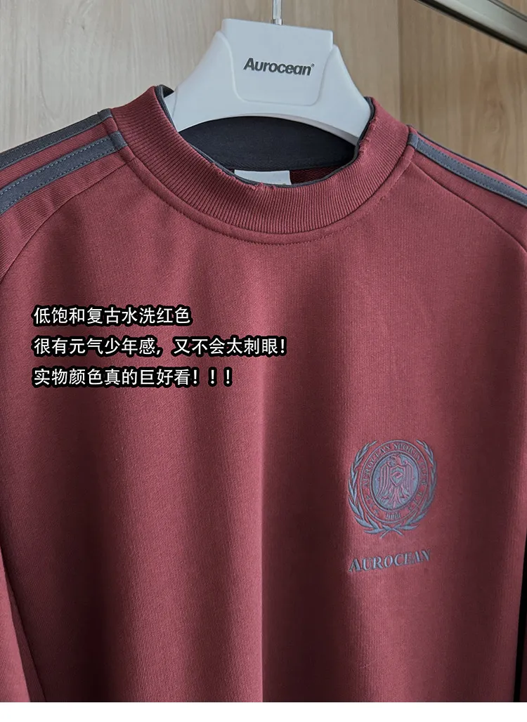 AUROCEAN 復古學院 徽章刺繡 寬短 大學踢 (紅色)