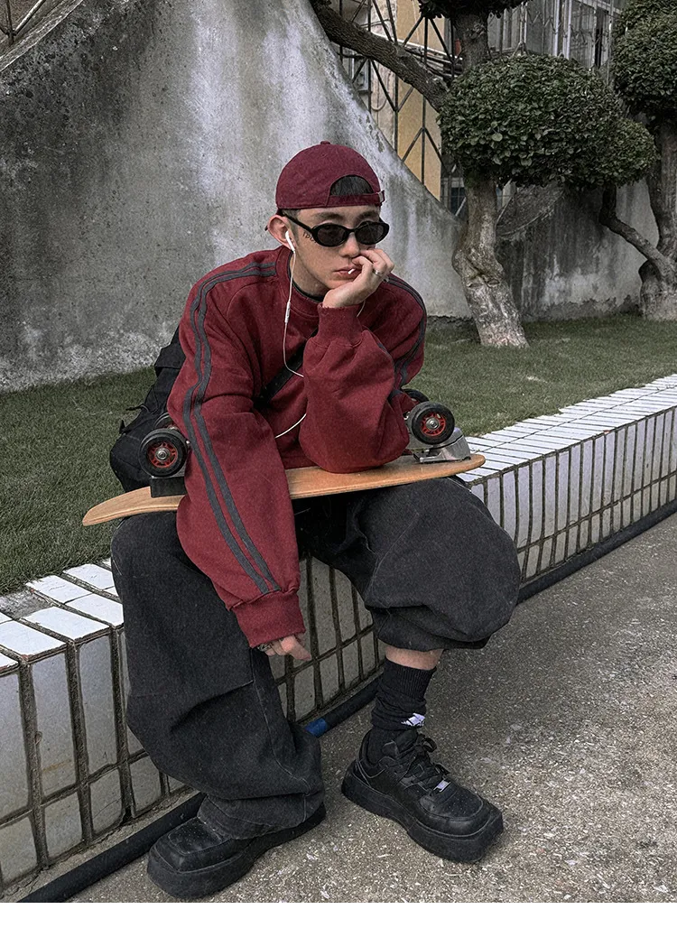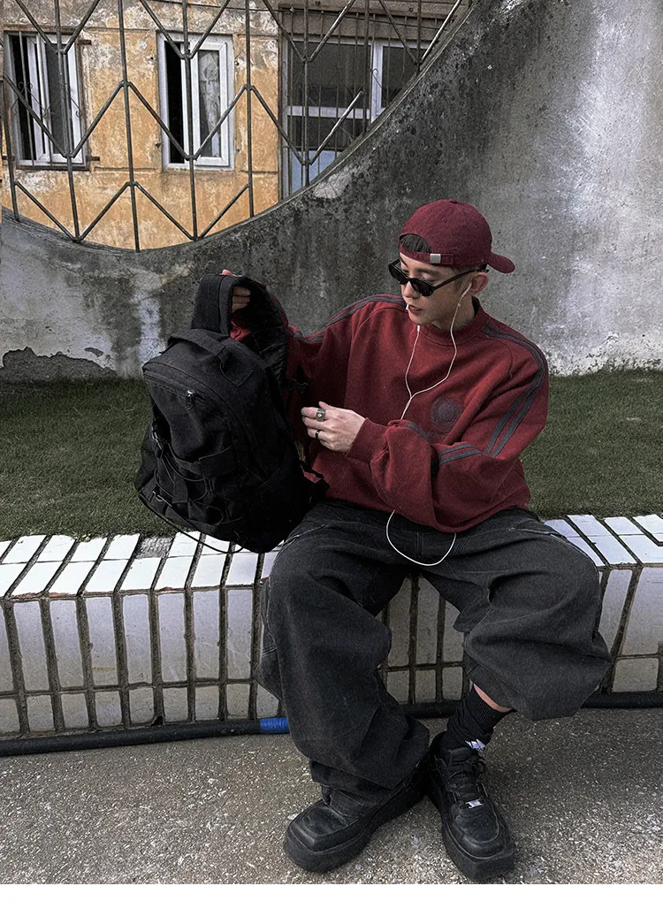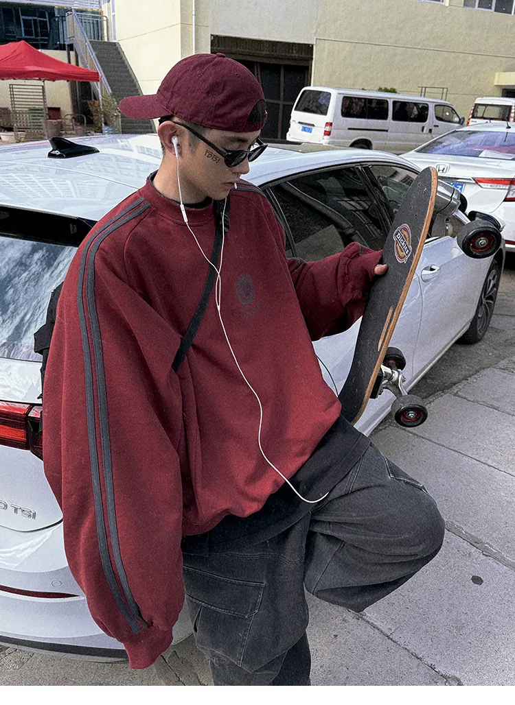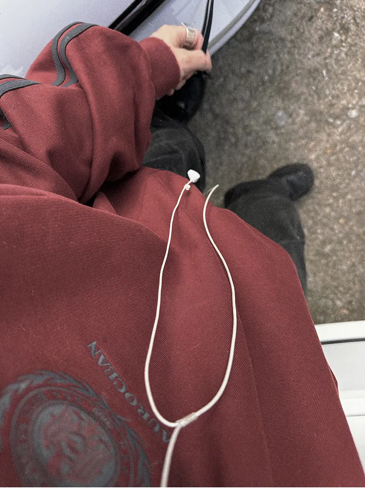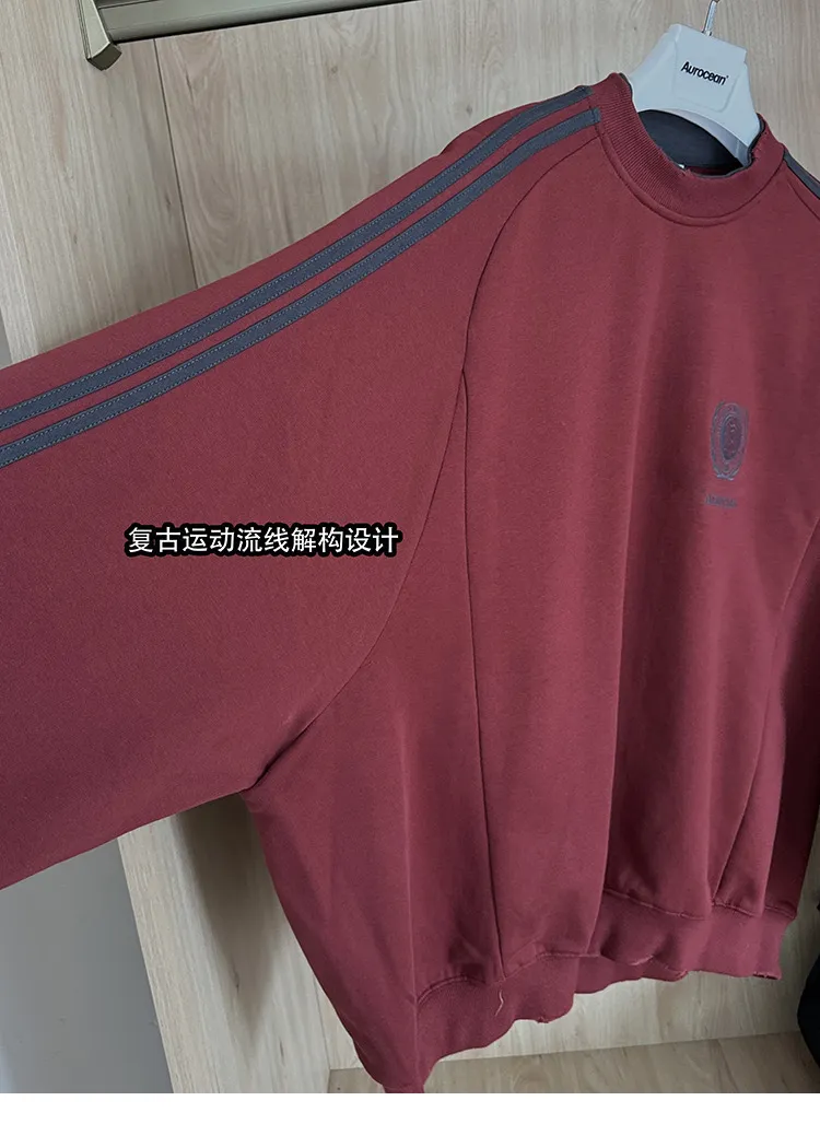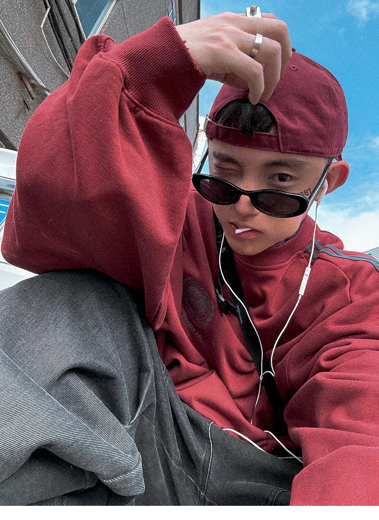AUROCEAN 復古學院 徽章刺繡 寬短 大學踢 (紅色)