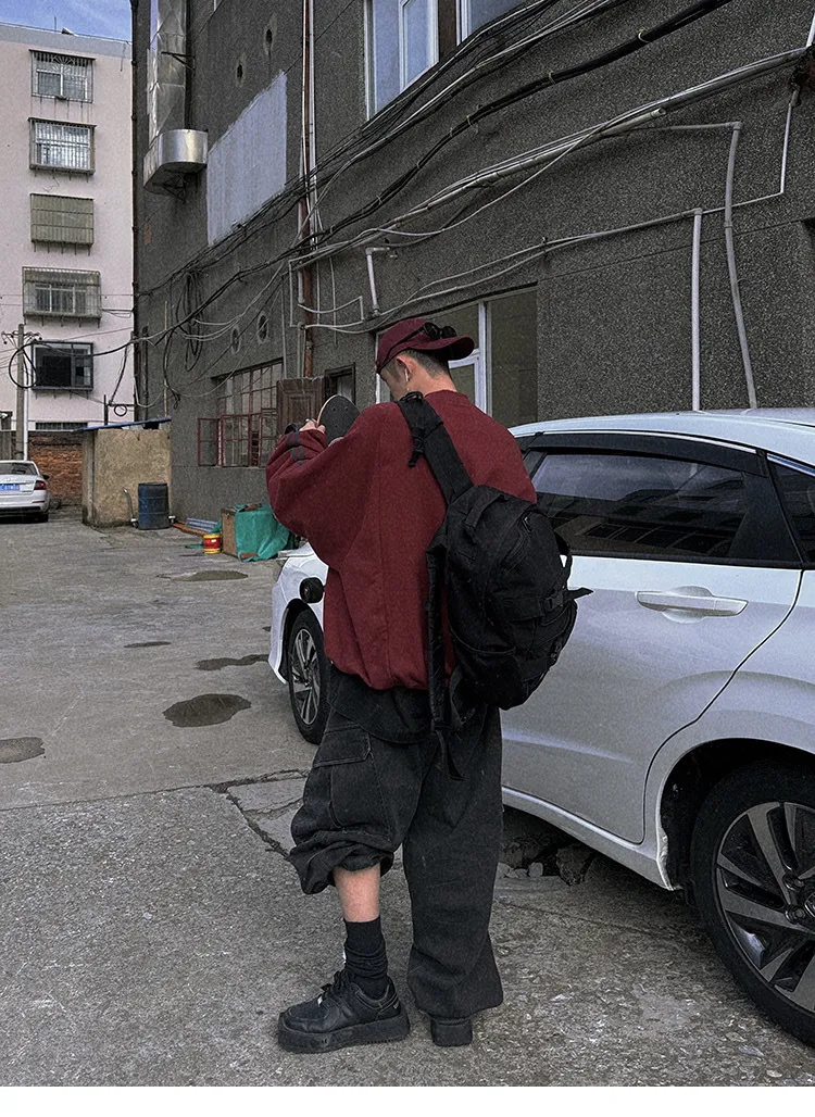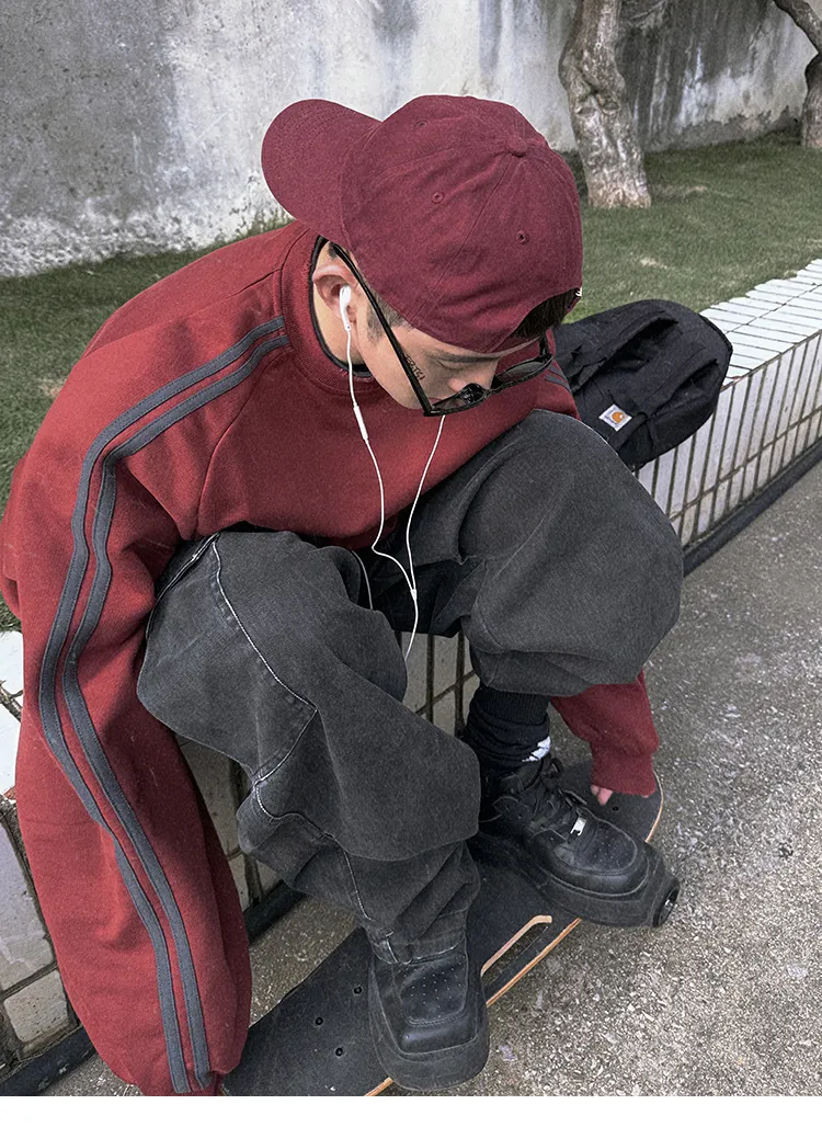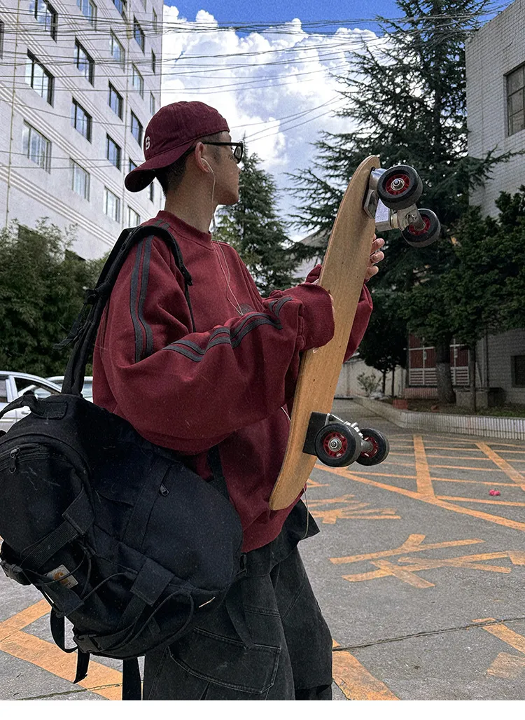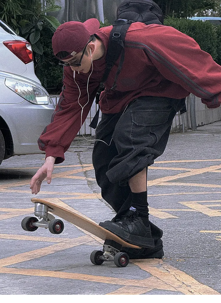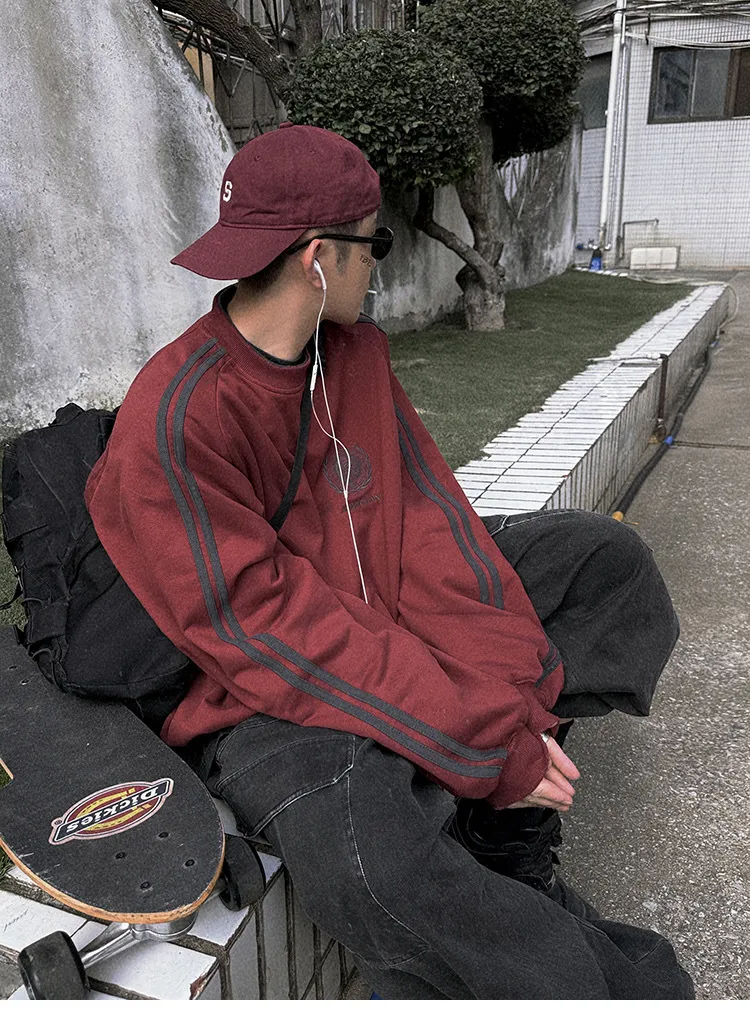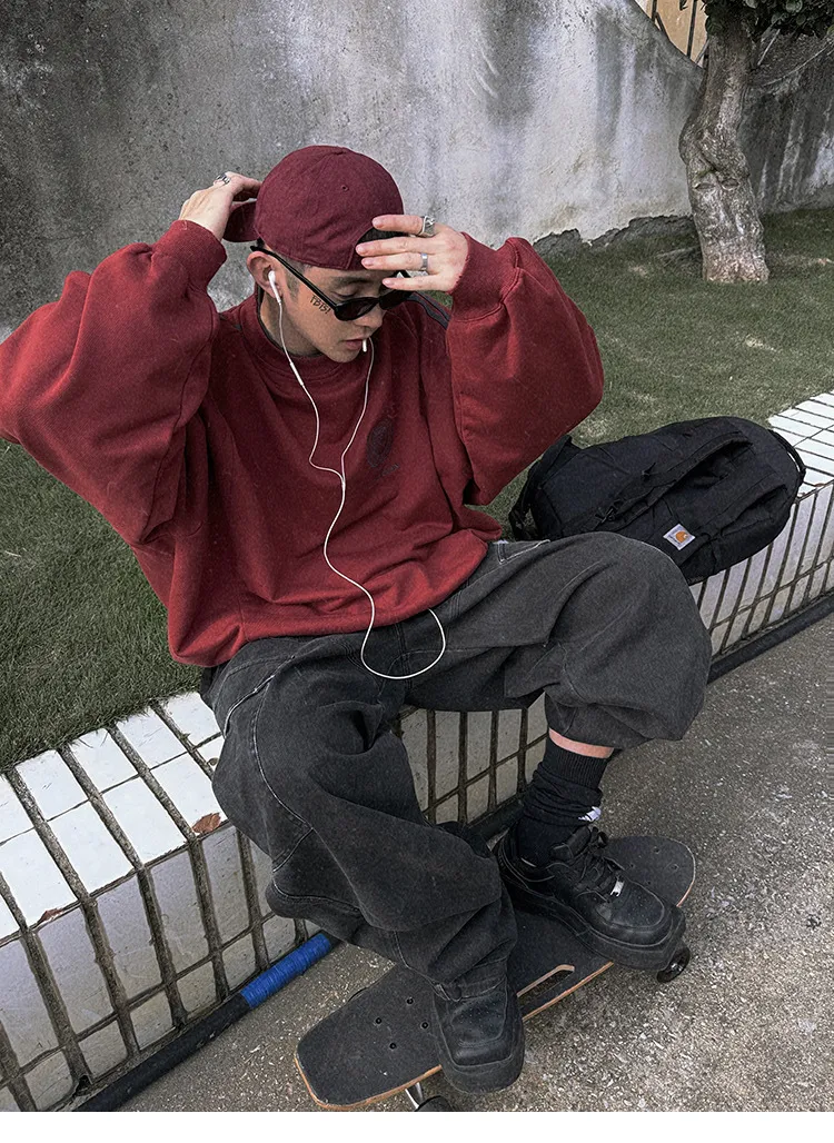 AUROCEAN 復古學院 徽章刺繡 寬短 大學踢 (紅色)