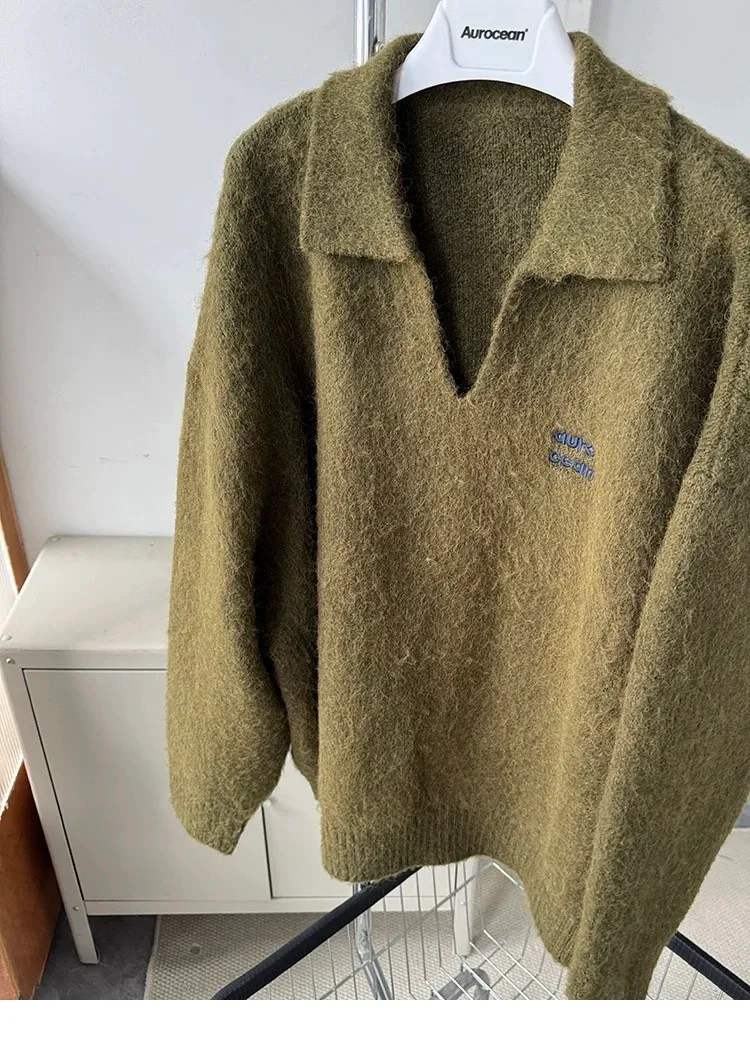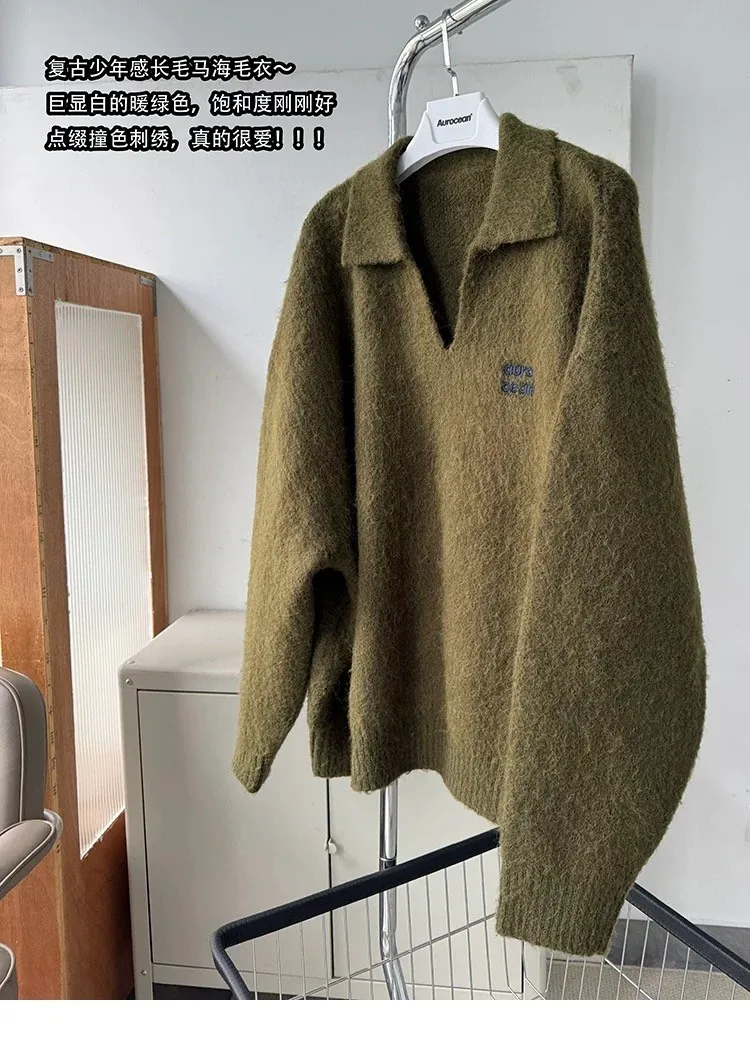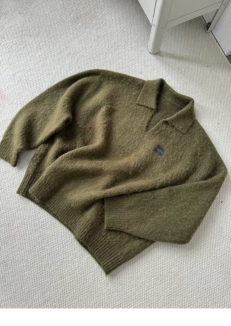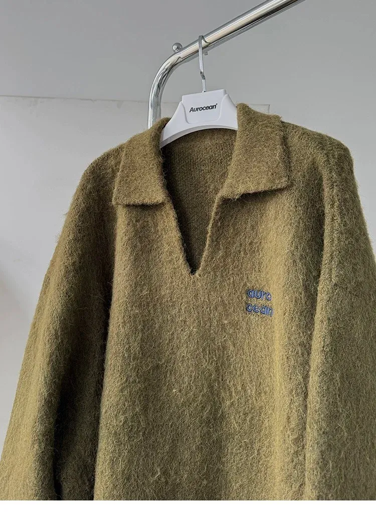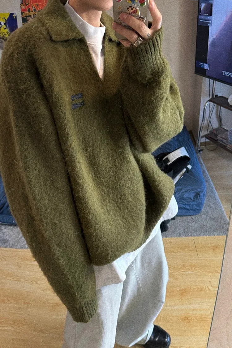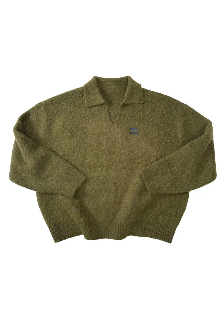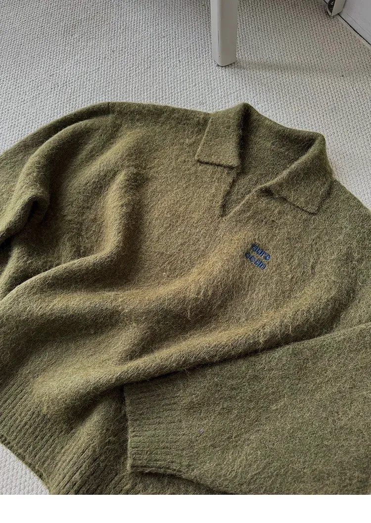 AUROCEAN 馬海毛 保暖翻領 毛衣(暖綠)
