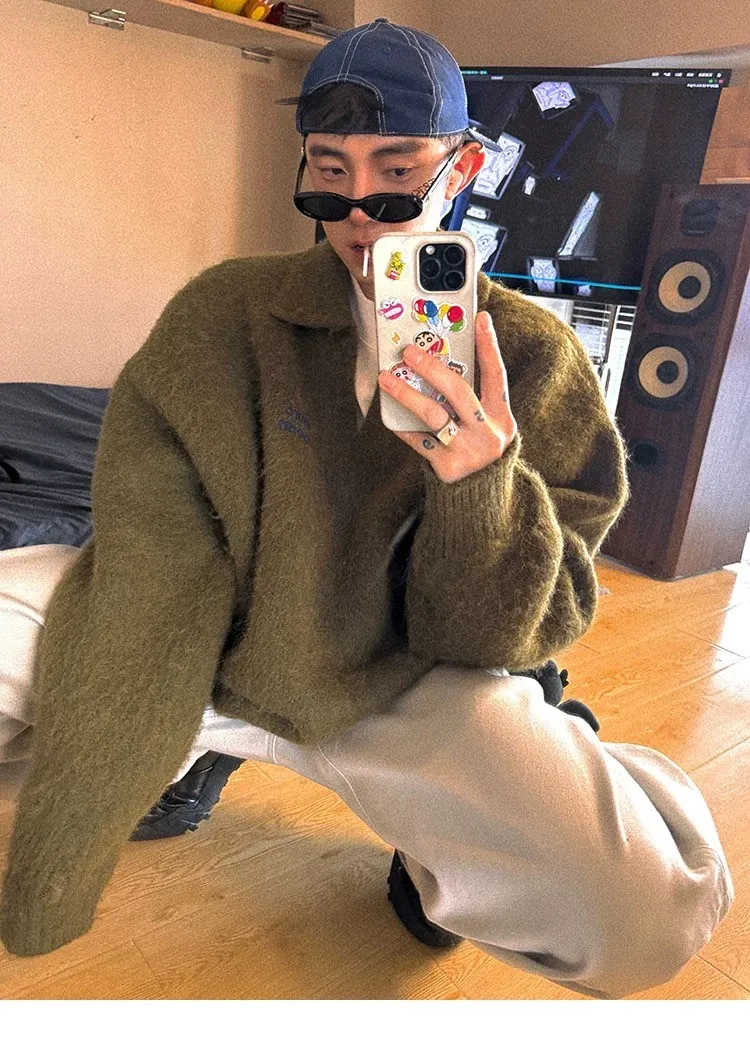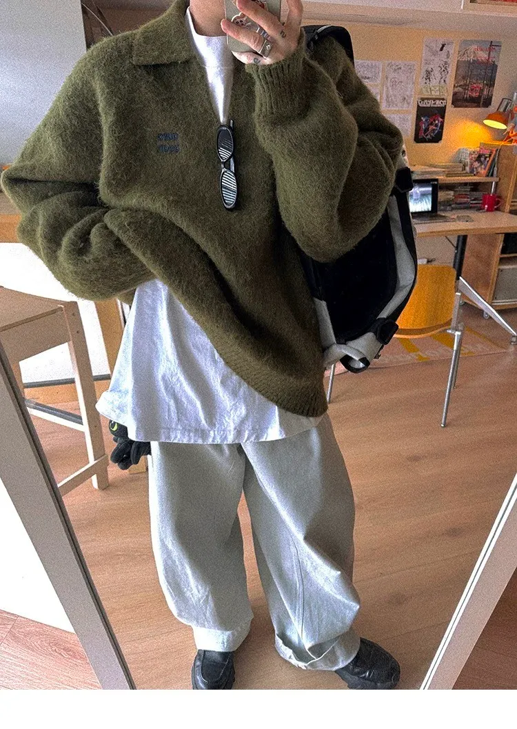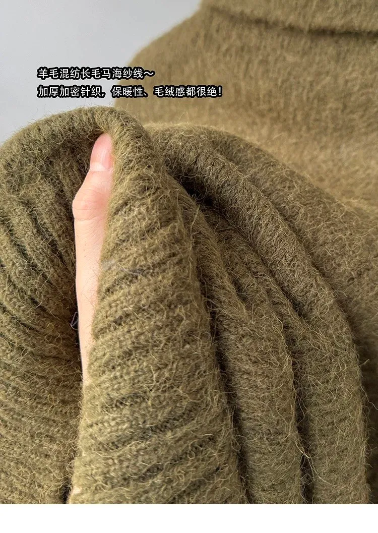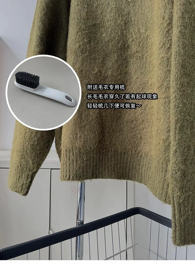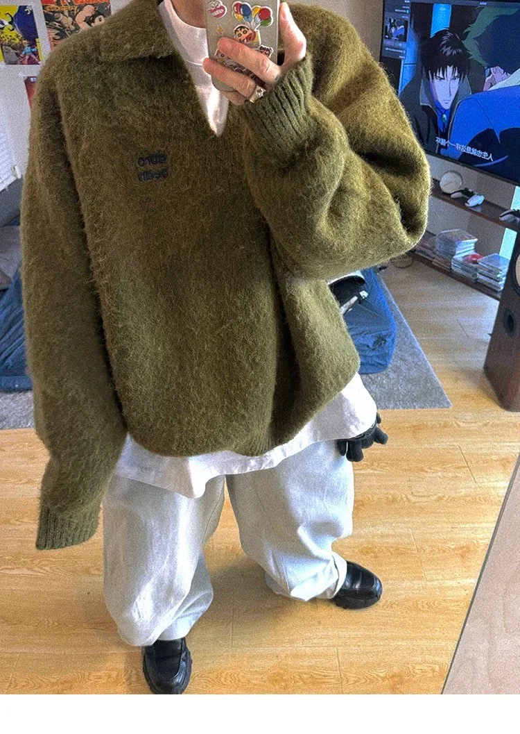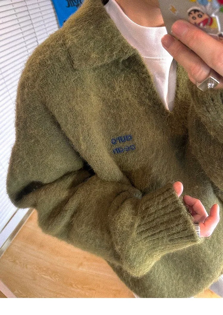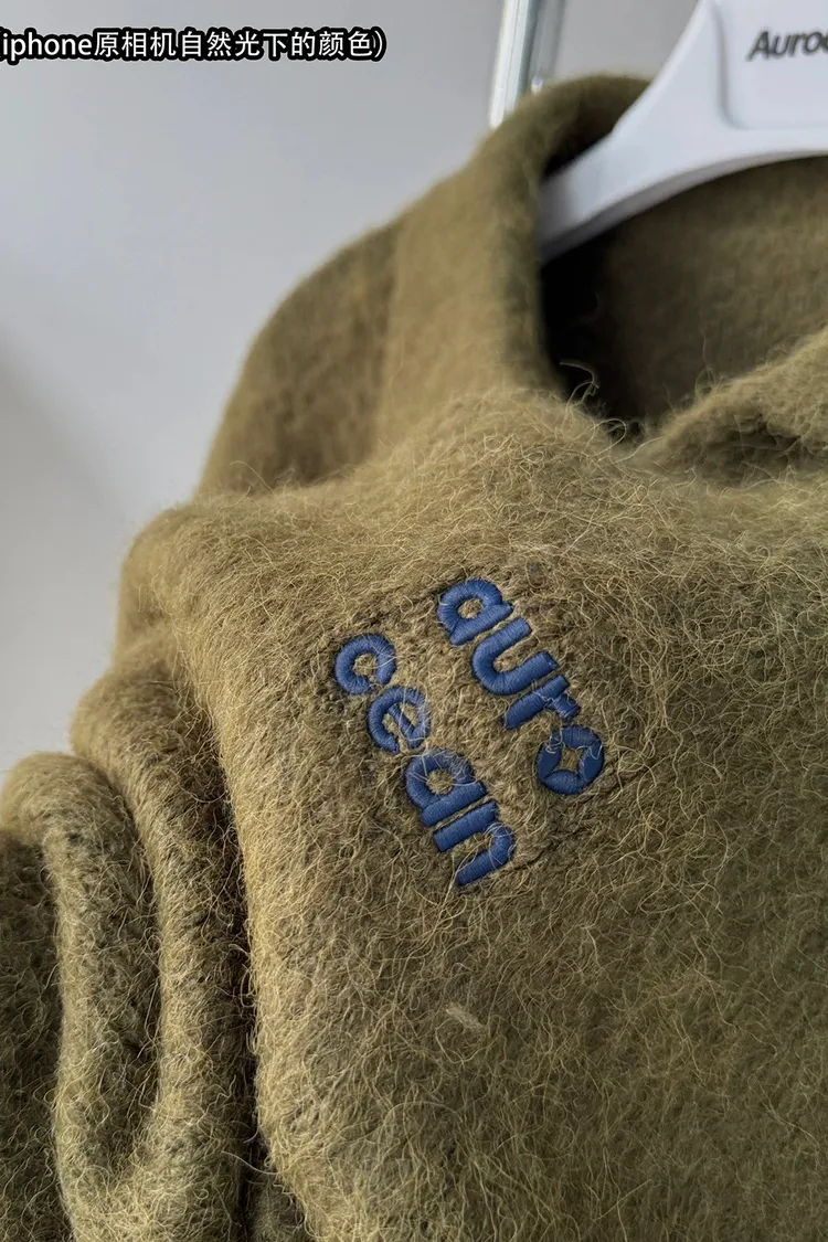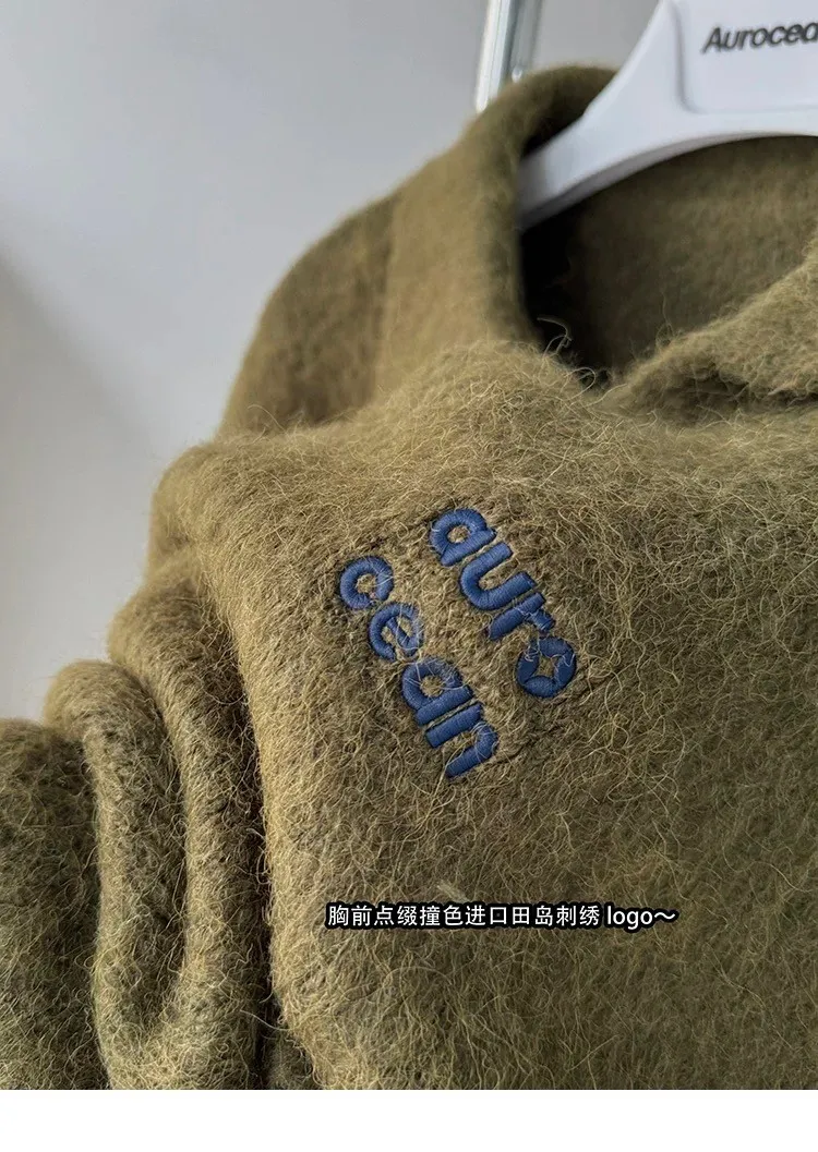 AUROCEAN 馬海毛 保暖翻領 毛衣(暖綠)