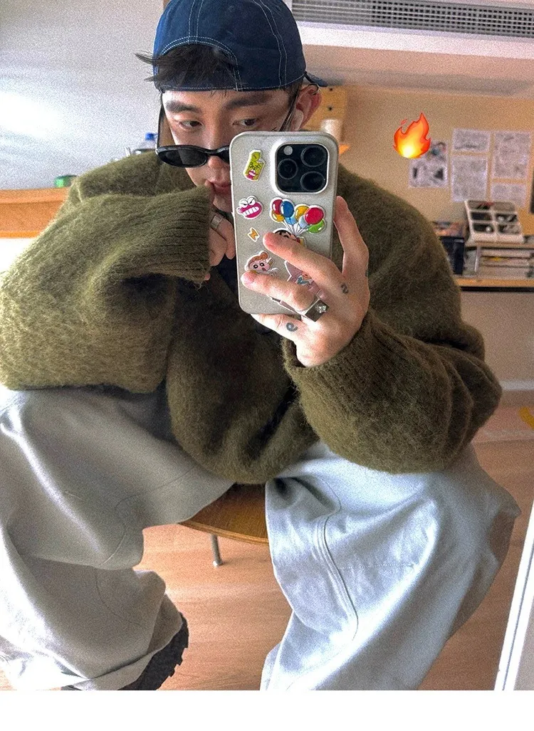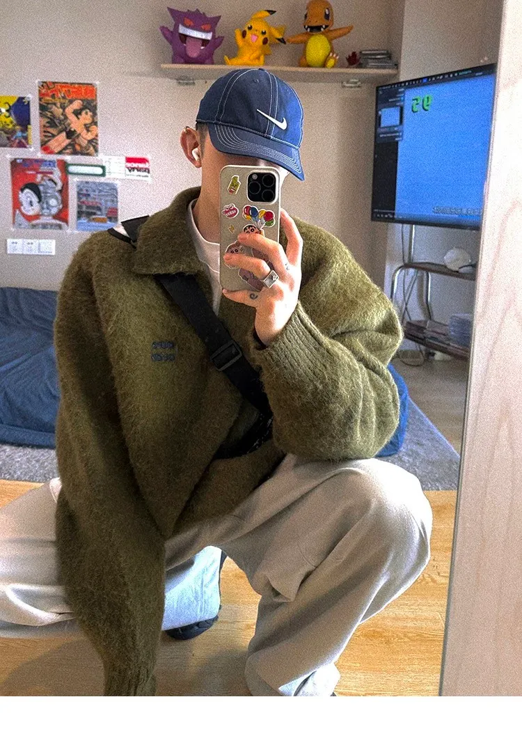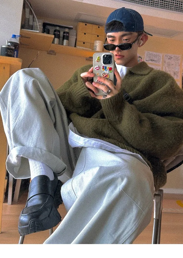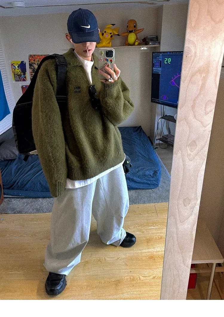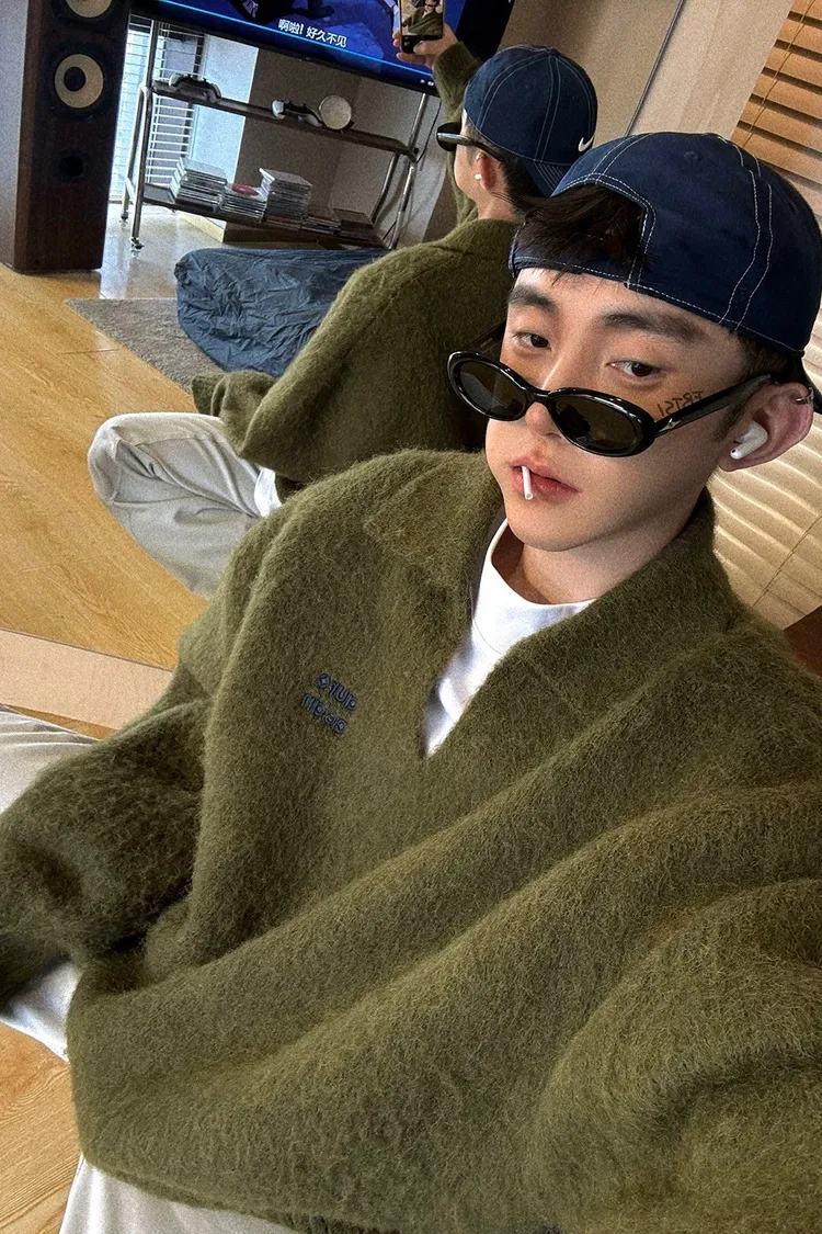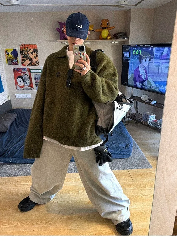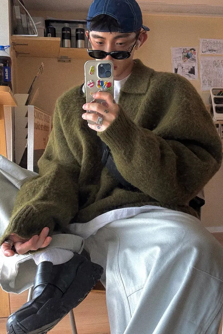 AUROCEAN 馬海毛 保暖翻領 毛衣(暖綠)
