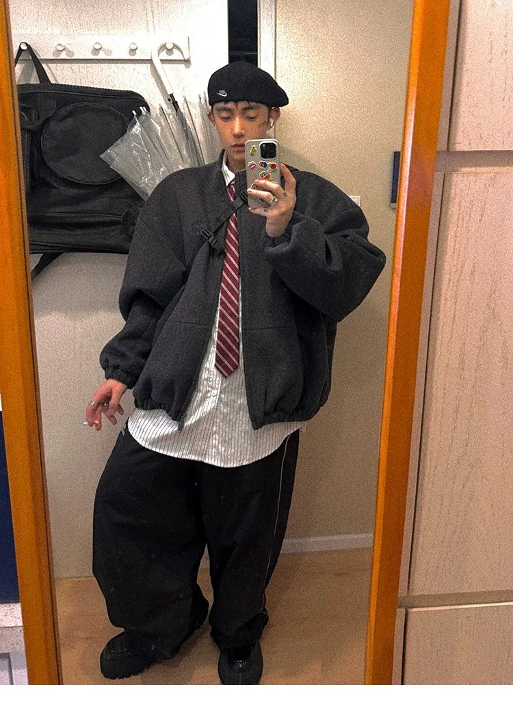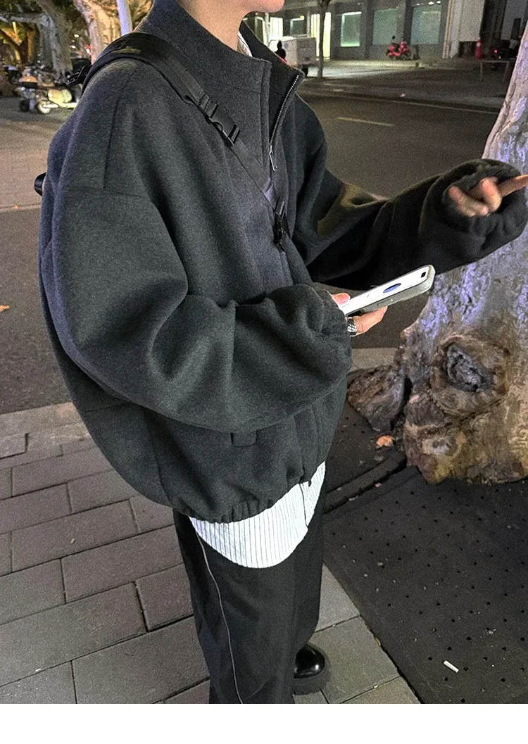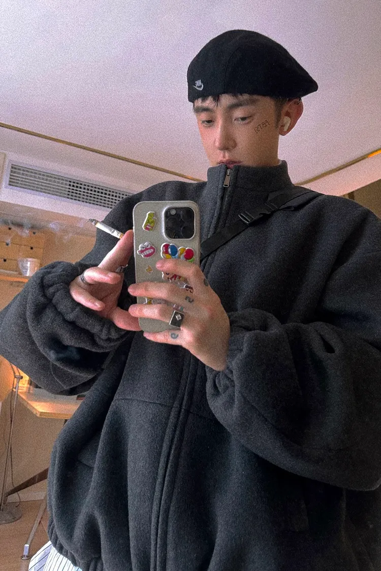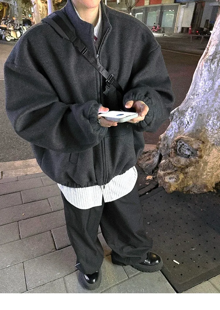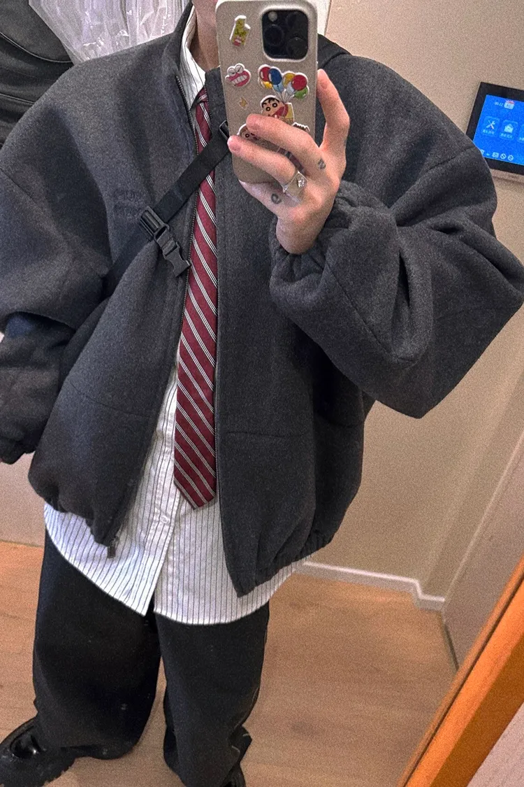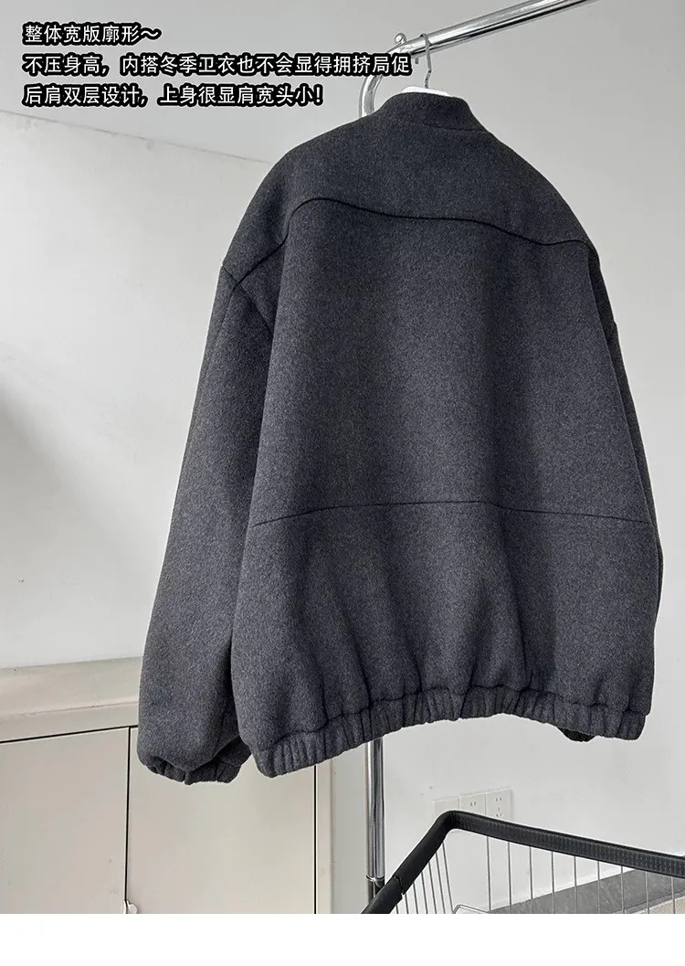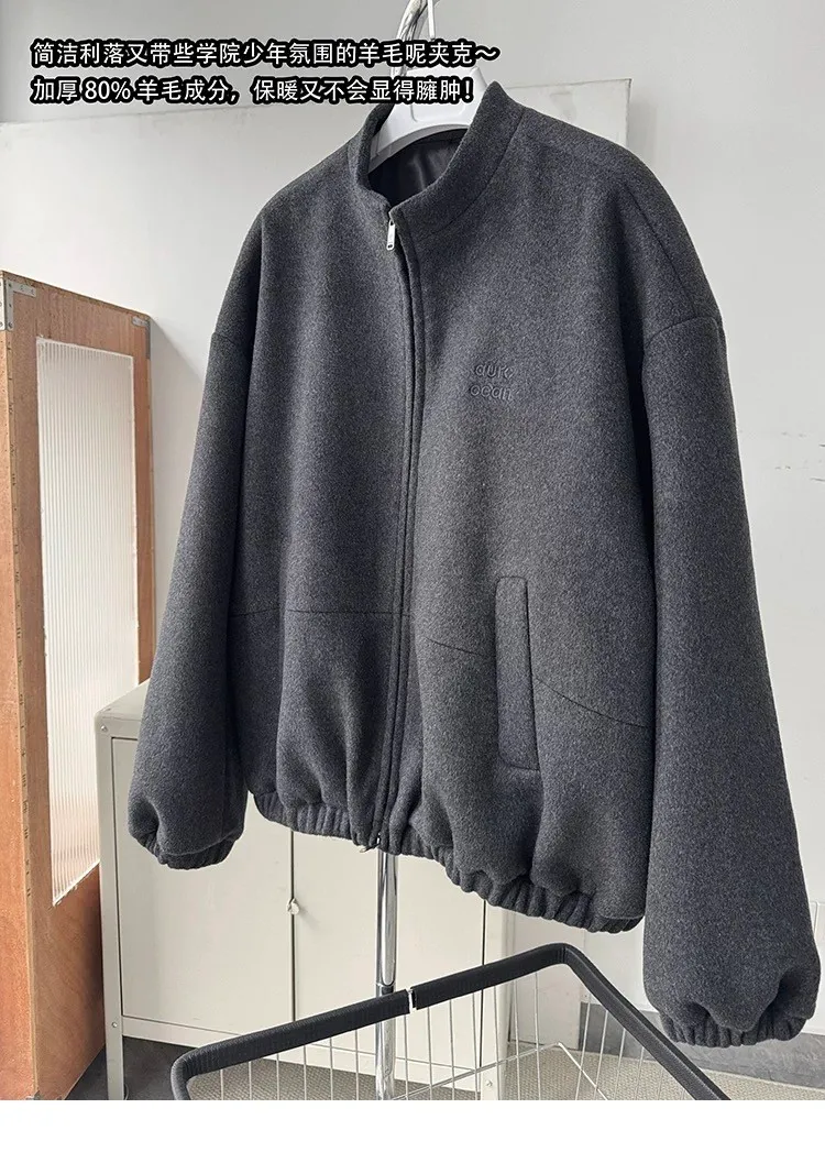 [LAX STUDIO] AUROCEAN 少年感 羊毛呢 寬版廓形 外套(深灰)