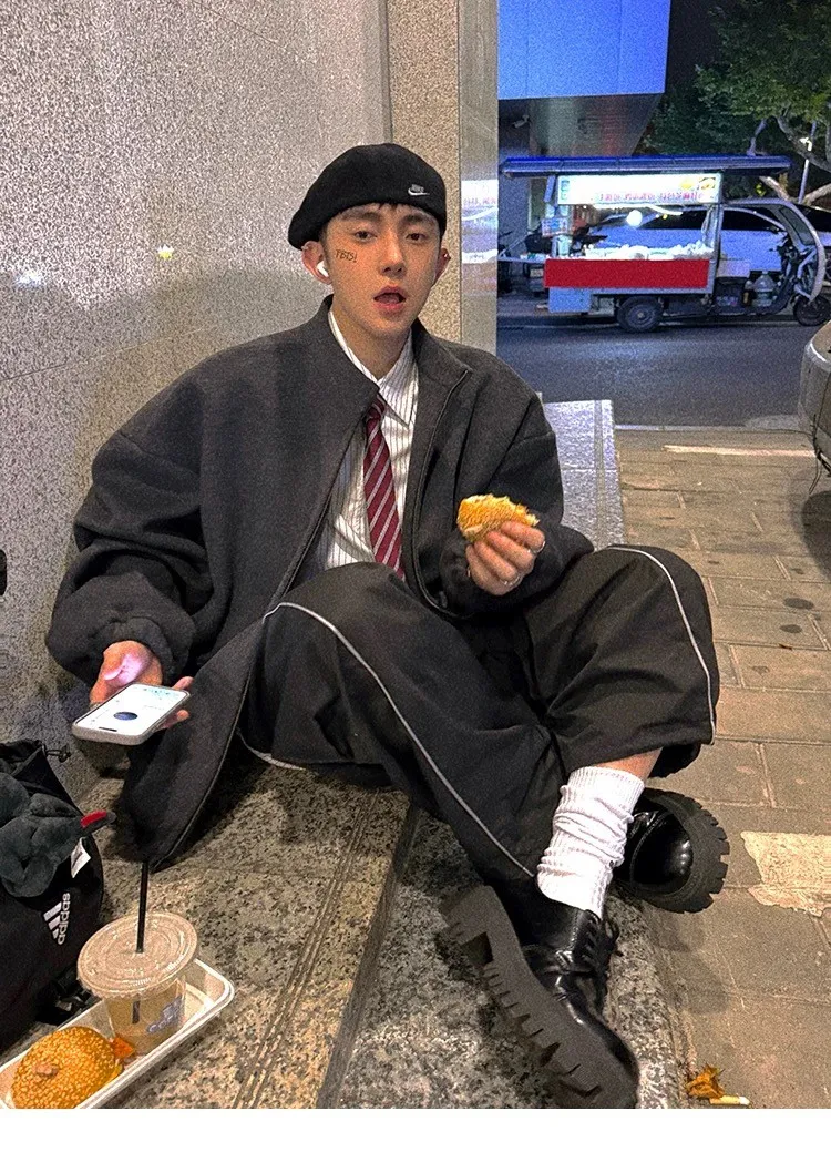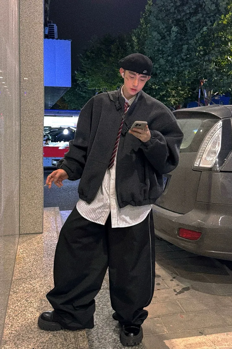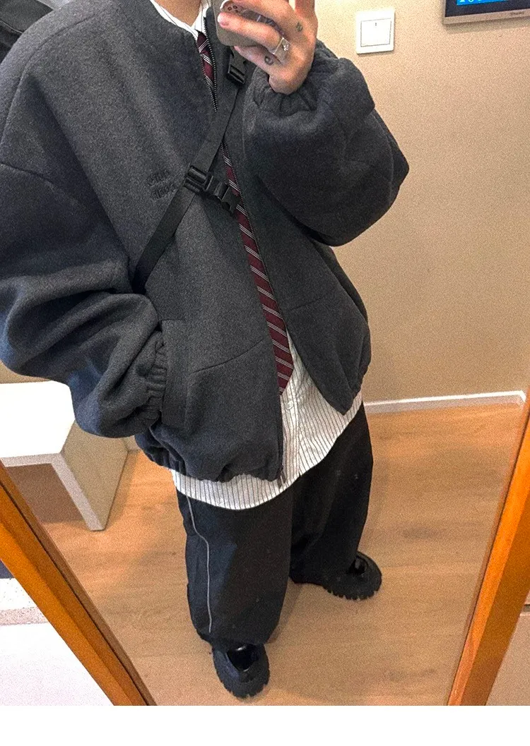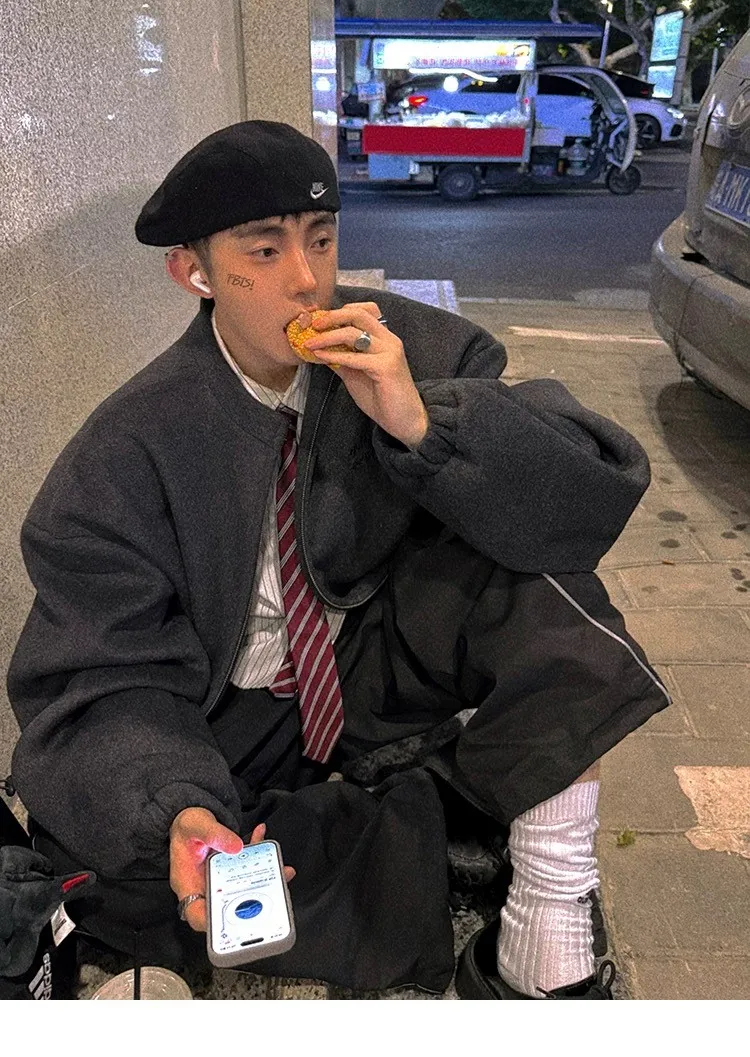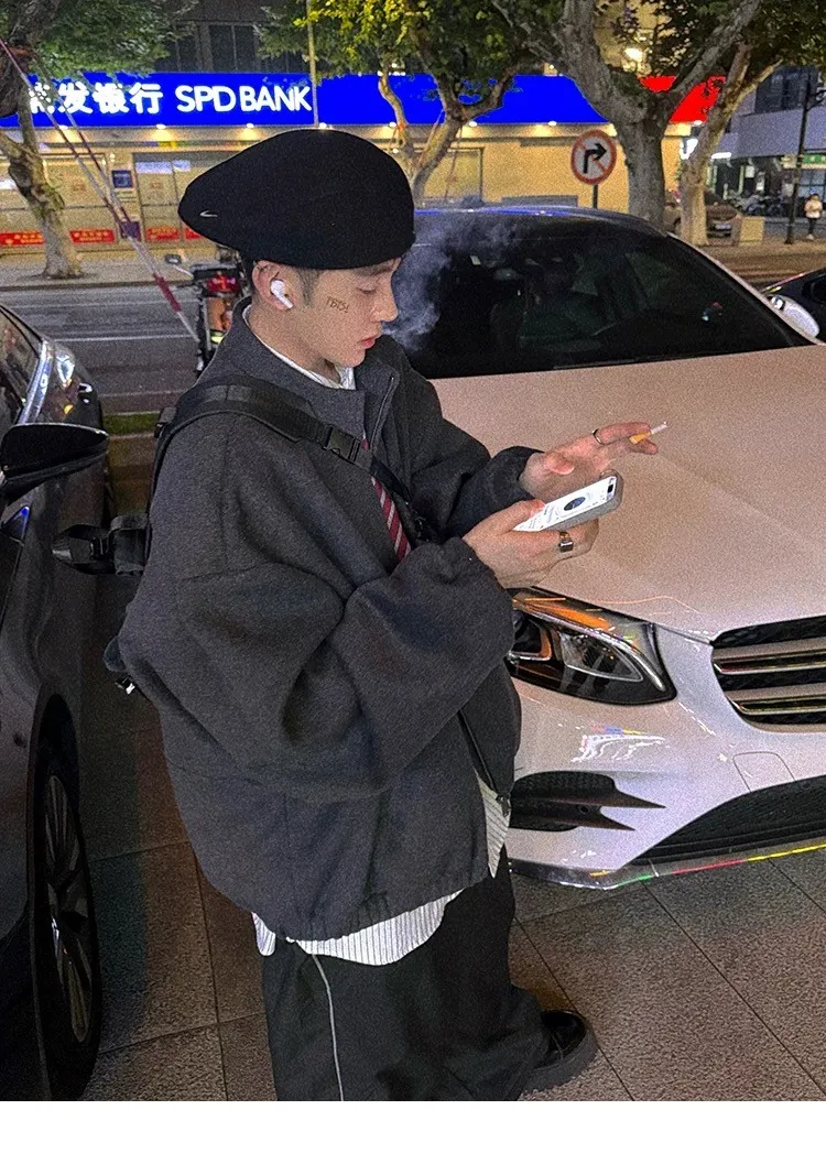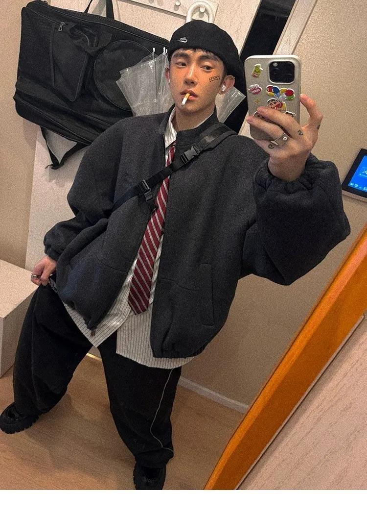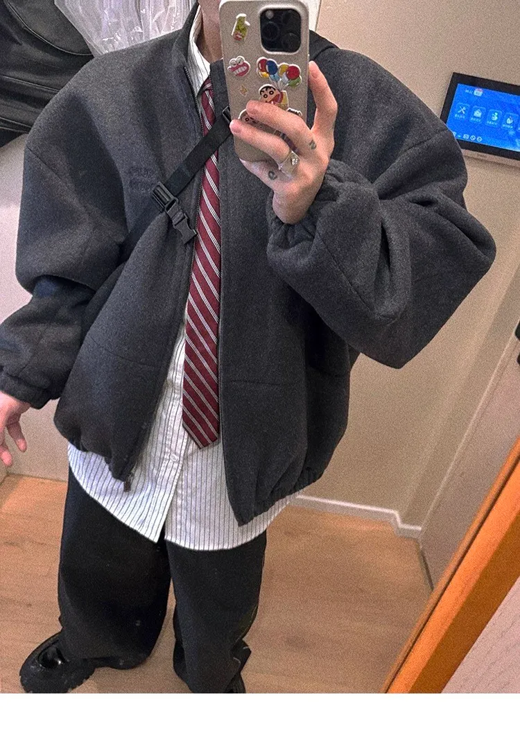[LAX STUDIO] AUROCEAN 少年感 羊毛呢 寬版廓形 外套(深灰)