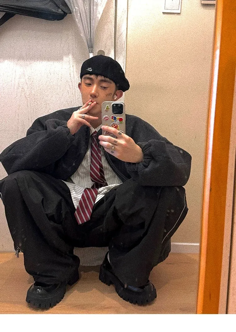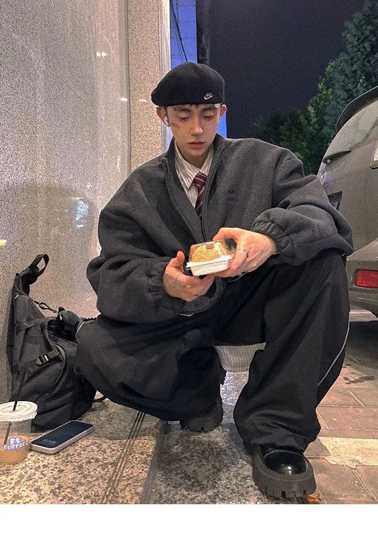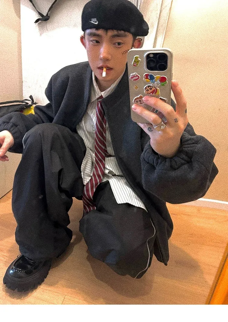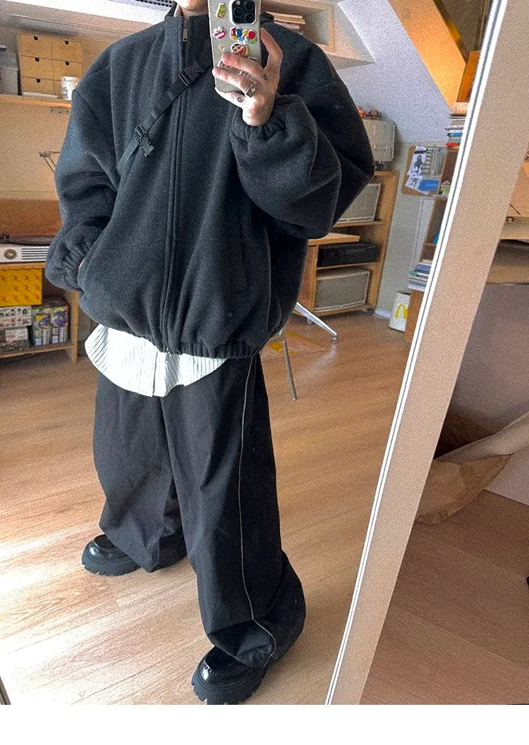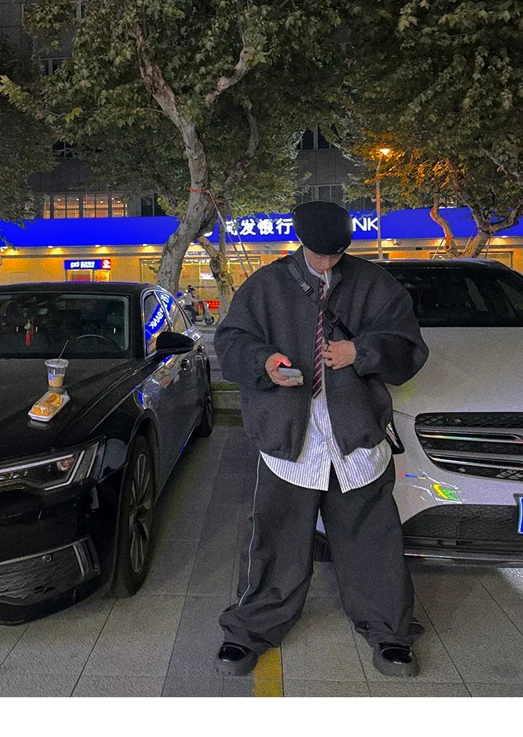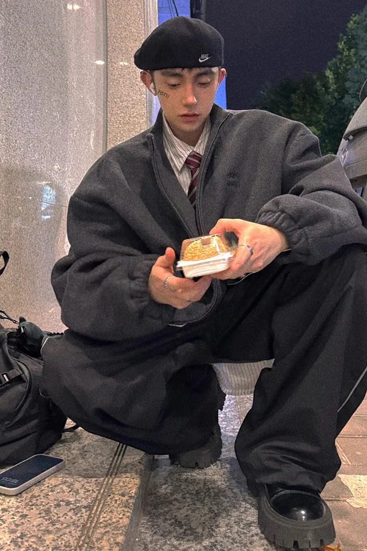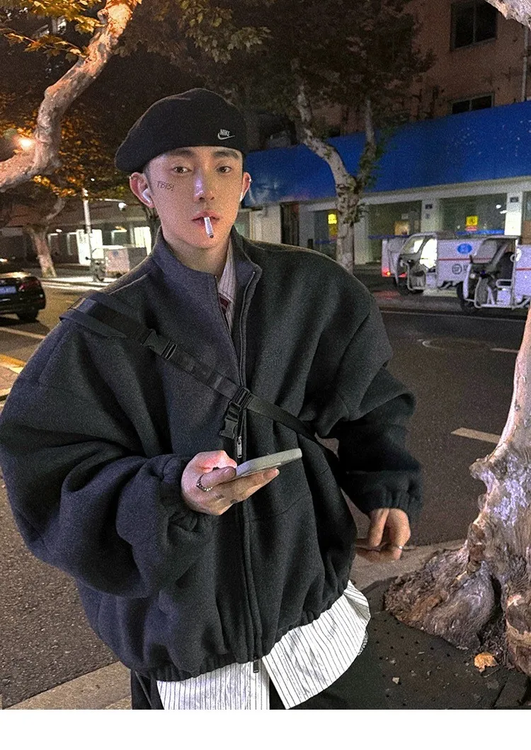 [LAX STUDIO] AUROCEAN 少年感 羊毛呢 寬版廓形 外套(深灰)