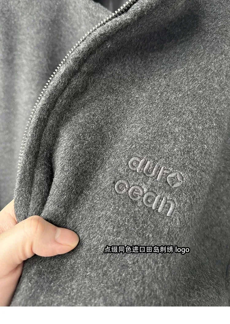 AUROCEAN 搖粒絨 刺繡LOGO 半拉鍊 外套(深灰)