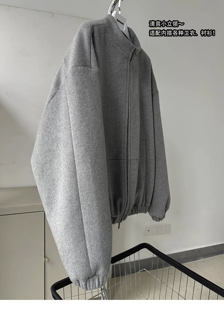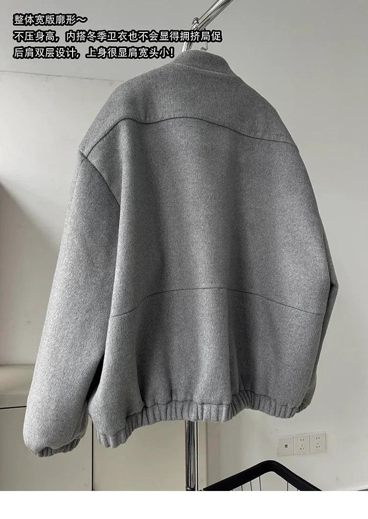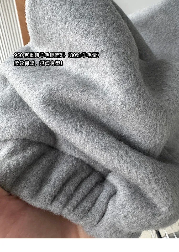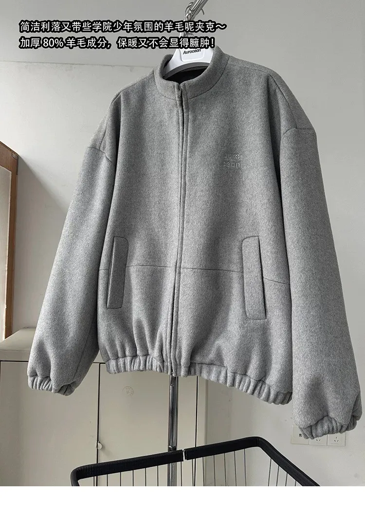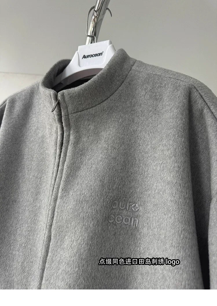 AUROCEAN 少年感 羊毛呢 寬版廓形 外套(淺灰)