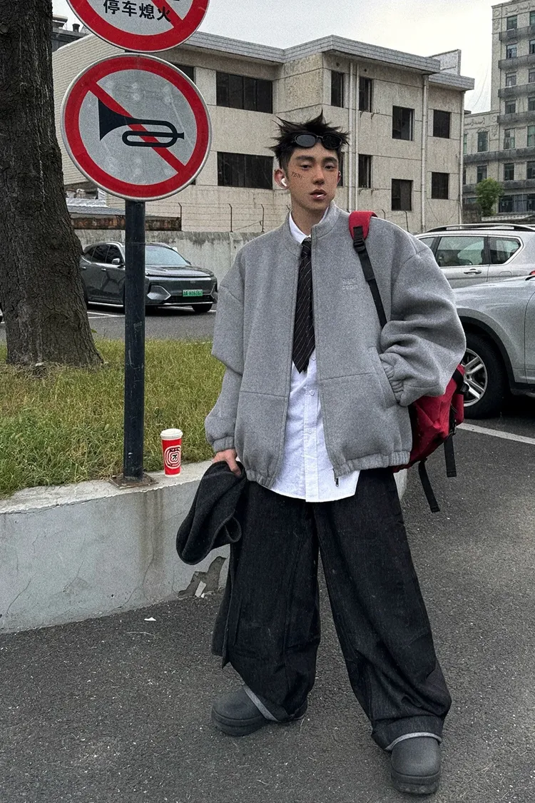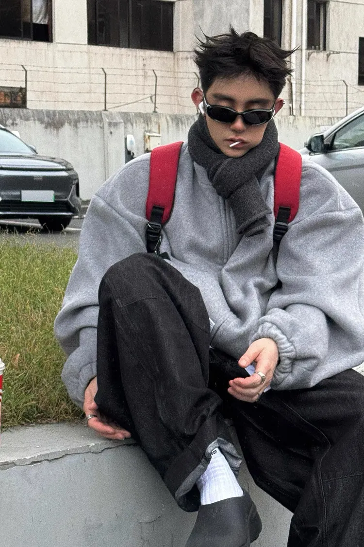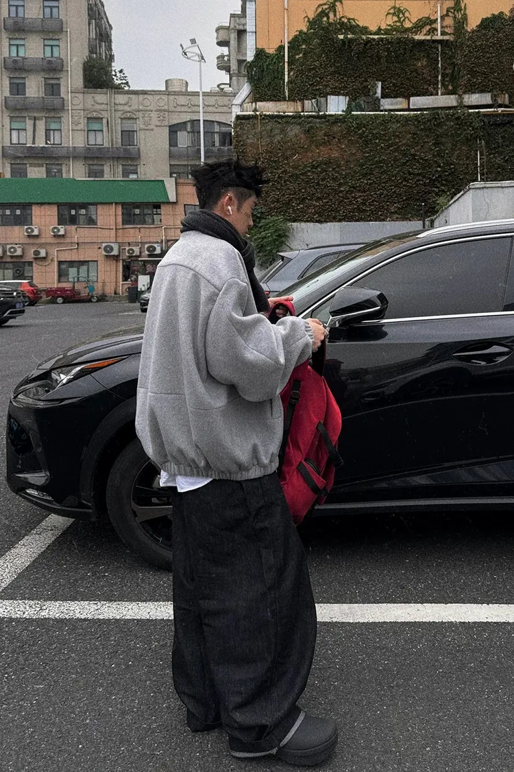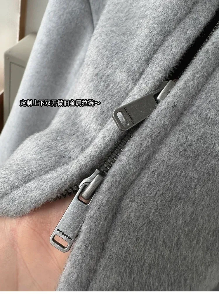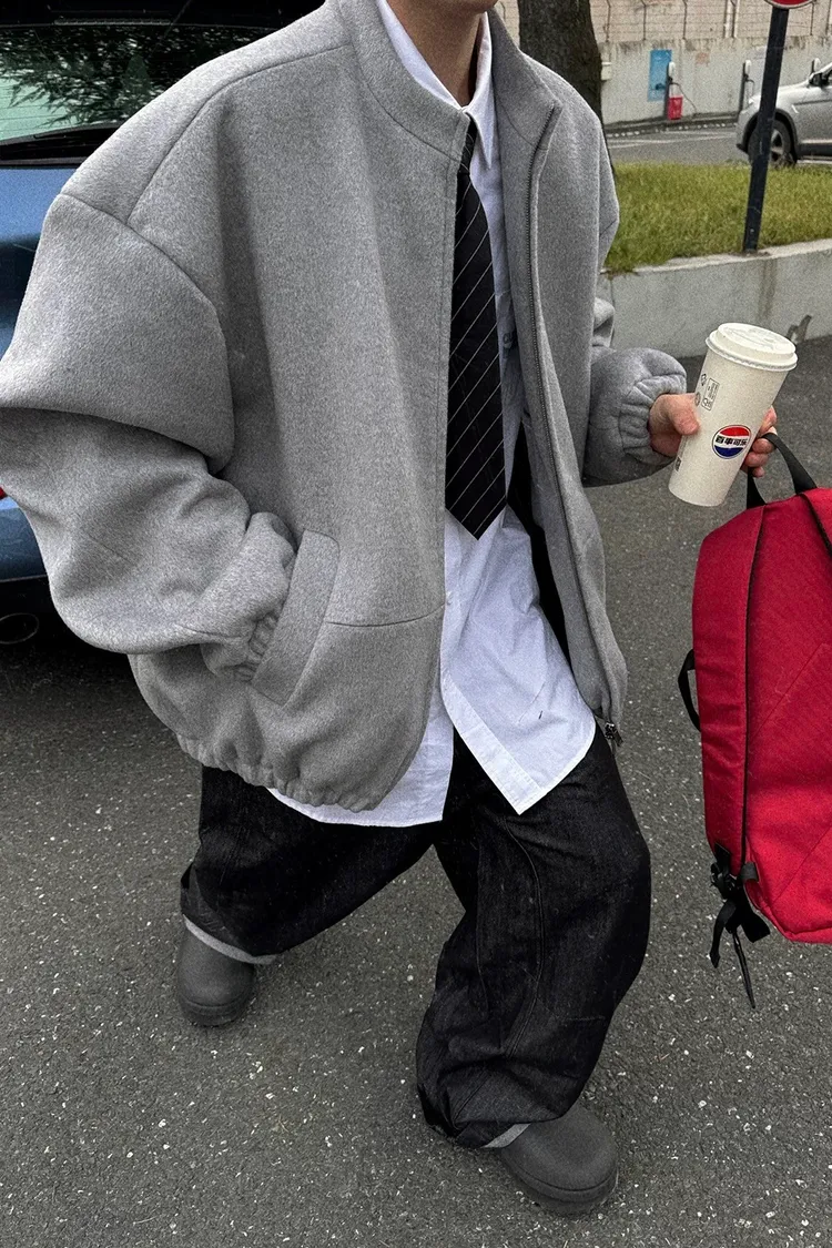 AUROCEAN 少年感 羊毛呢 寬版廓形 外套(淺灰)