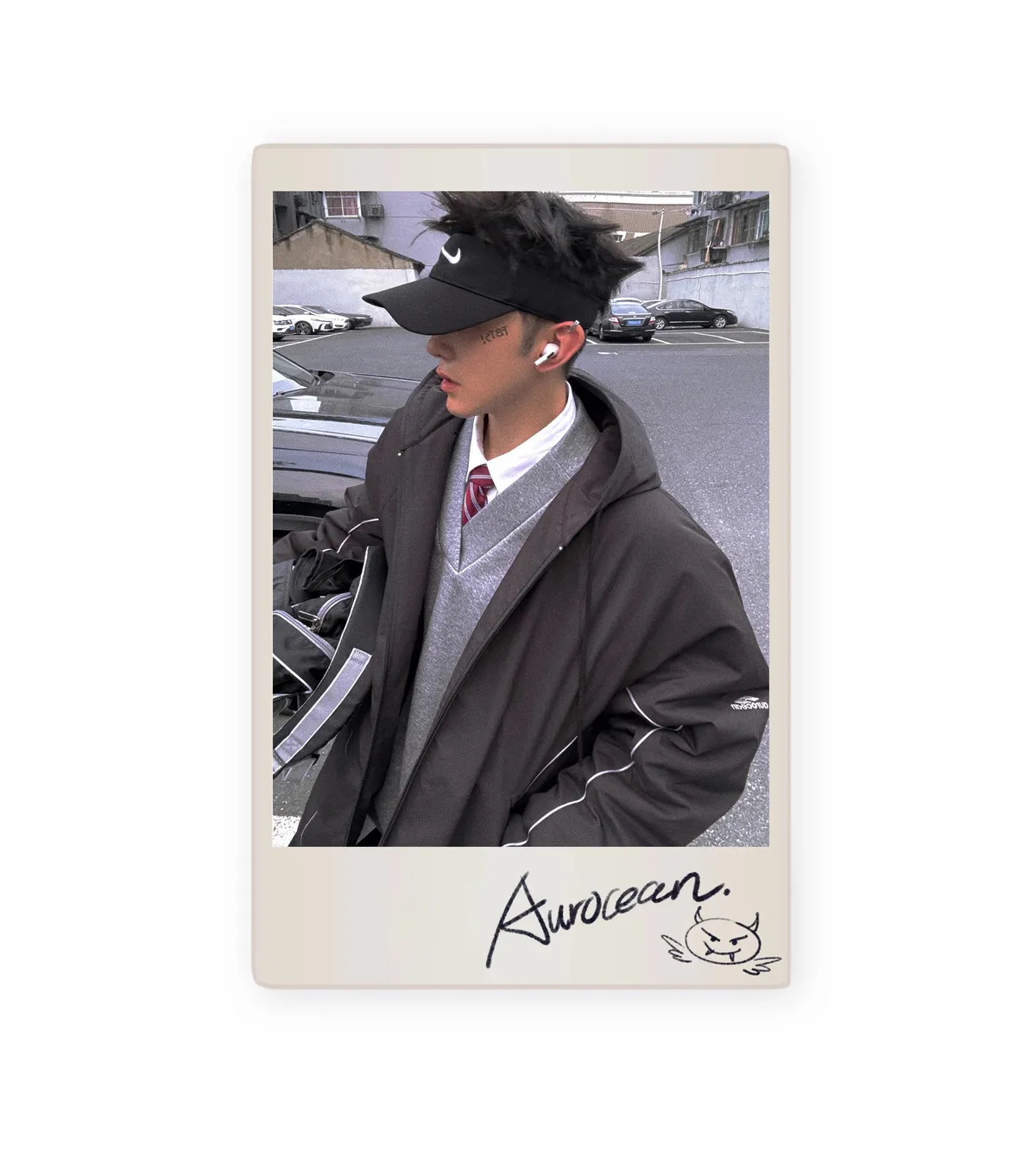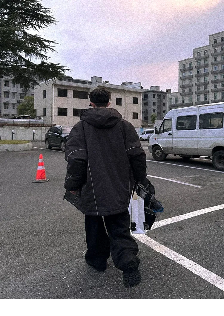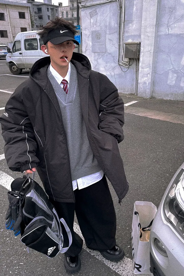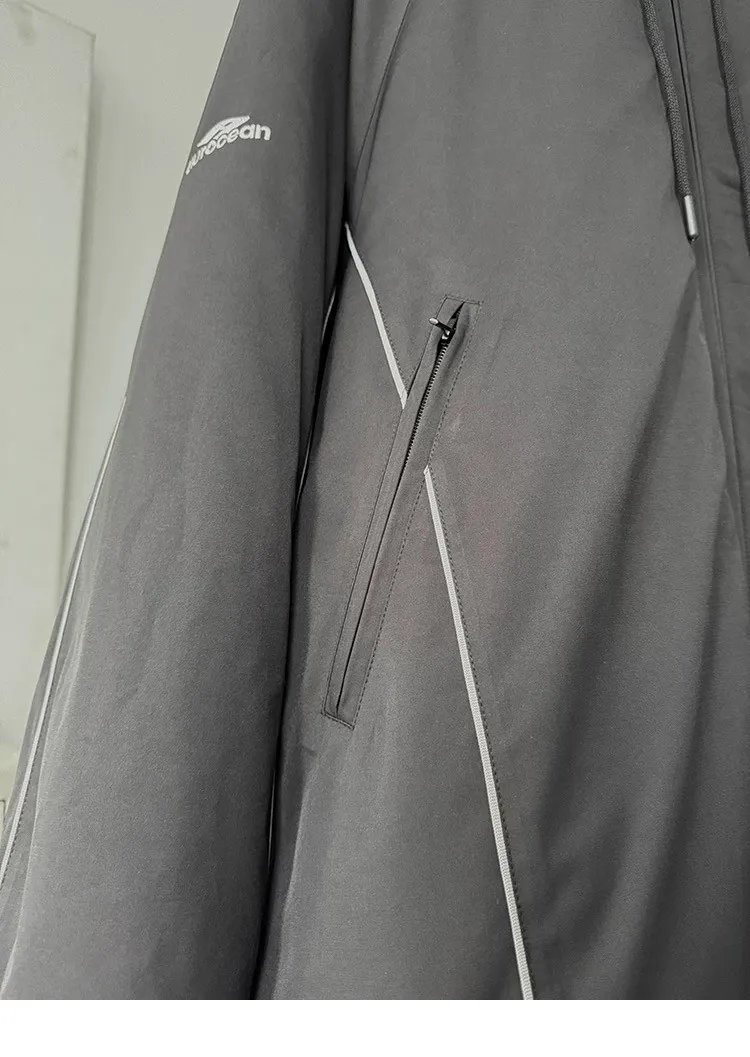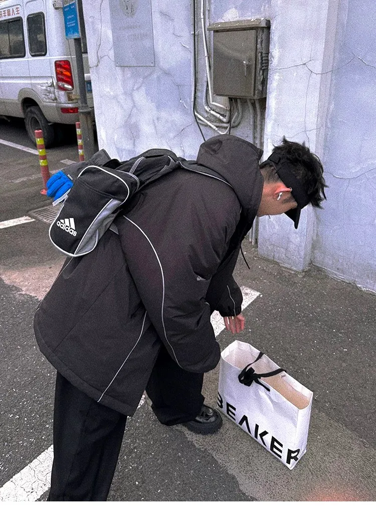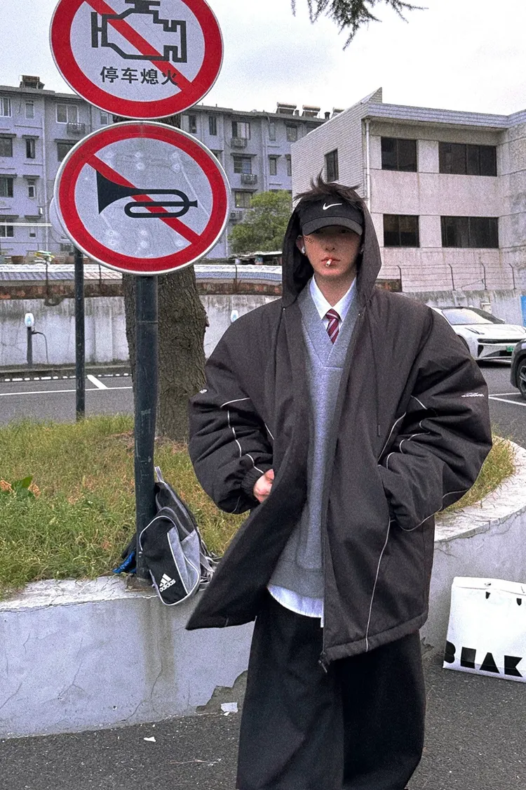 AUROCEAN 運動少年 中長款 廓形加厚 連帽外套(黑色)
