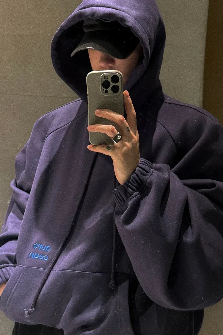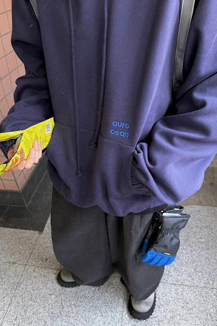 AUROCEAN 寬短版型 復古刺繡 帽踢(灰紫)