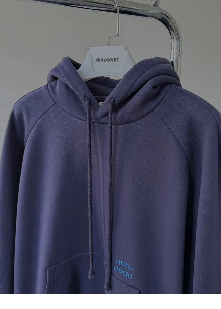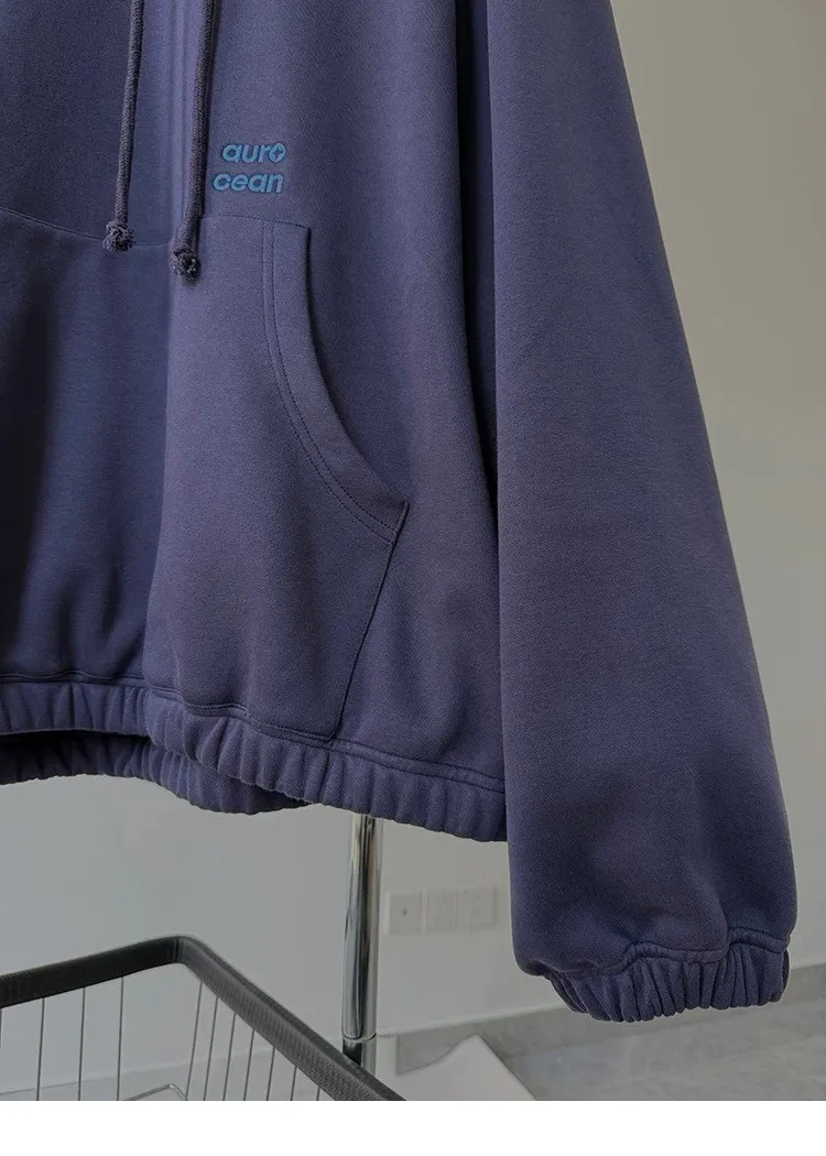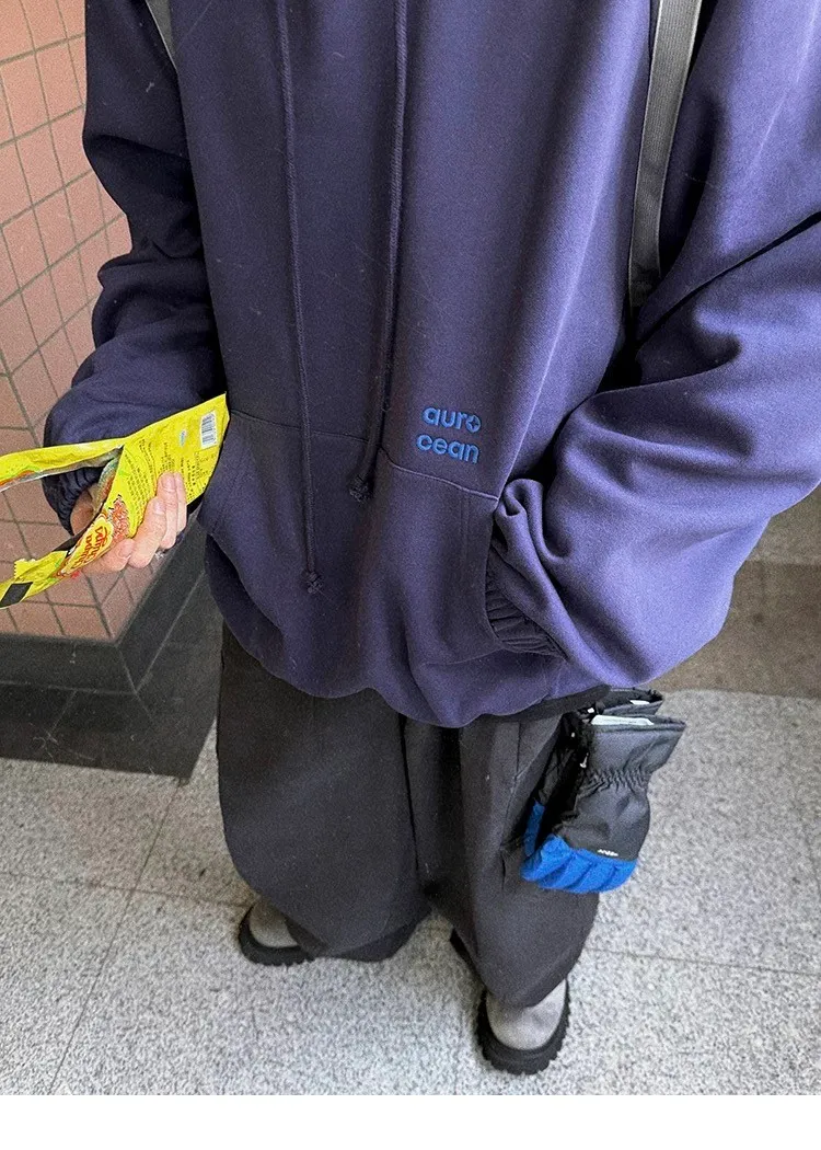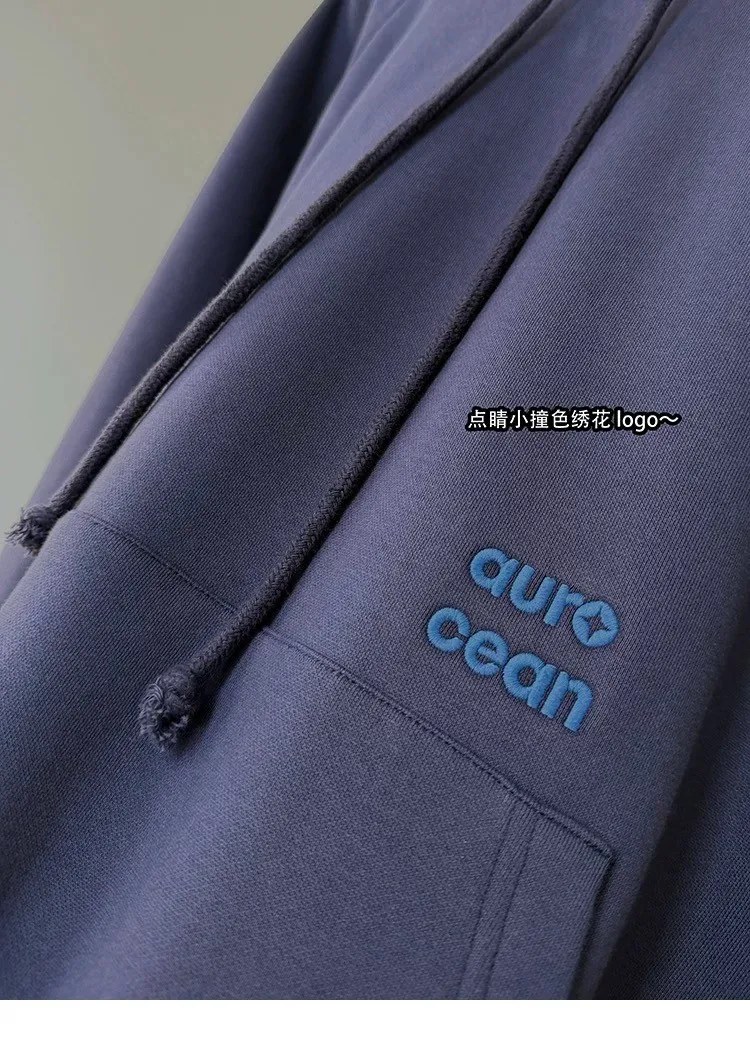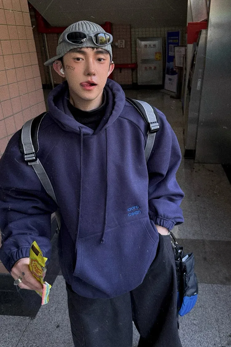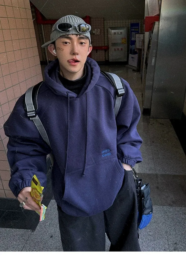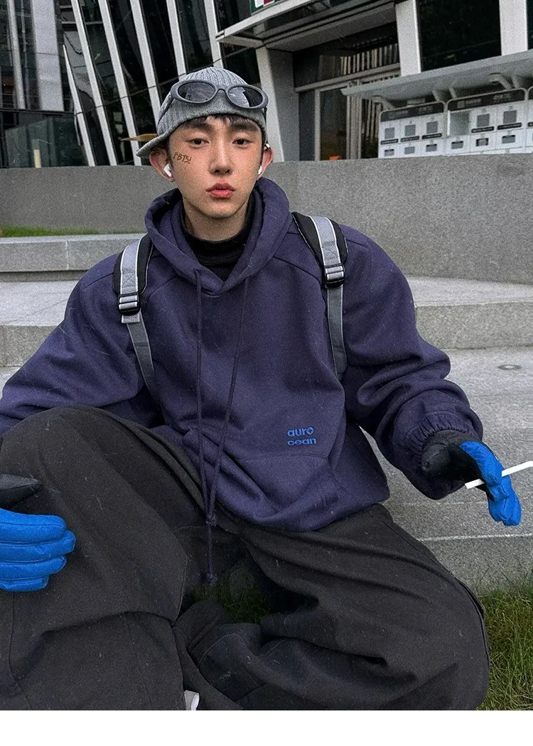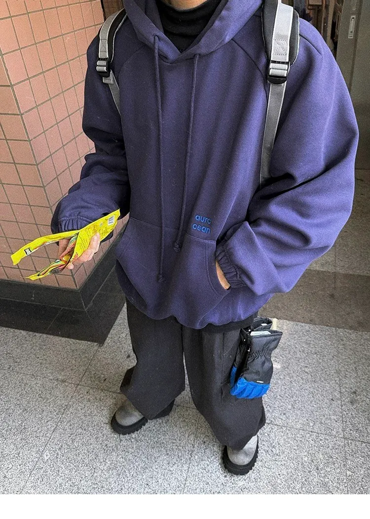 AUROCEAN 運動少年 中長款 廓形加厚 連帽外套(黑色)