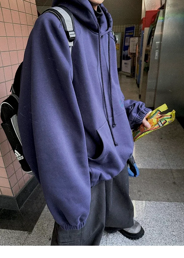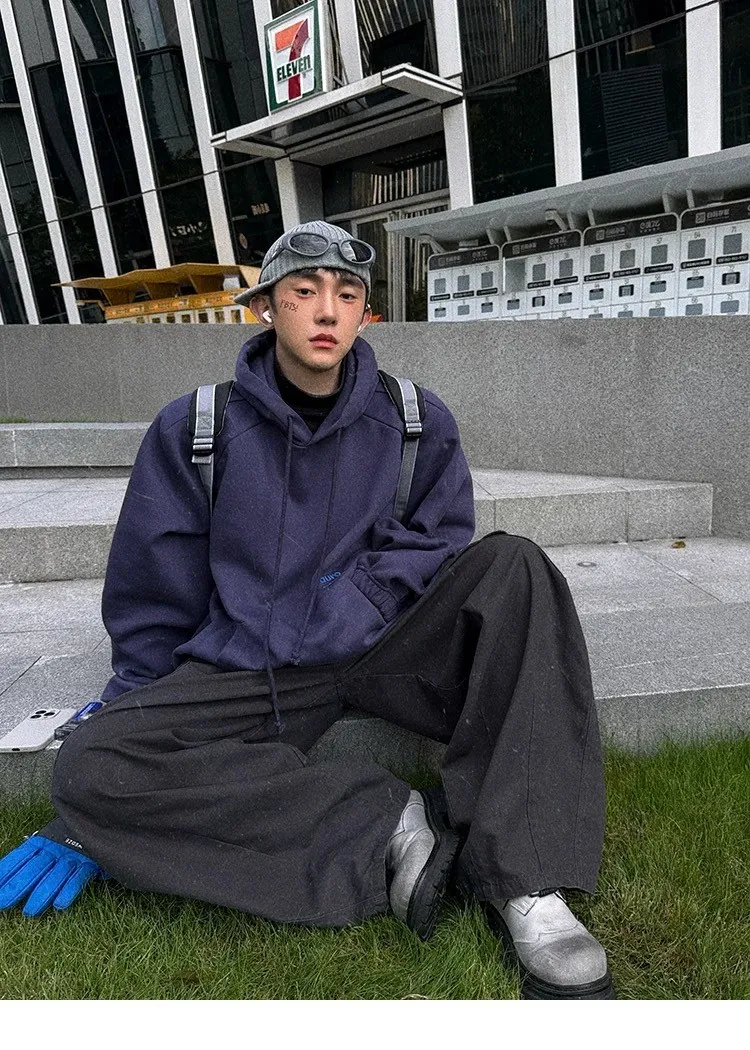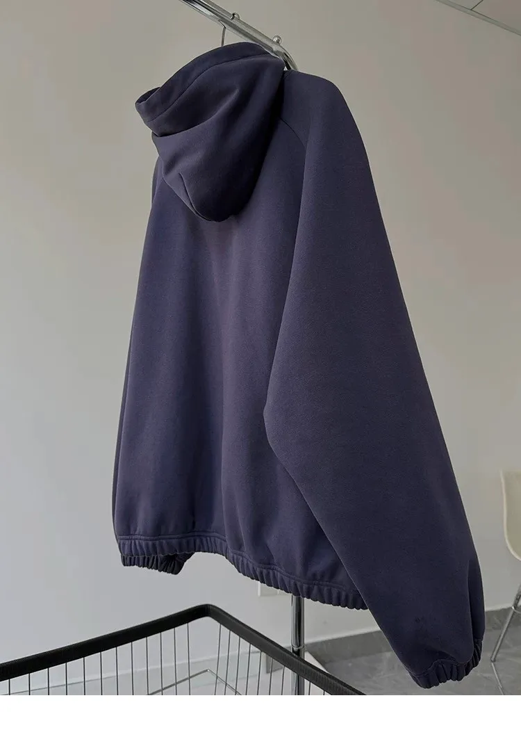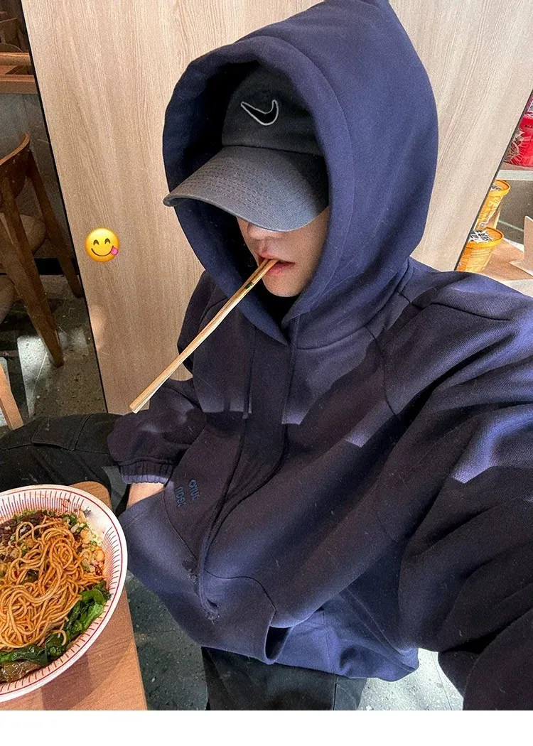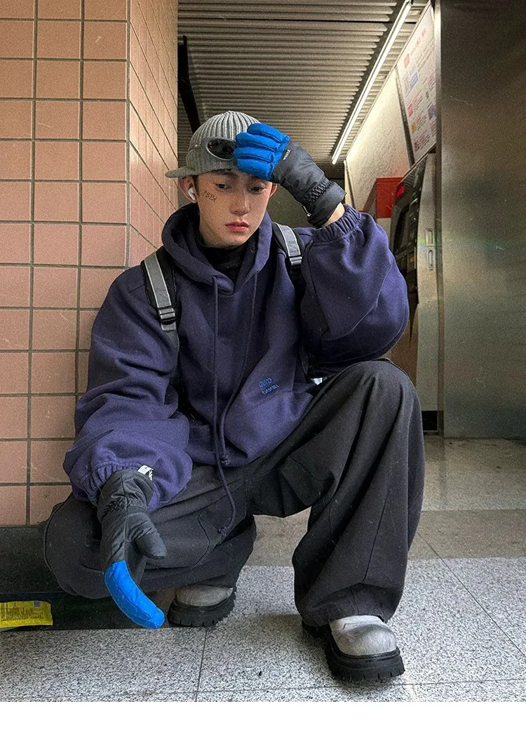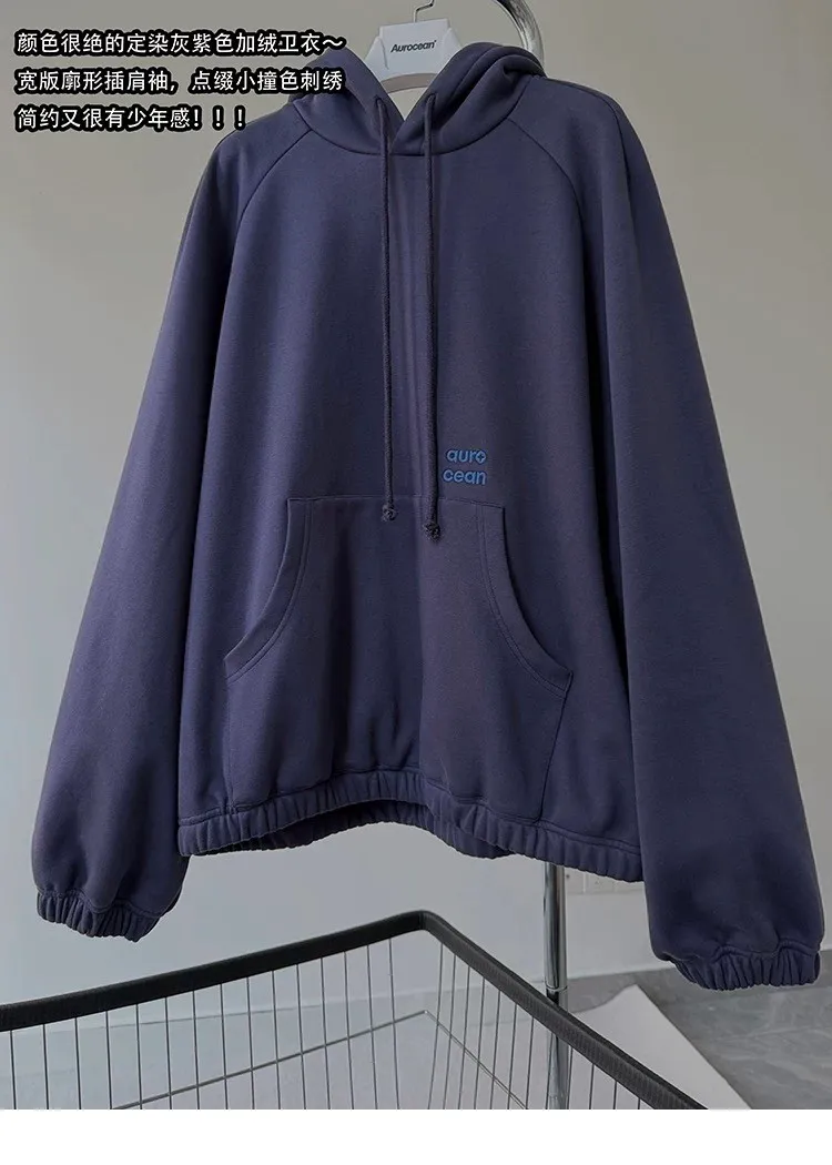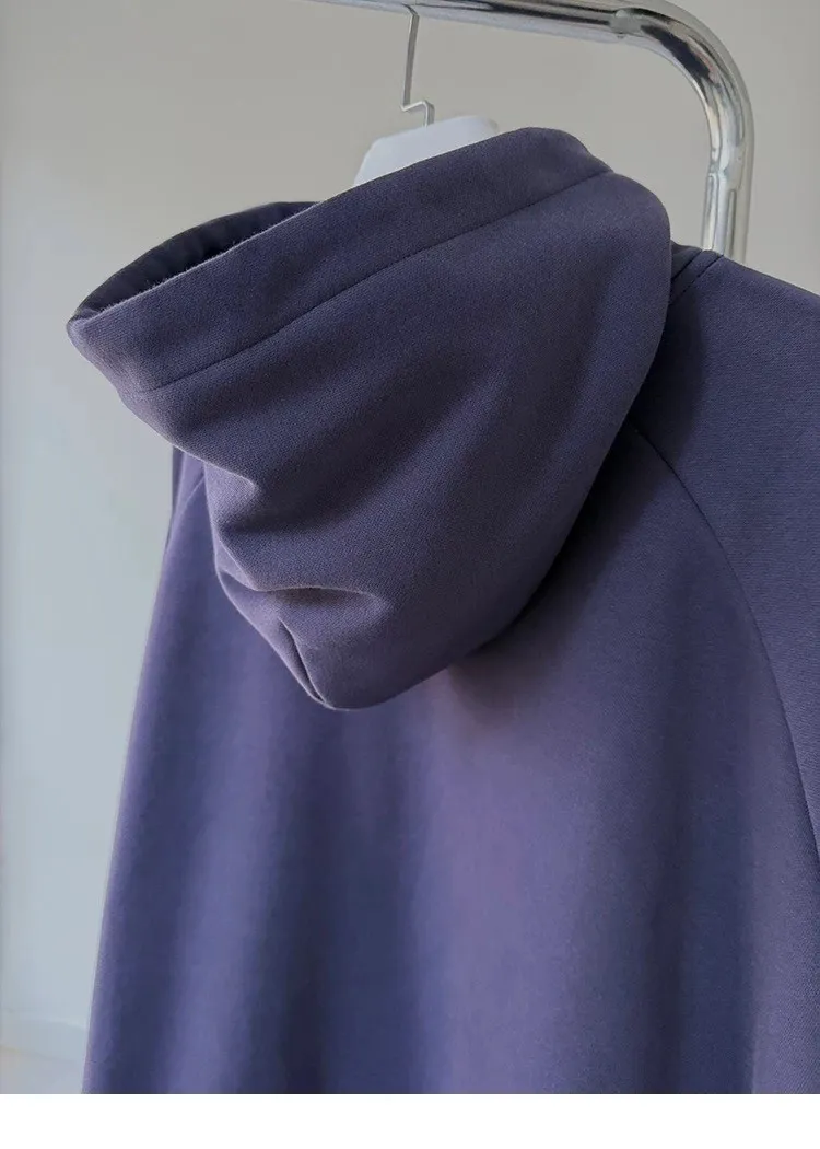 AUROCEAN 運動少年 中長款 廓形加厚 連帽外套(黑色)