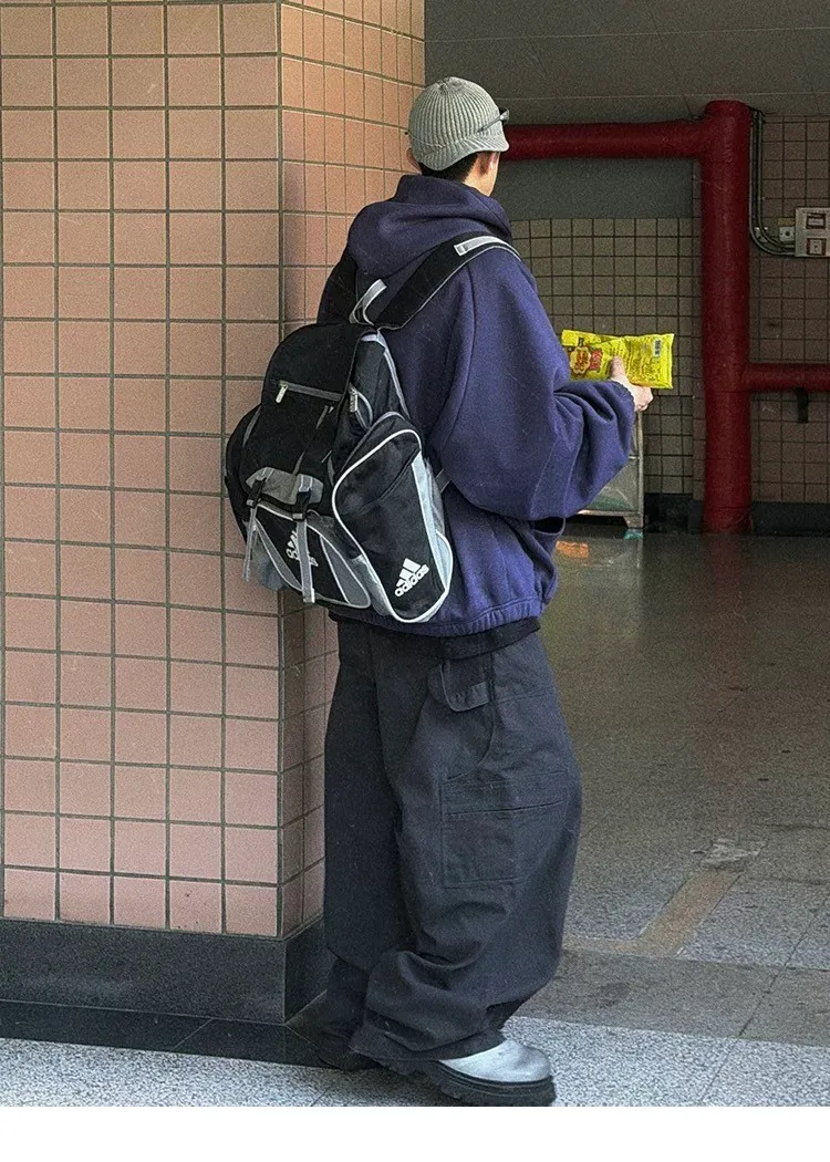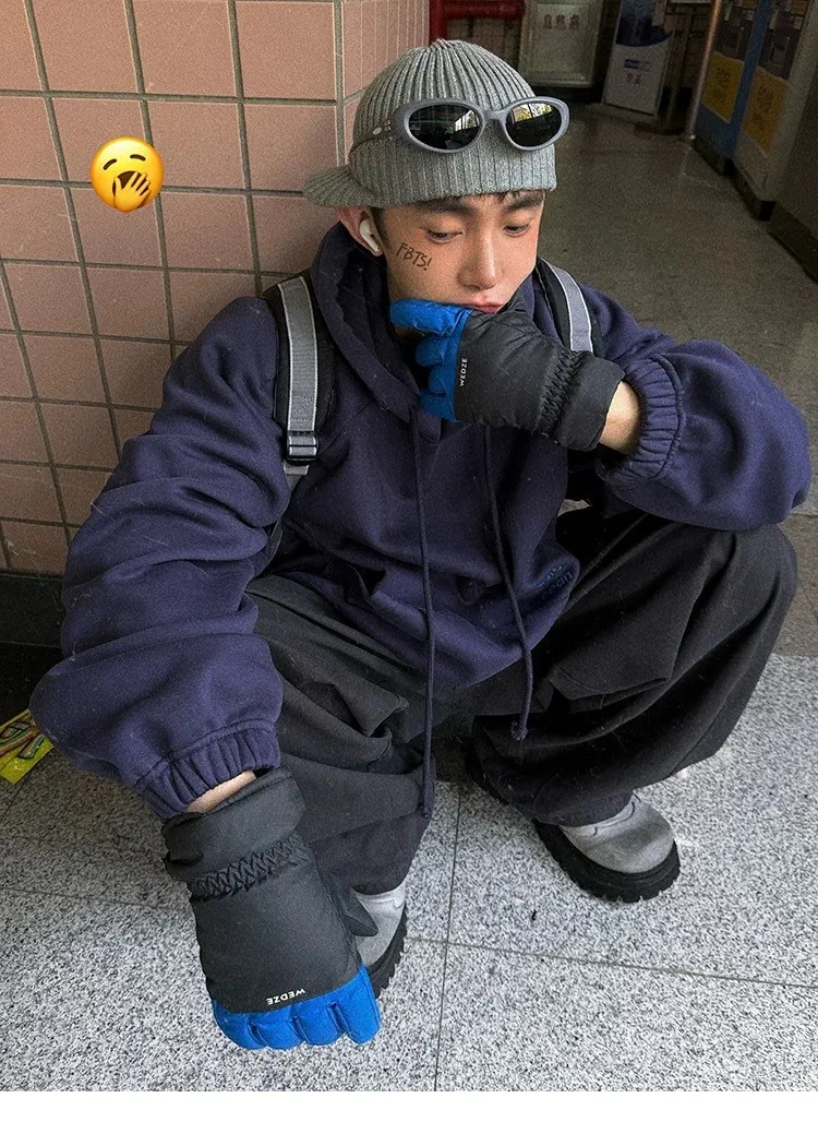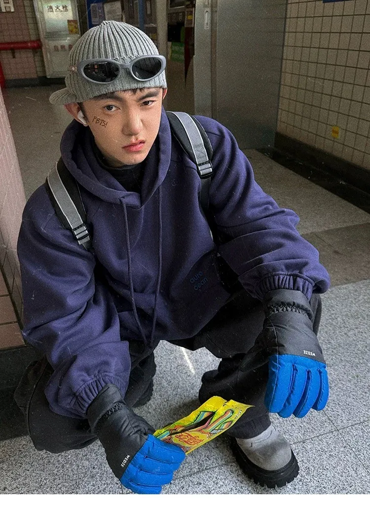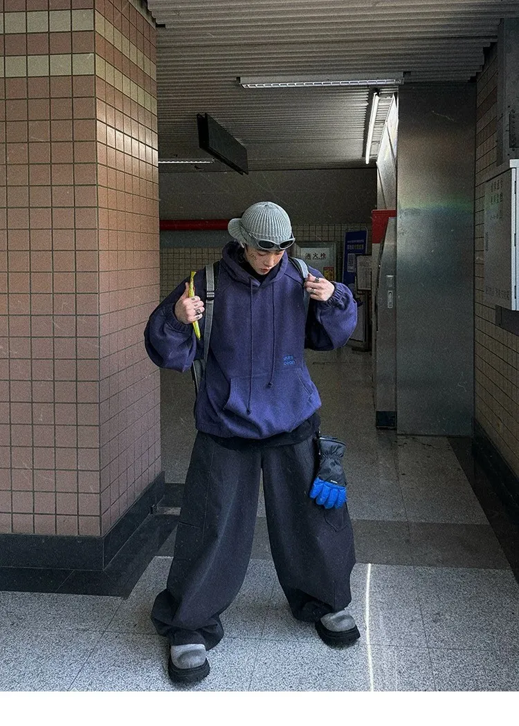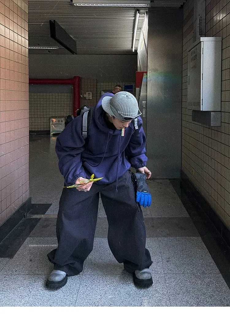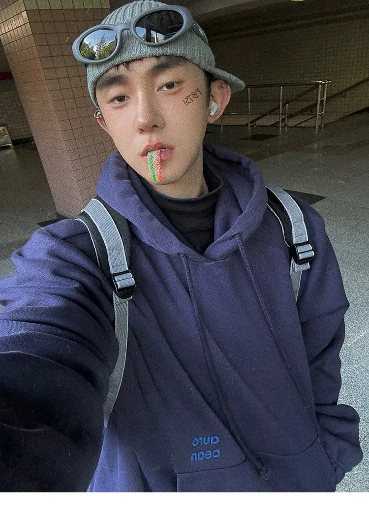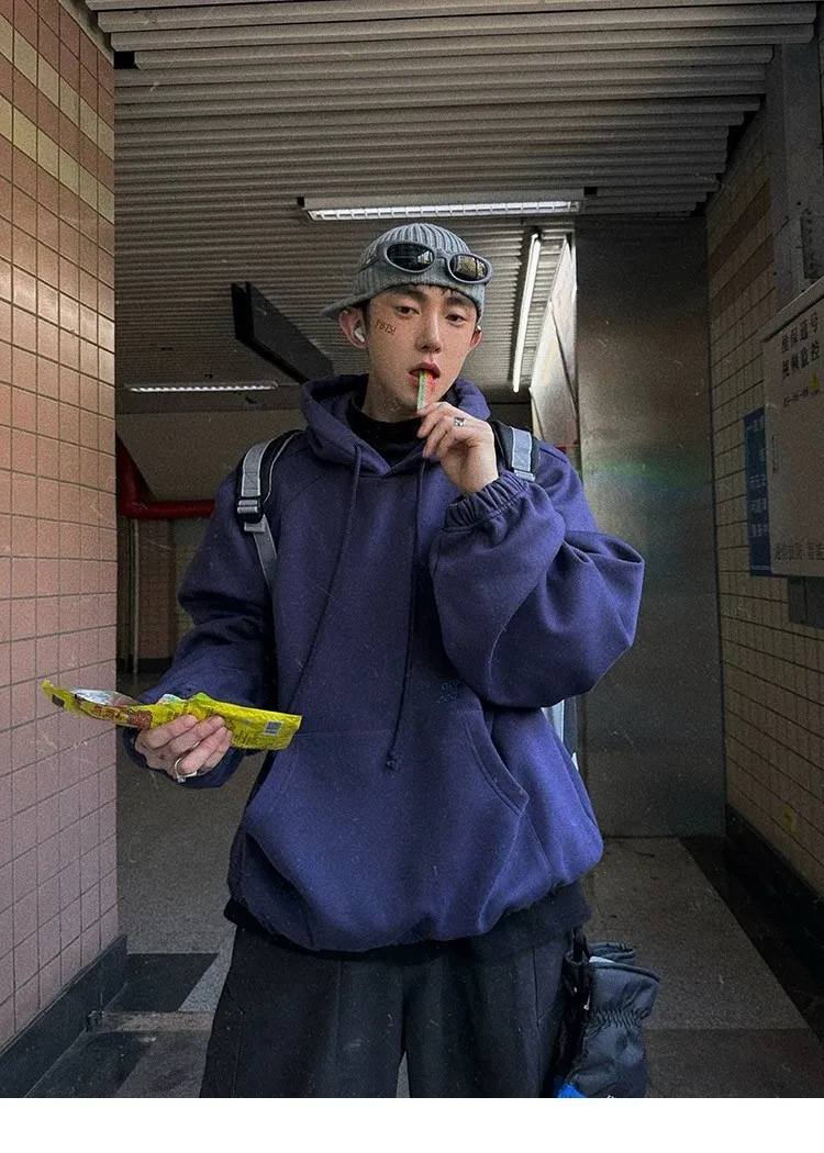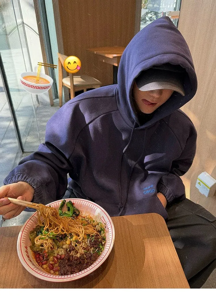 AUROCEAN 運動少年 中長款 廓形加厚 連帽外套(黑色)