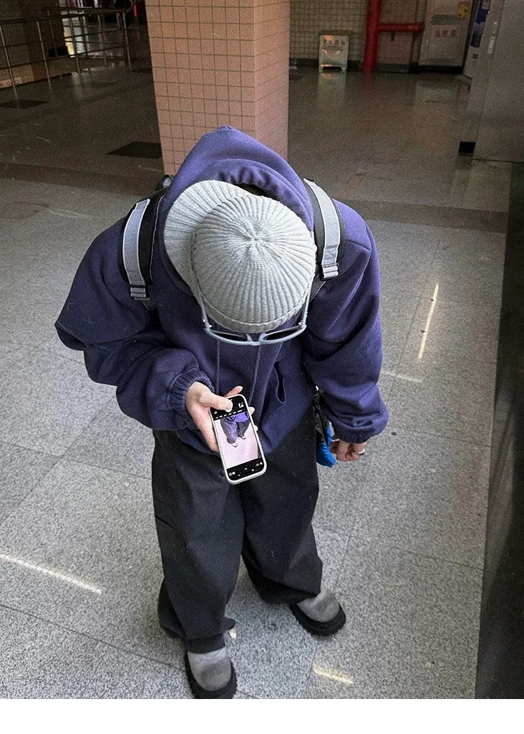 AUROCEAN 定染 500G加絨 寬短 帽踢(灰紫)