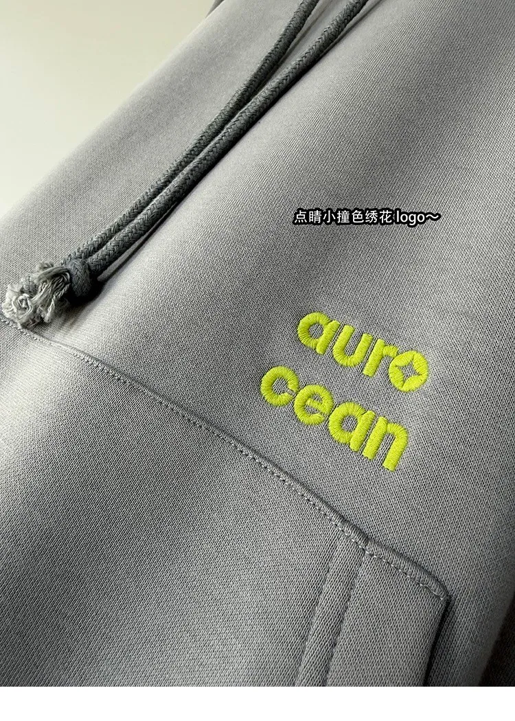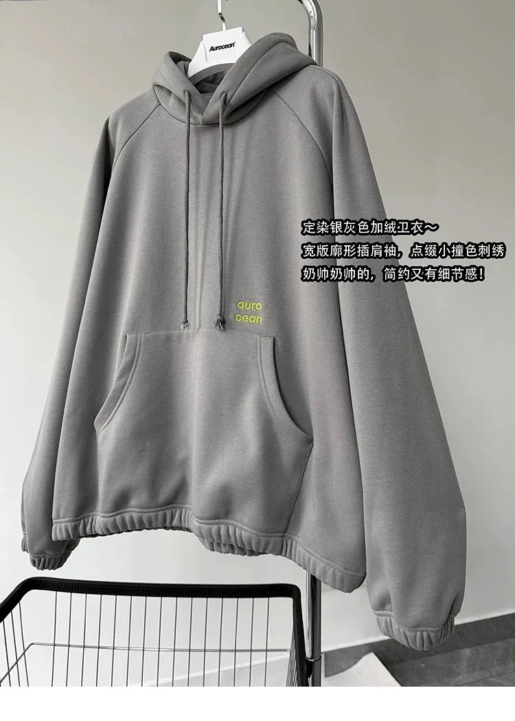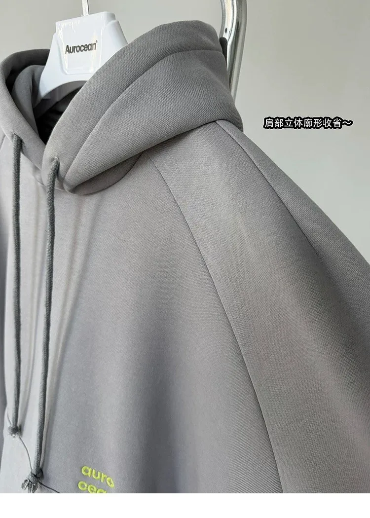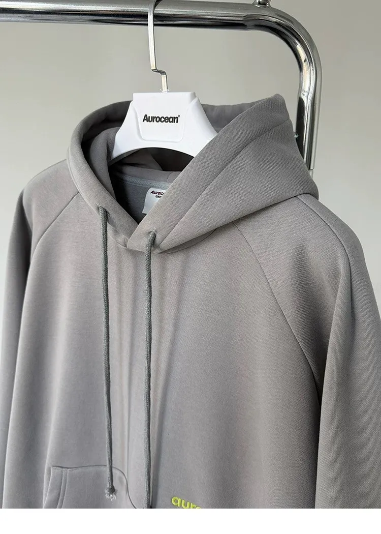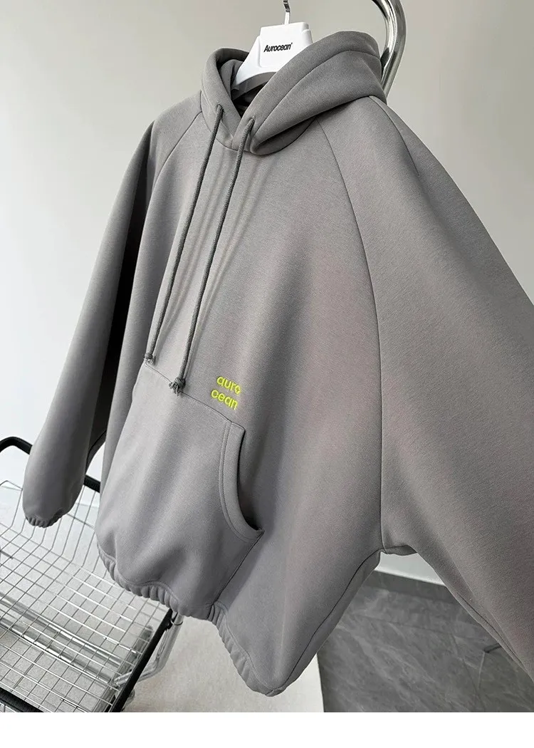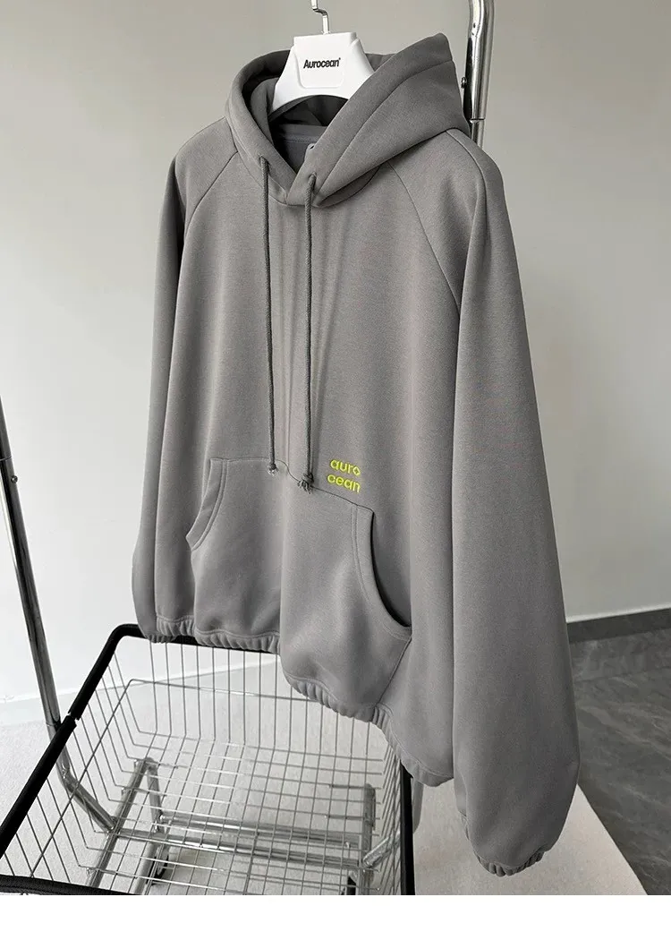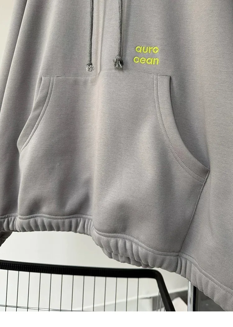 AUROCEAN 運動少年 中長款 廓形加厚 連帽外套(黑色)