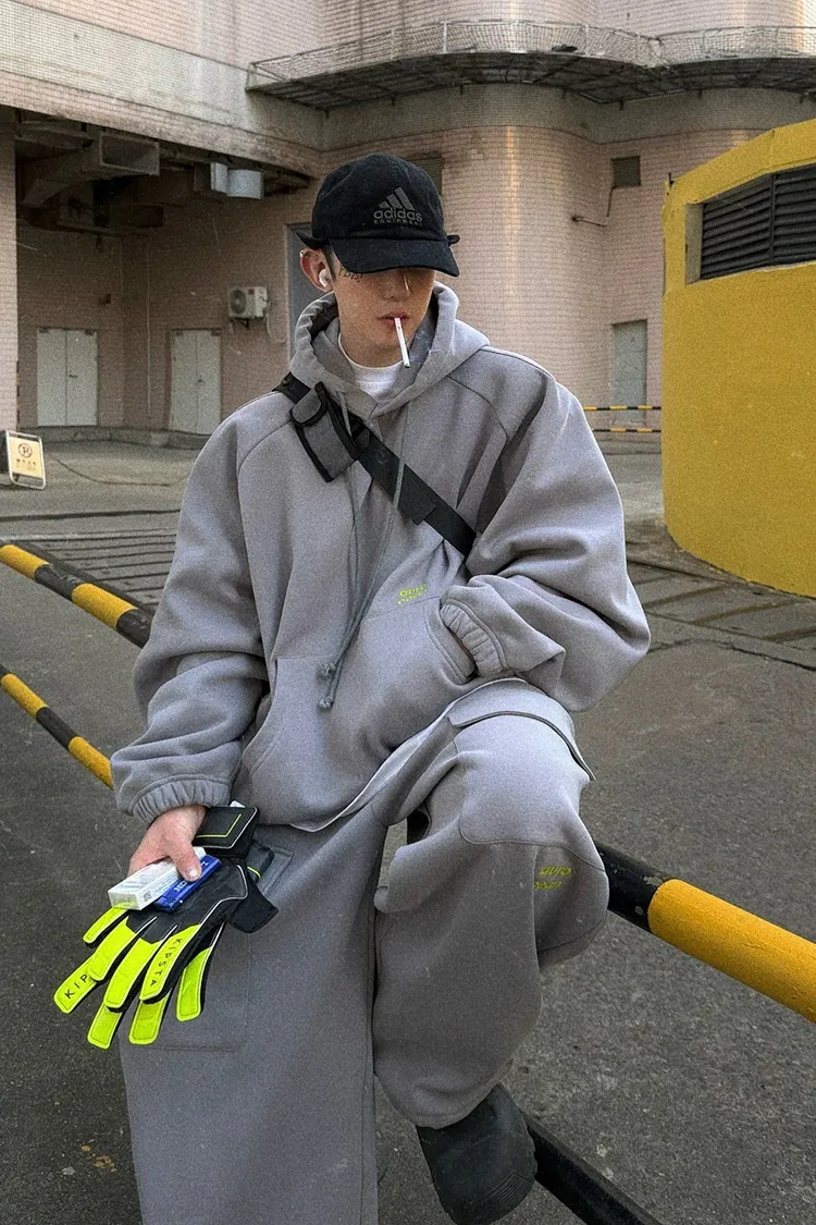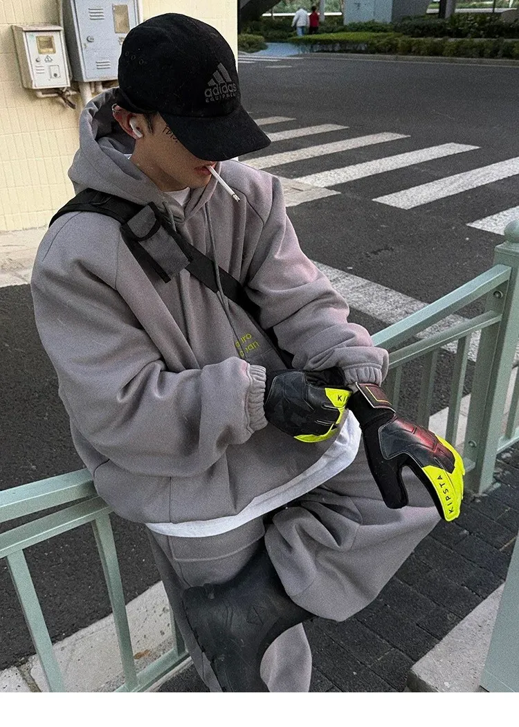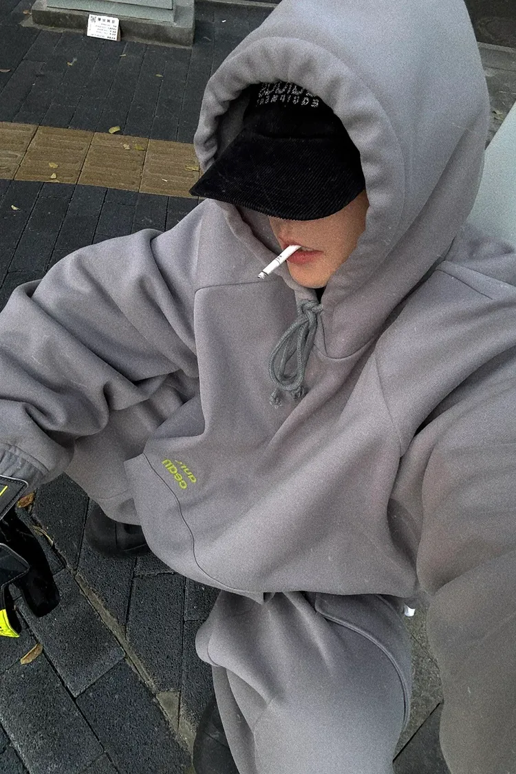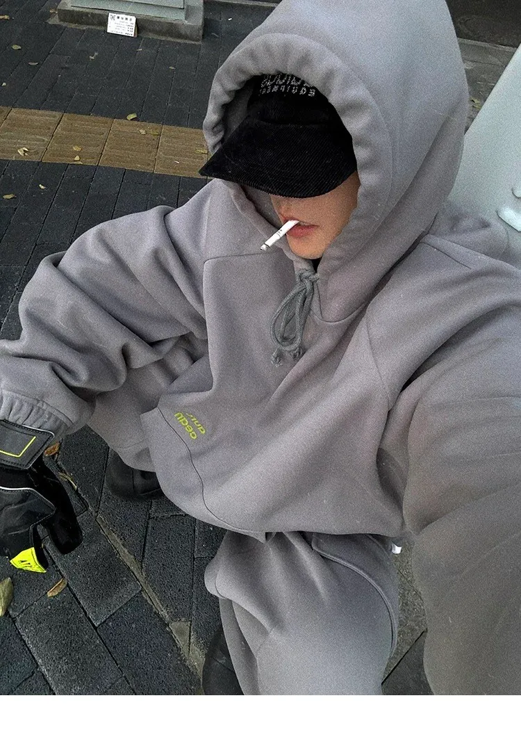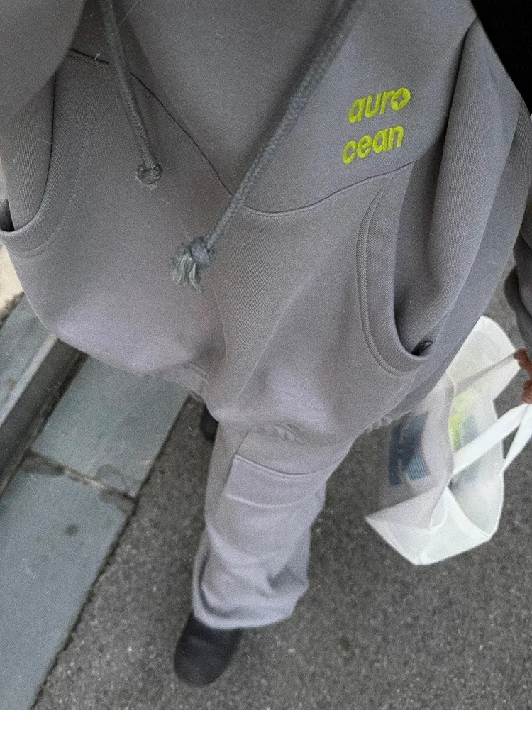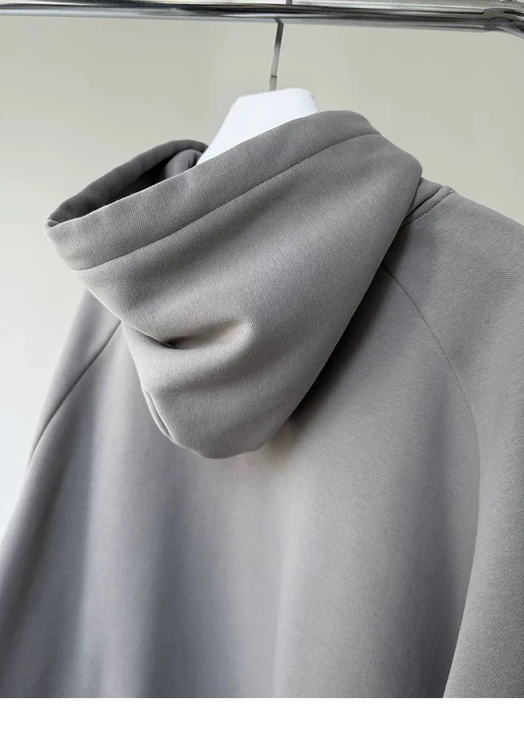AUROCEAN 運動少年 中長款 廓形加厚 連帽外套(黑色)