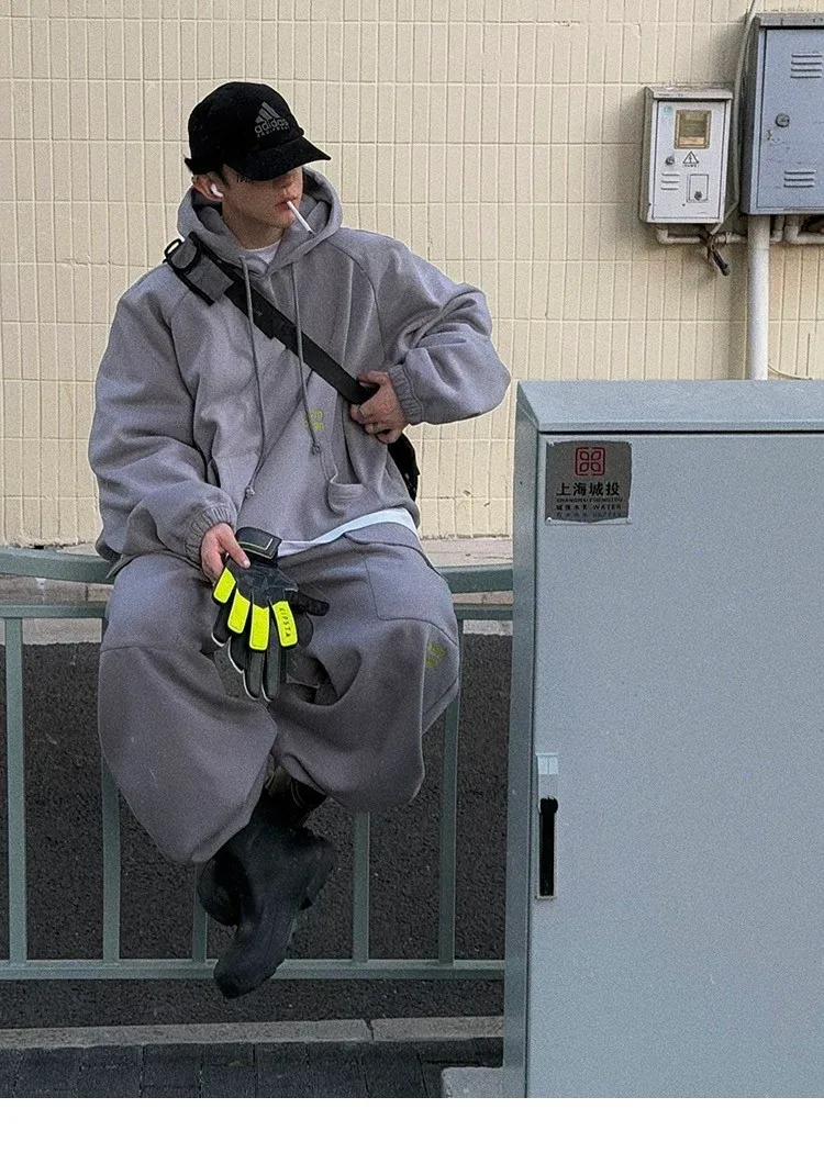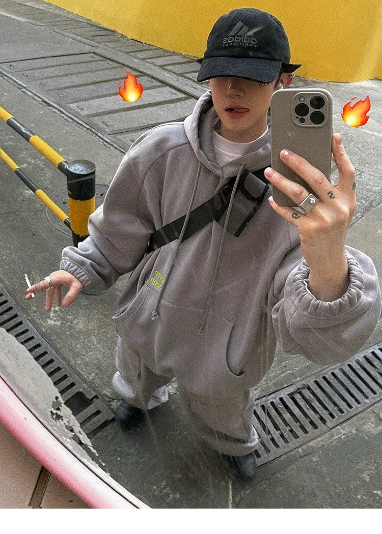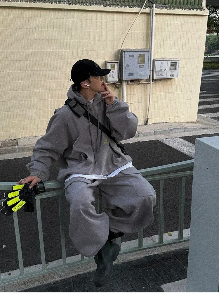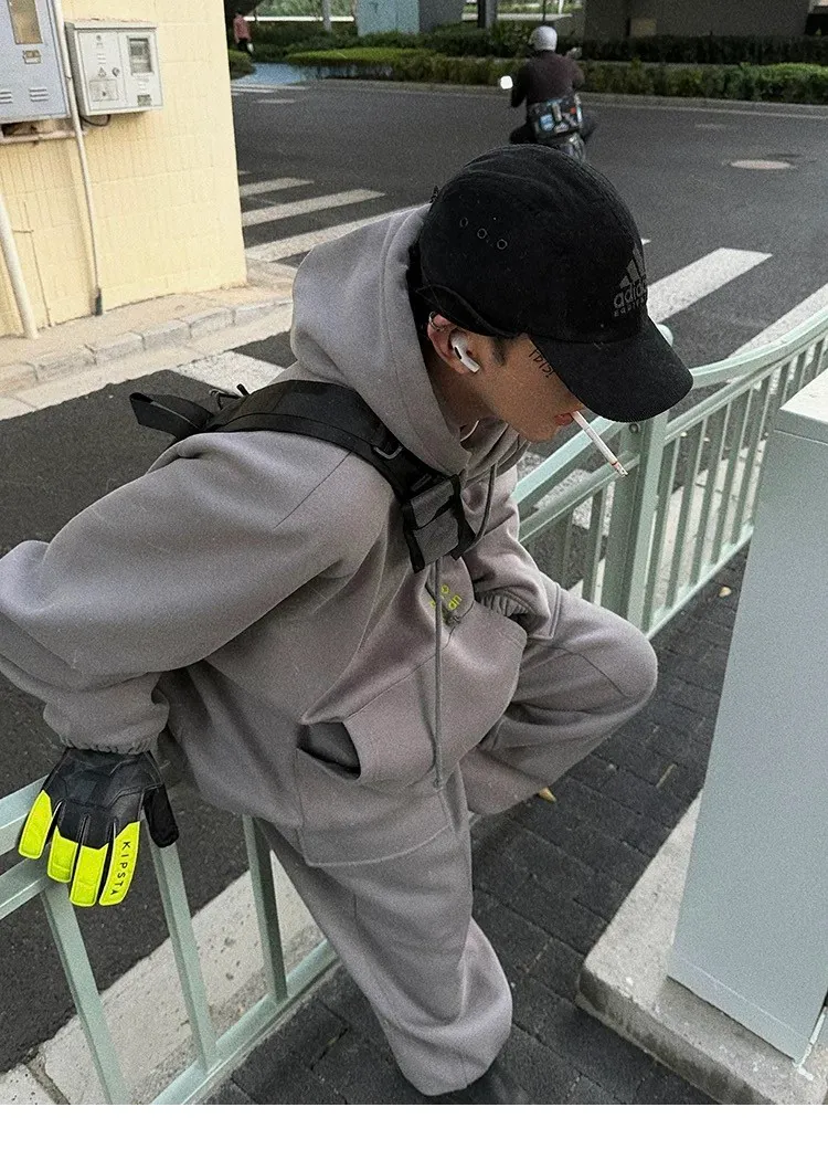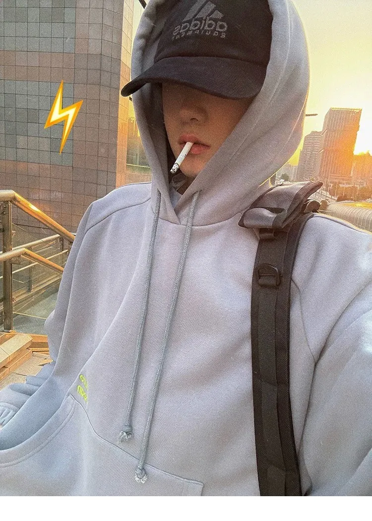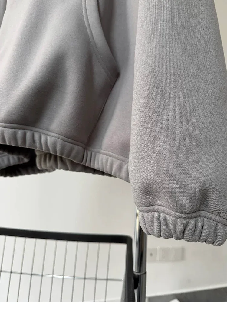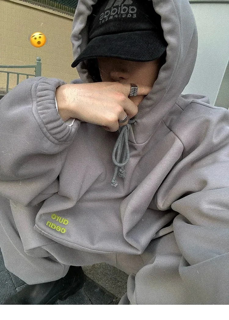 AUROCEAN 運動少年 中長款 廓形加厚 連帽外套(黑色)