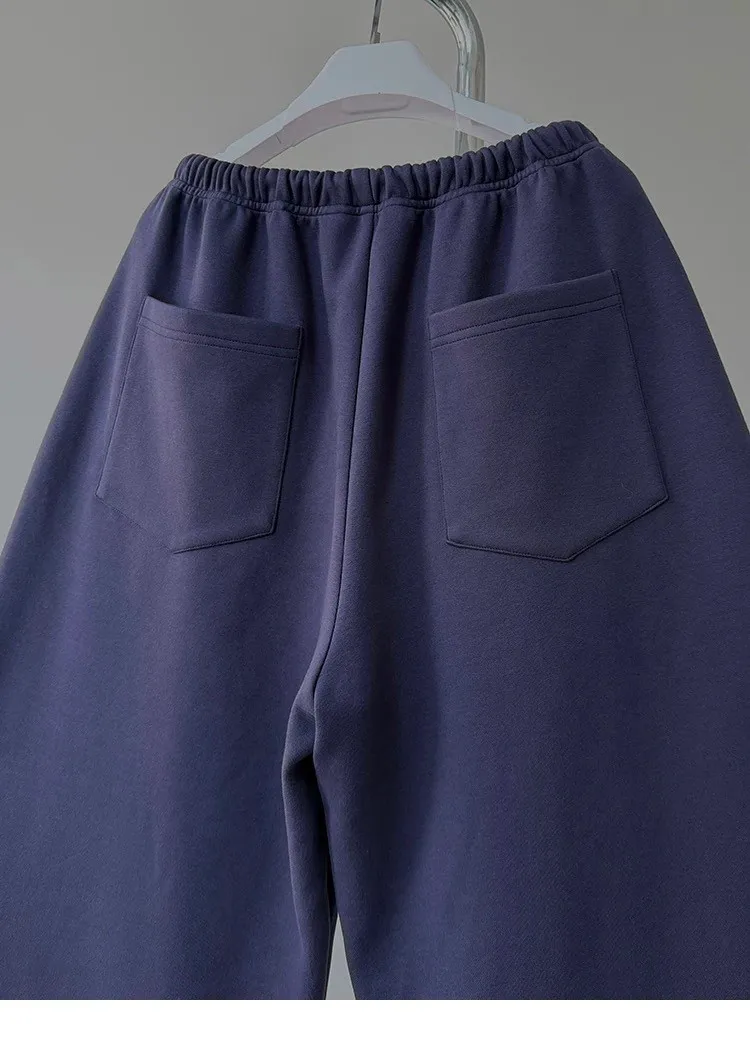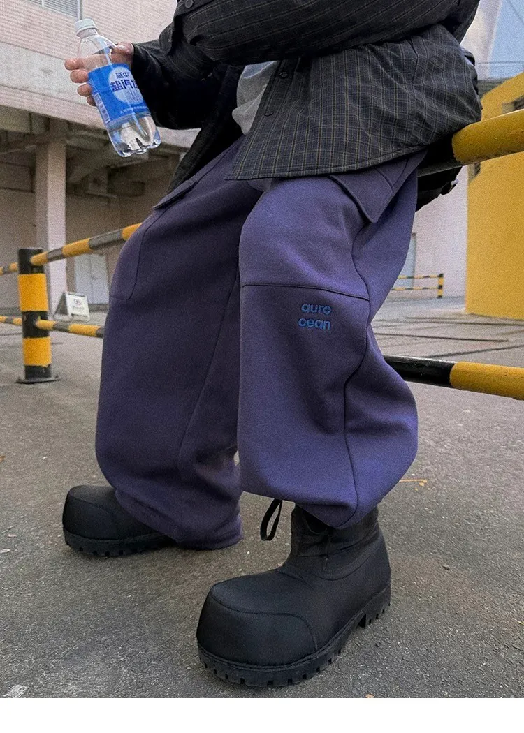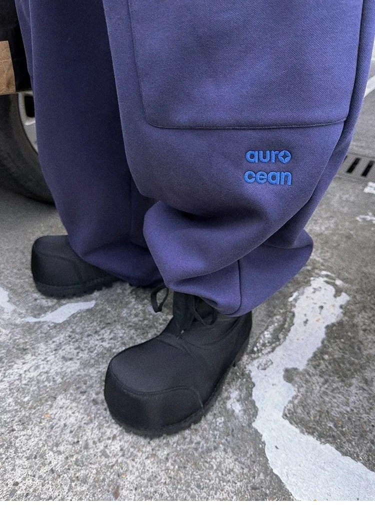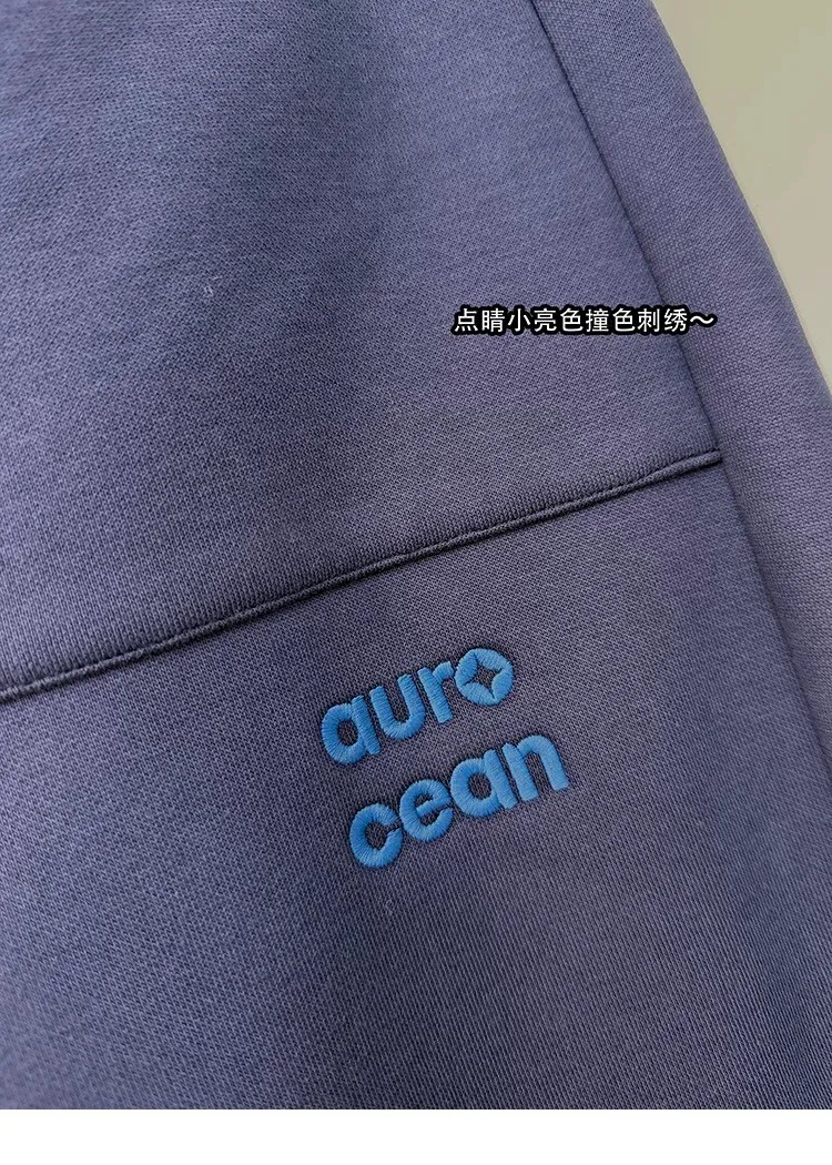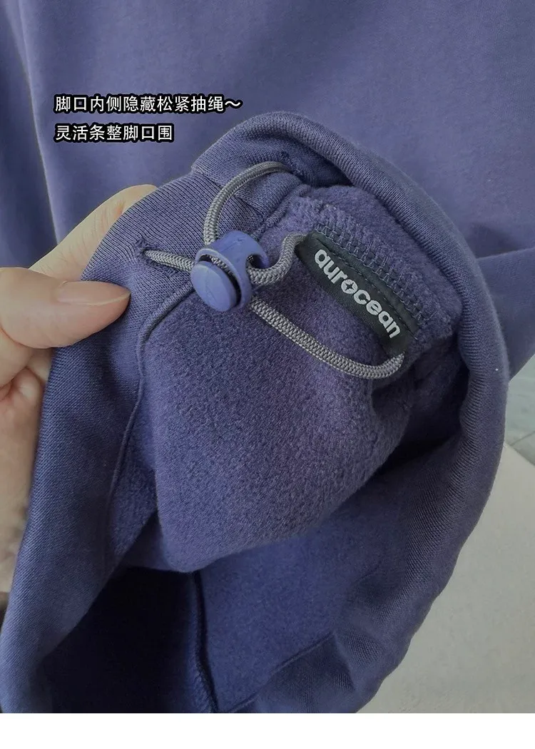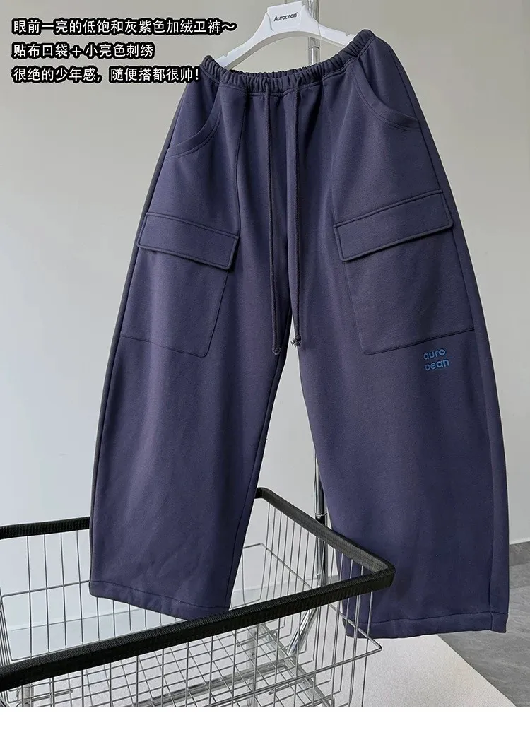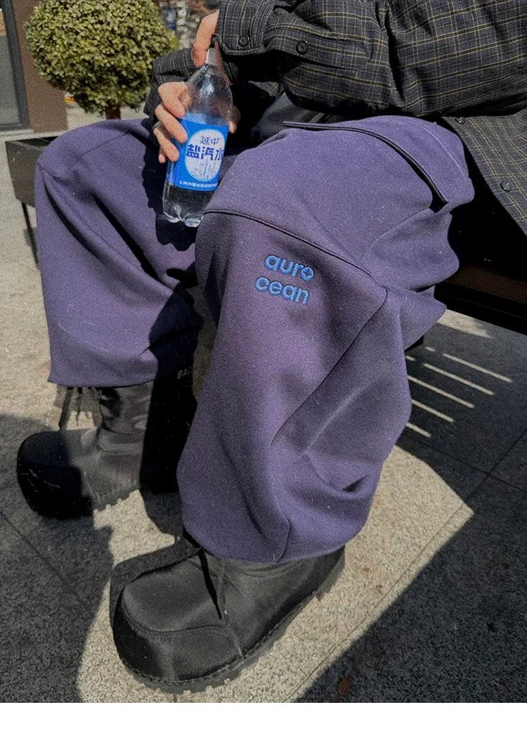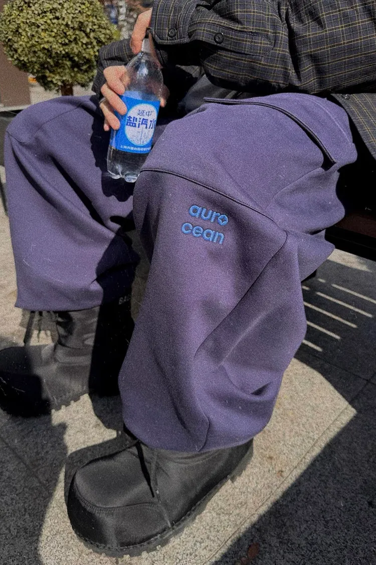AUROCEAN 定染 撞色刺繡 加絨 棉褲(灰紫)