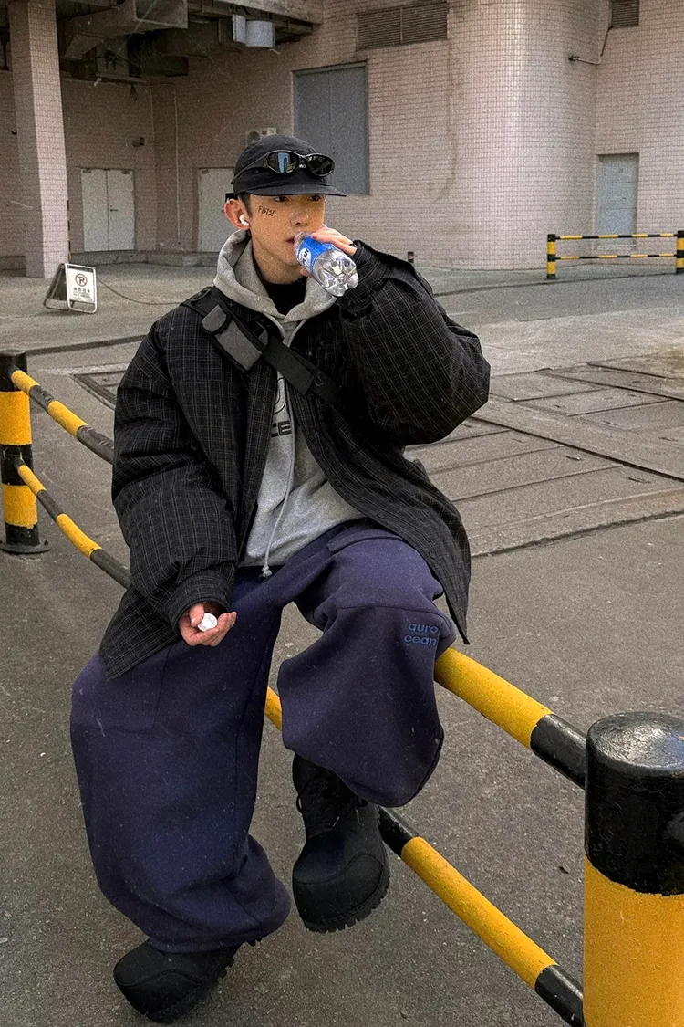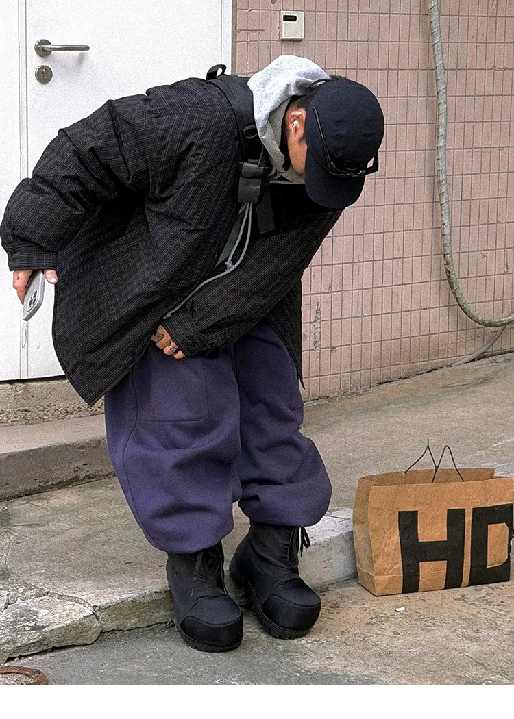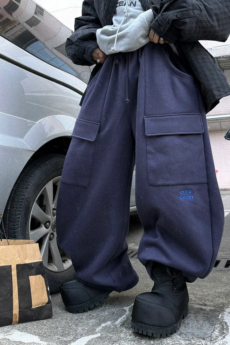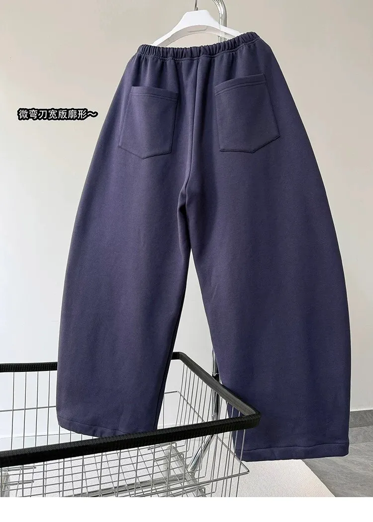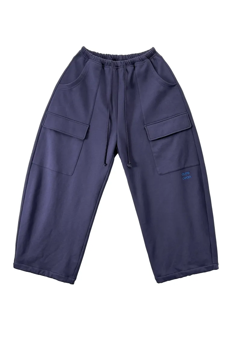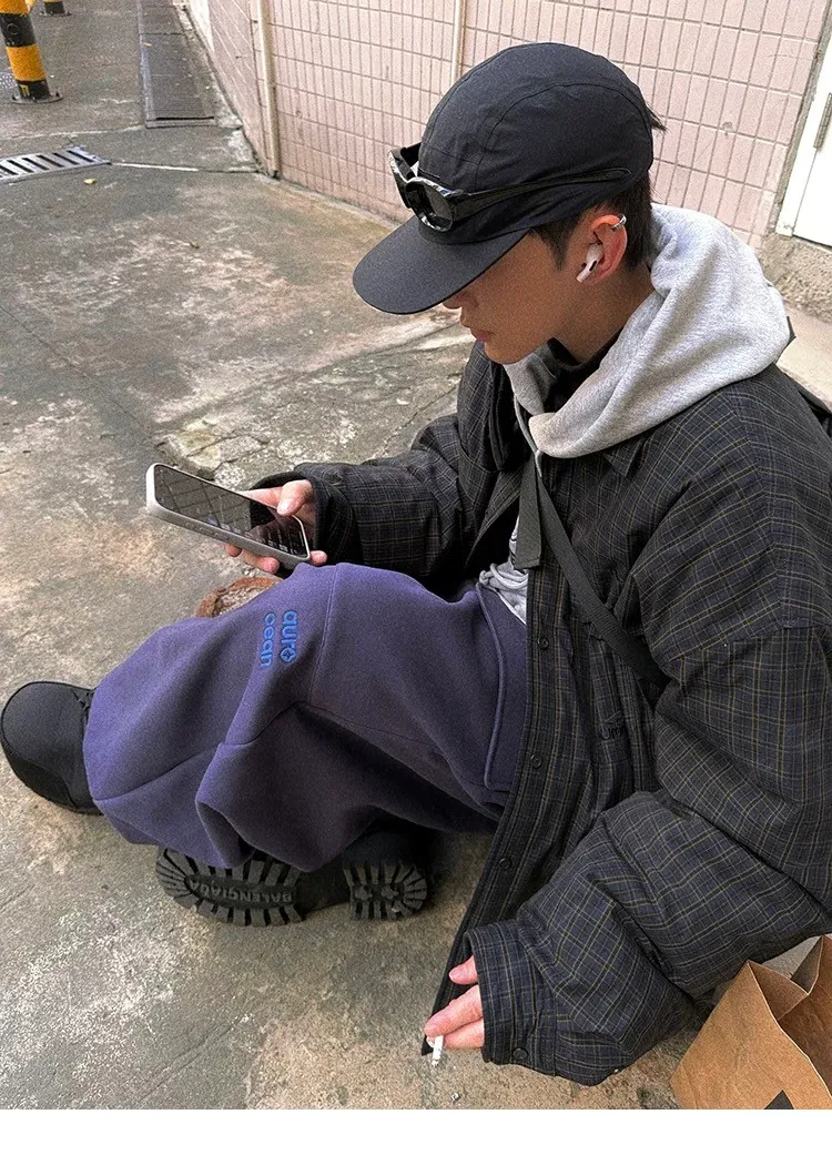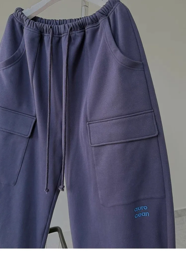 AUROCEAN 定染 撞色刺繡 加絨 棉褲(灰紫)