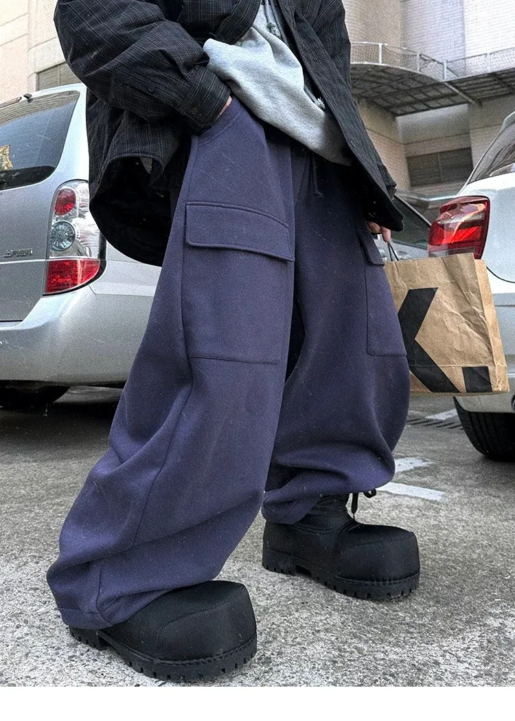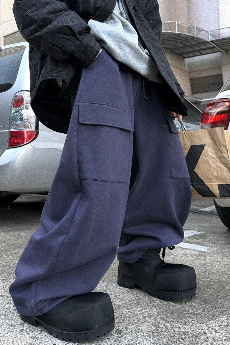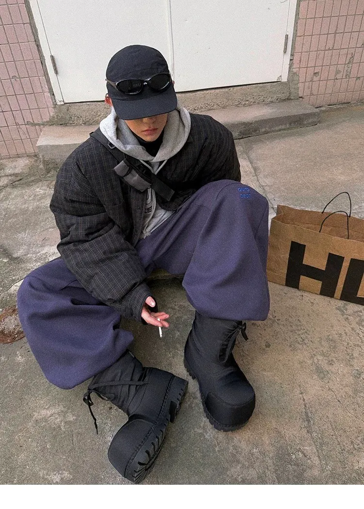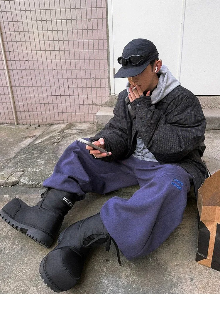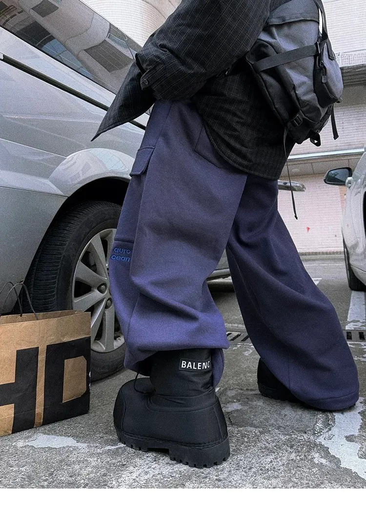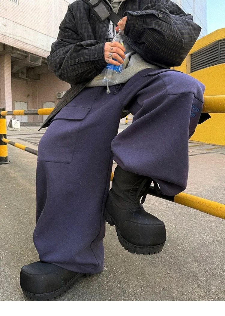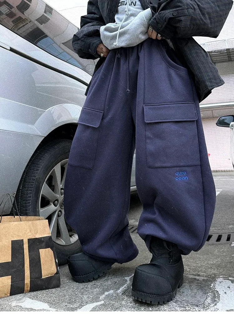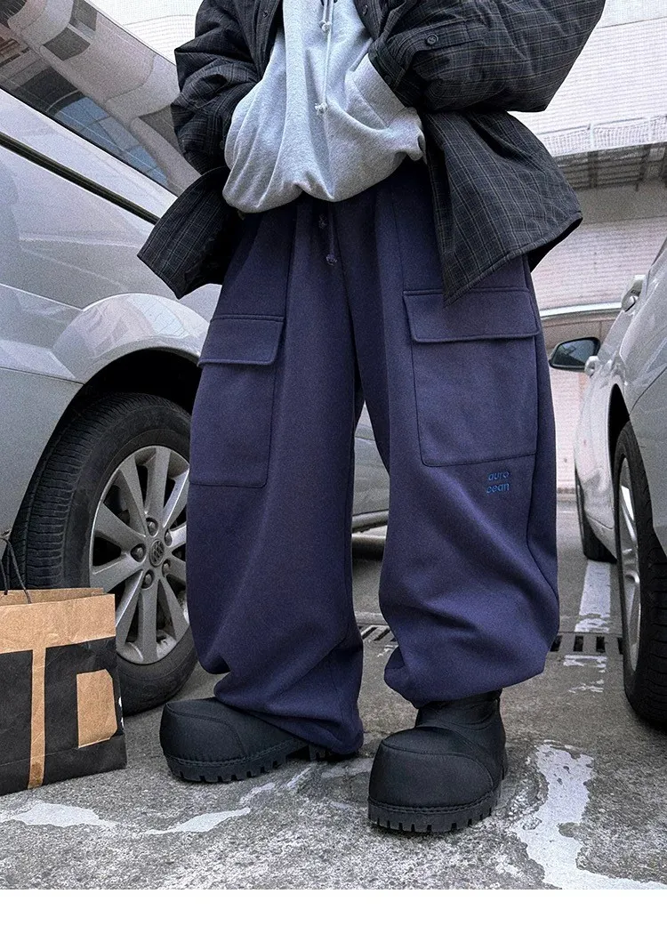 AUROCEAN 定染 撞色刺繡 加絨 棉褲(灰紫)
