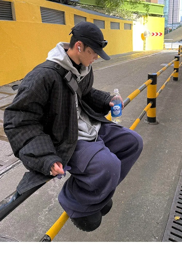 AUROCEAN 運動少年 中長款 廓形加厚 連帽外套(黑色)