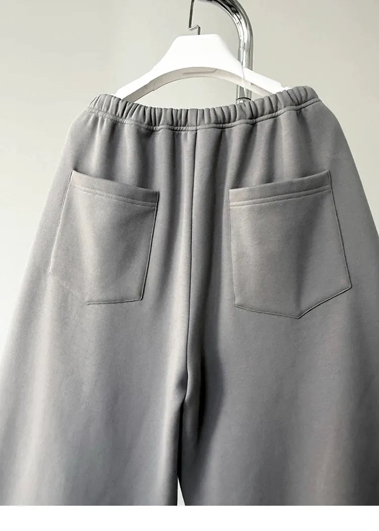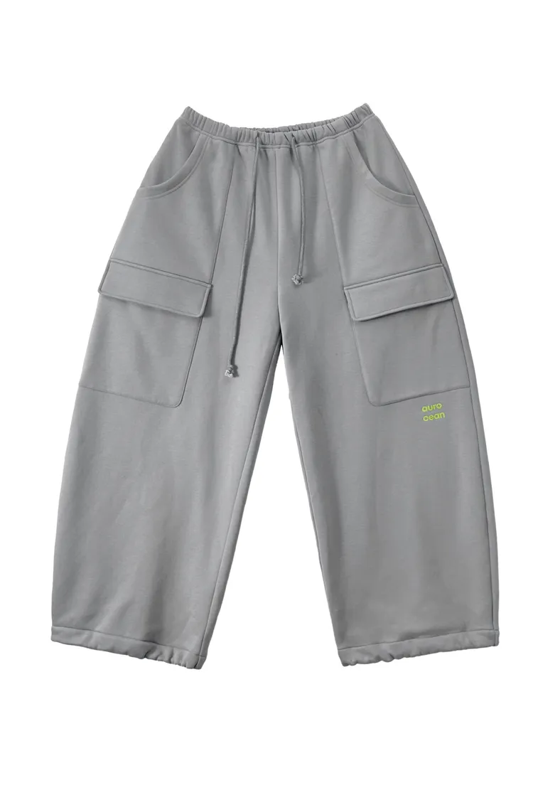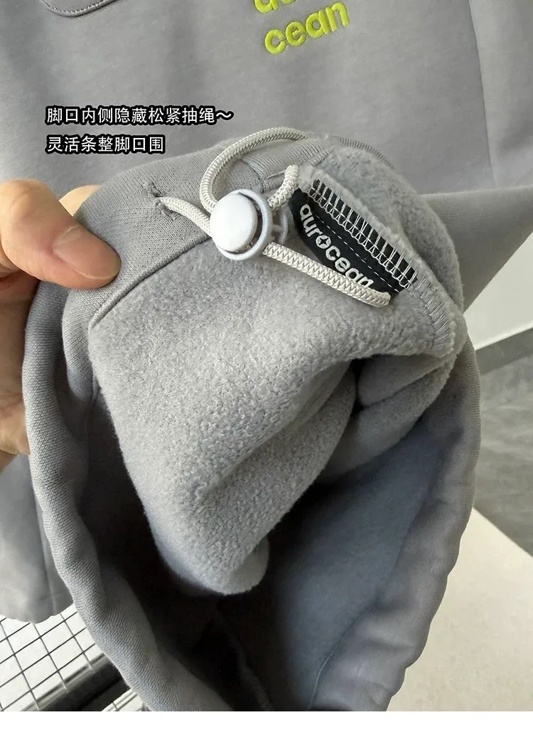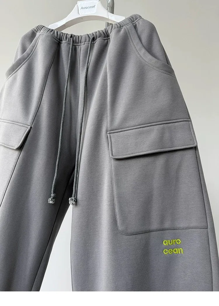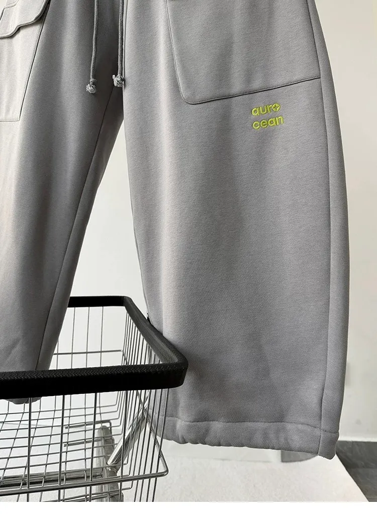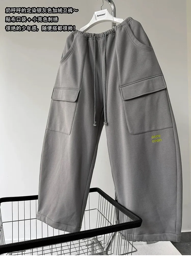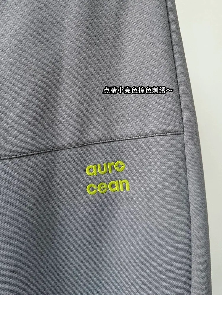 AUROCEAN 定染 撞色刺繡 加絨 棉褲(銀灰)