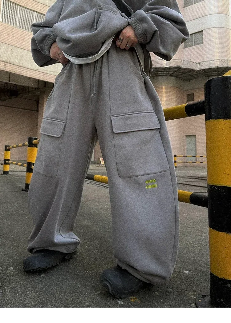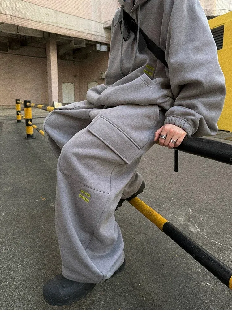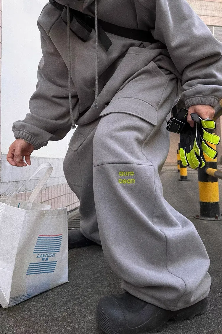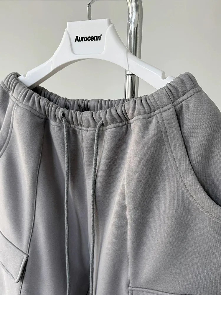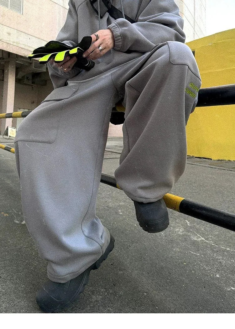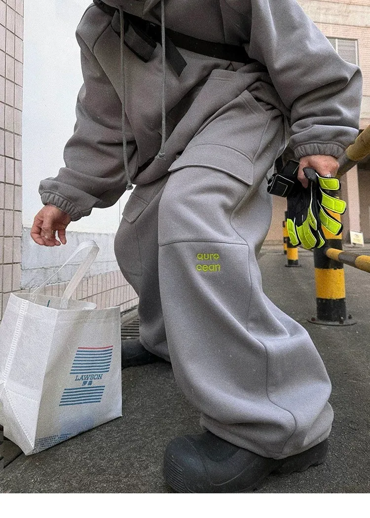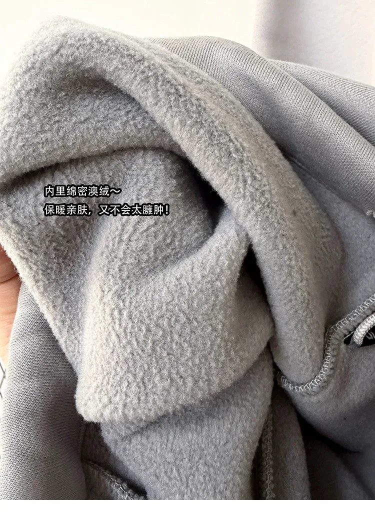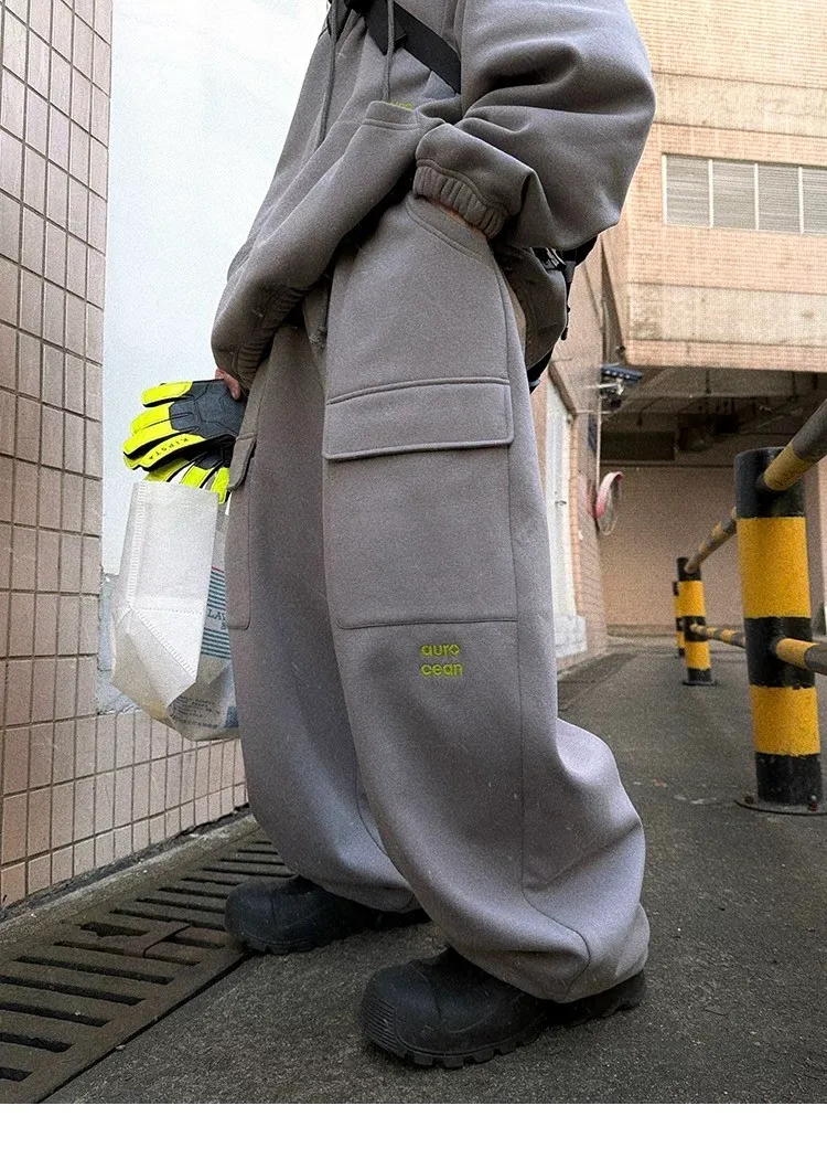 AUROCEAN 定染 撞色刺繡 加絨 棉褲(銀灰)