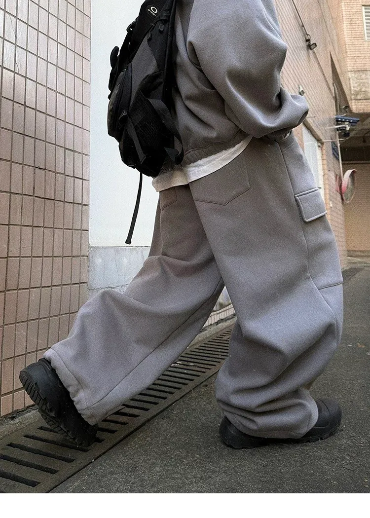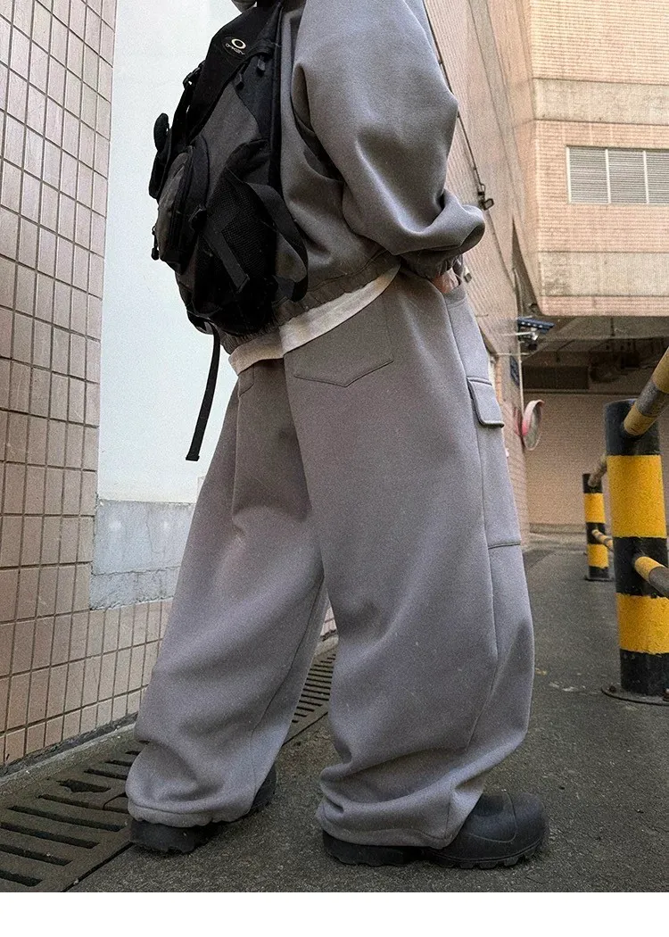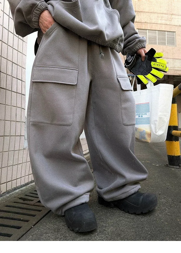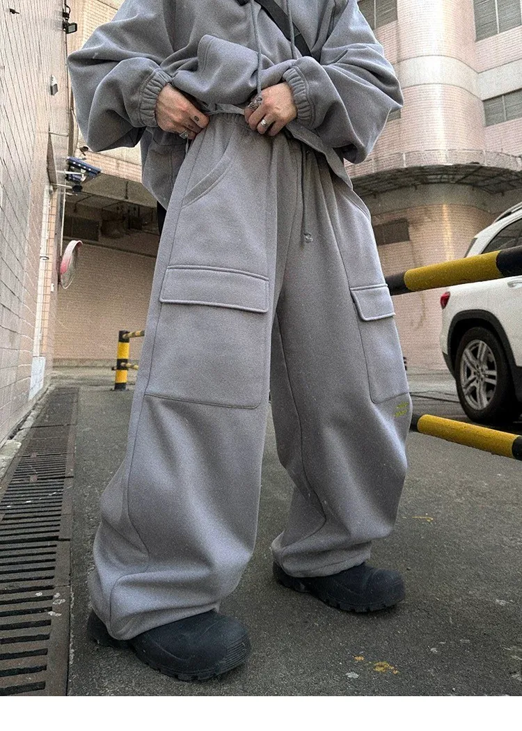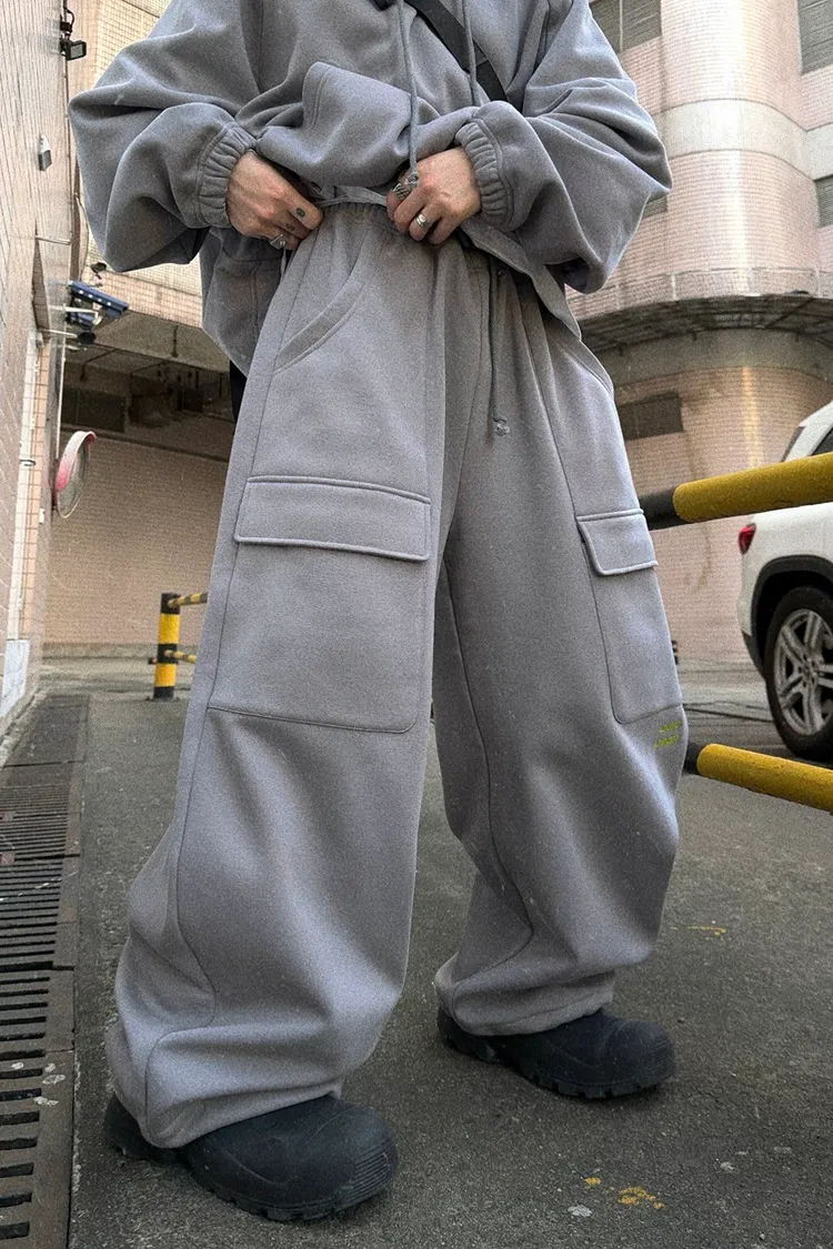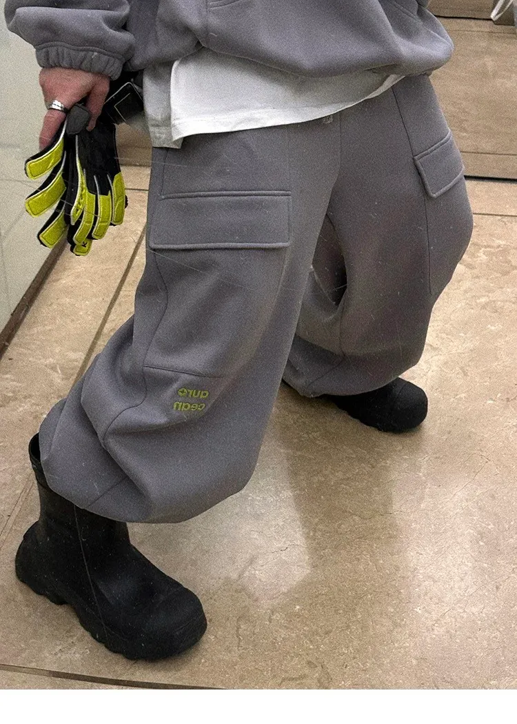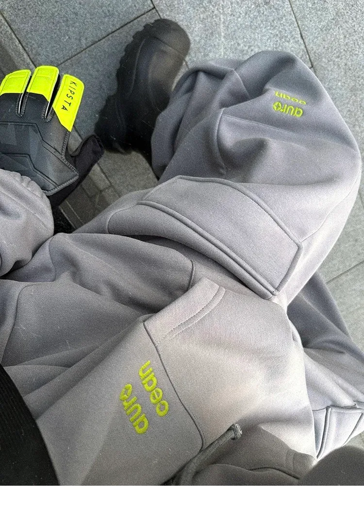 AUROCEAN 定染 撞色刺繡 加絨 棉褲(銀灰)
