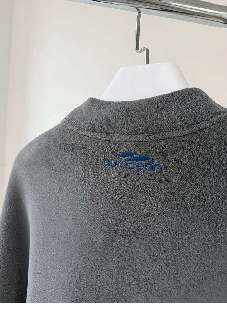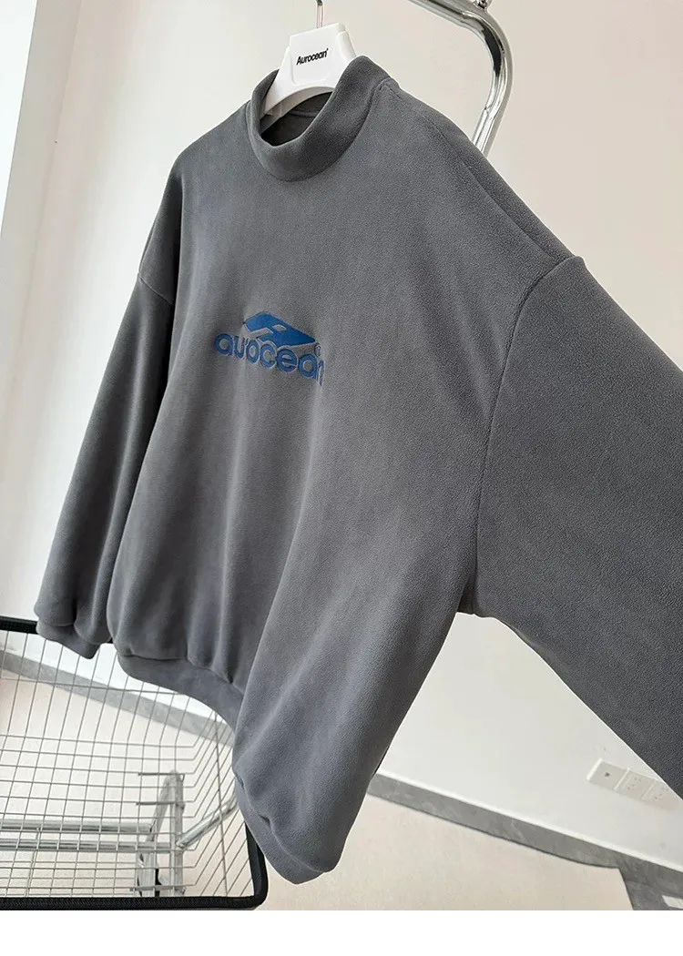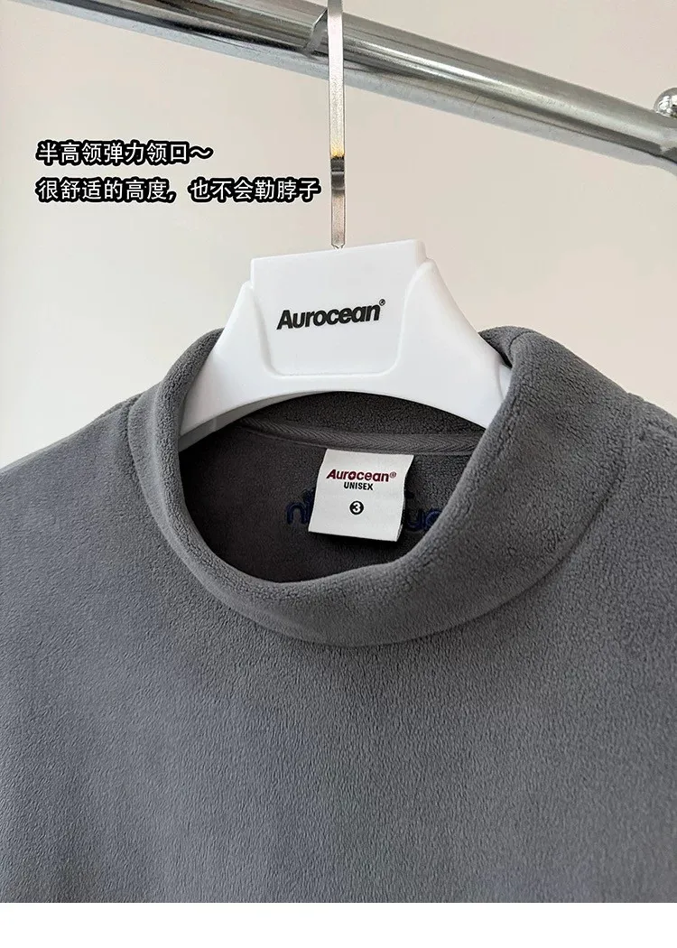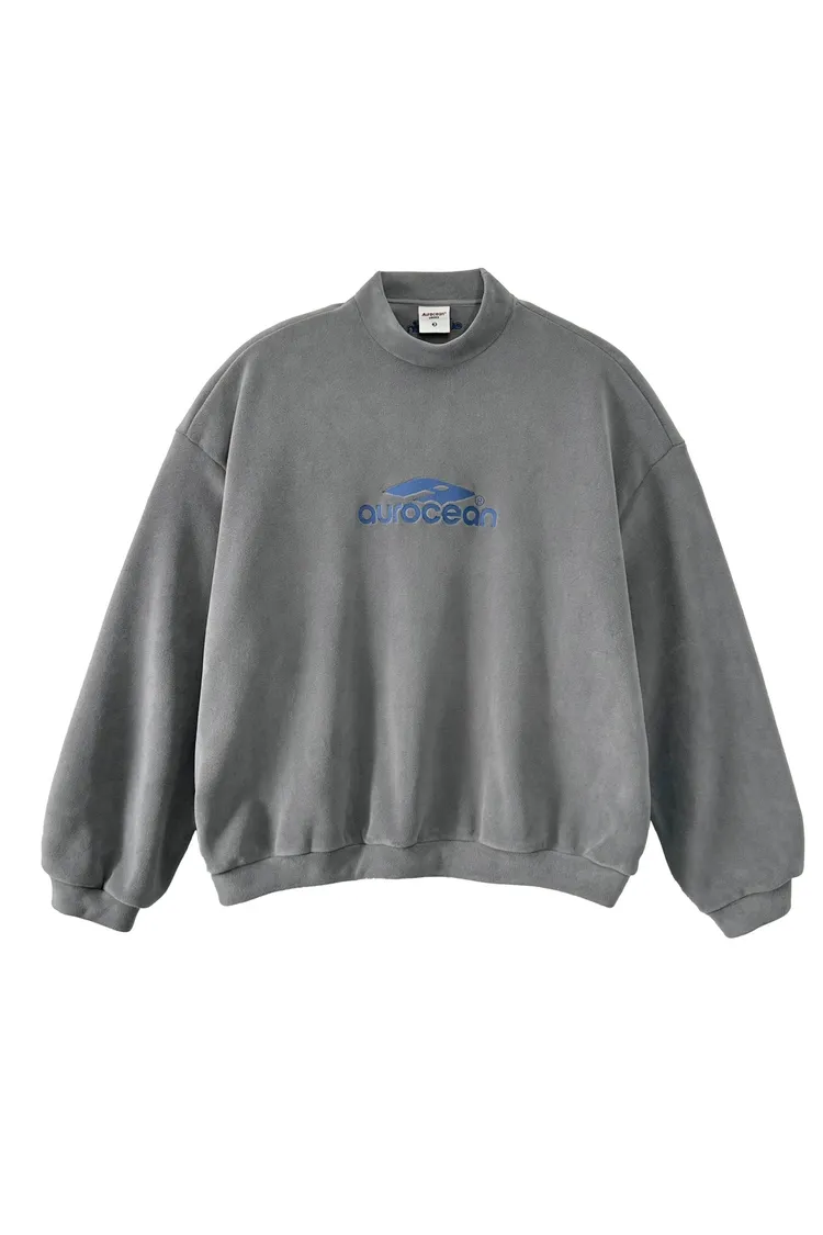 AUROCEAN 搖粒絨 小高領 刺繡LOGO 長袖(灰)