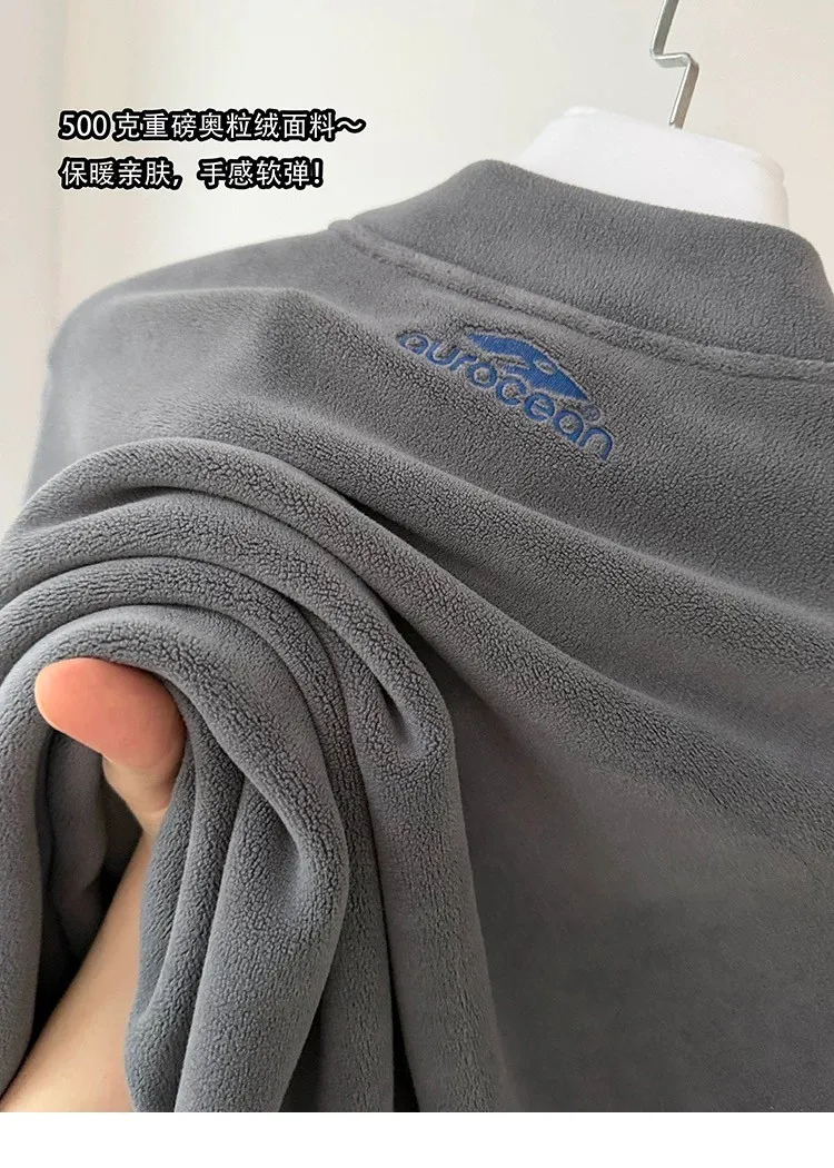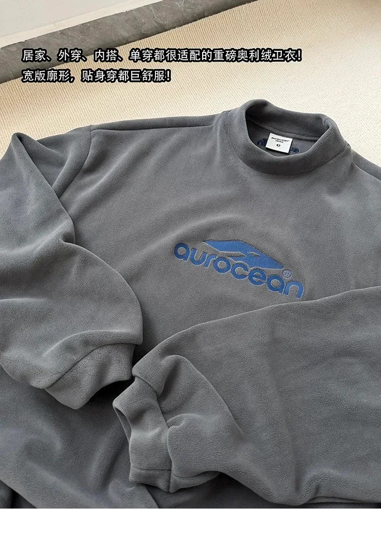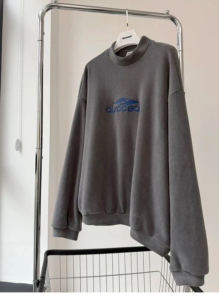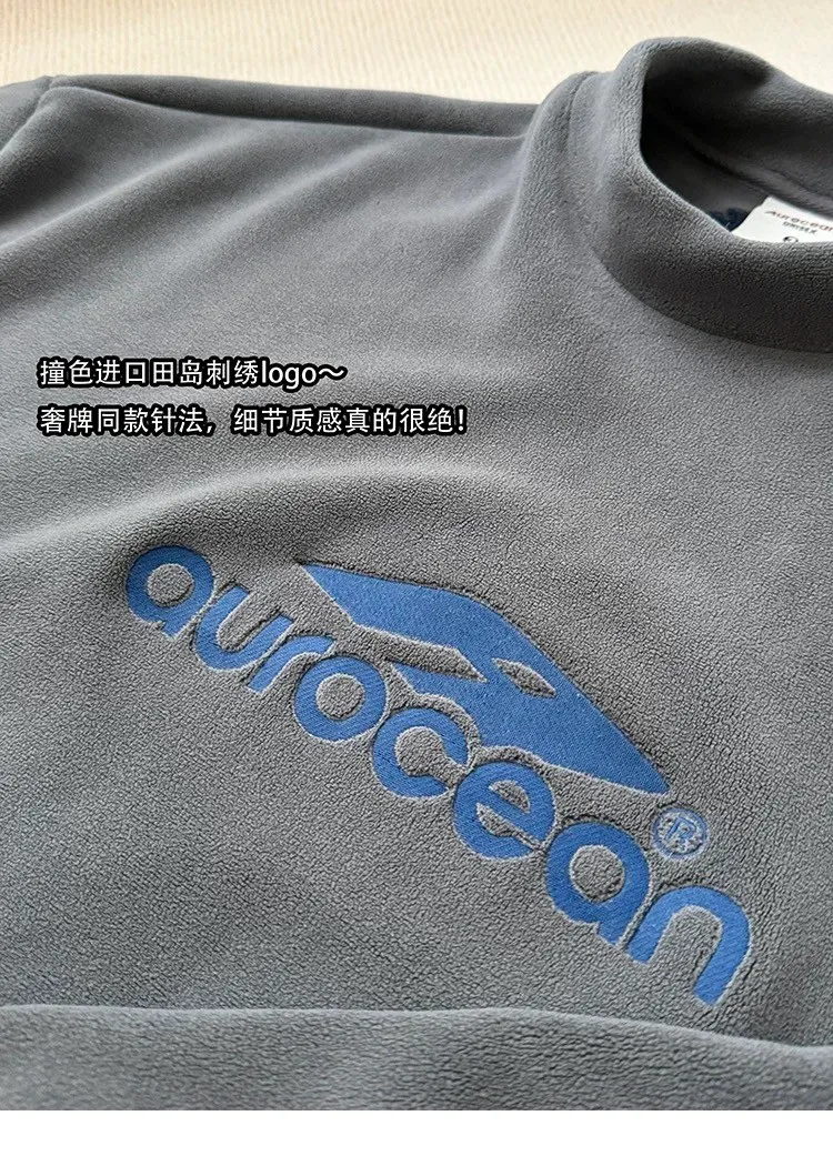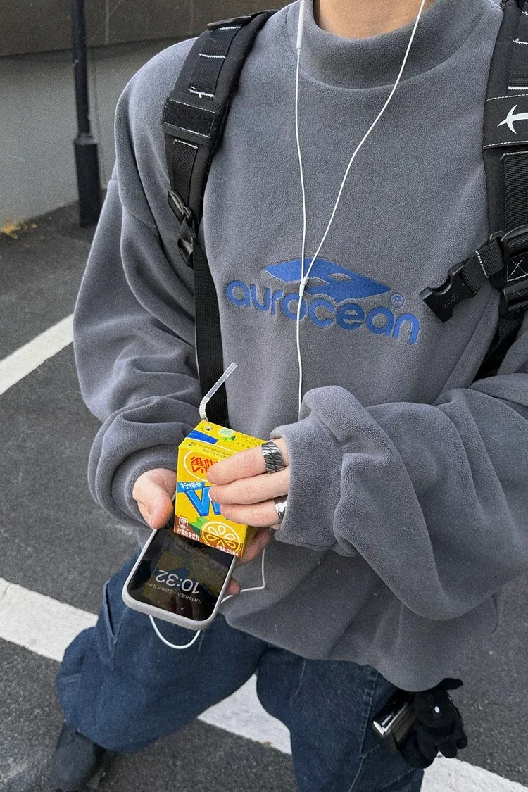 AUROCEAN 搖粒絨 小高領 刺繡LOGO 長袖(灰)