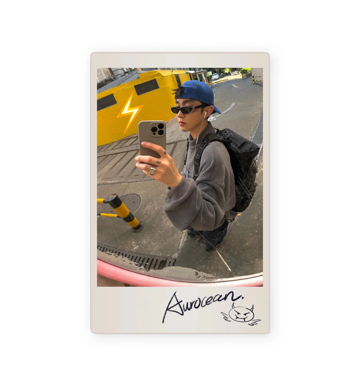 AUROCEAN 寬短版型 復古刺繡 帽踢(灰紫)