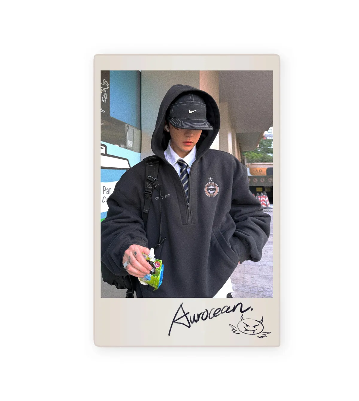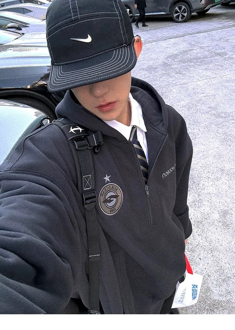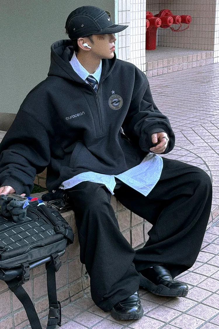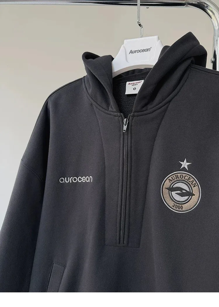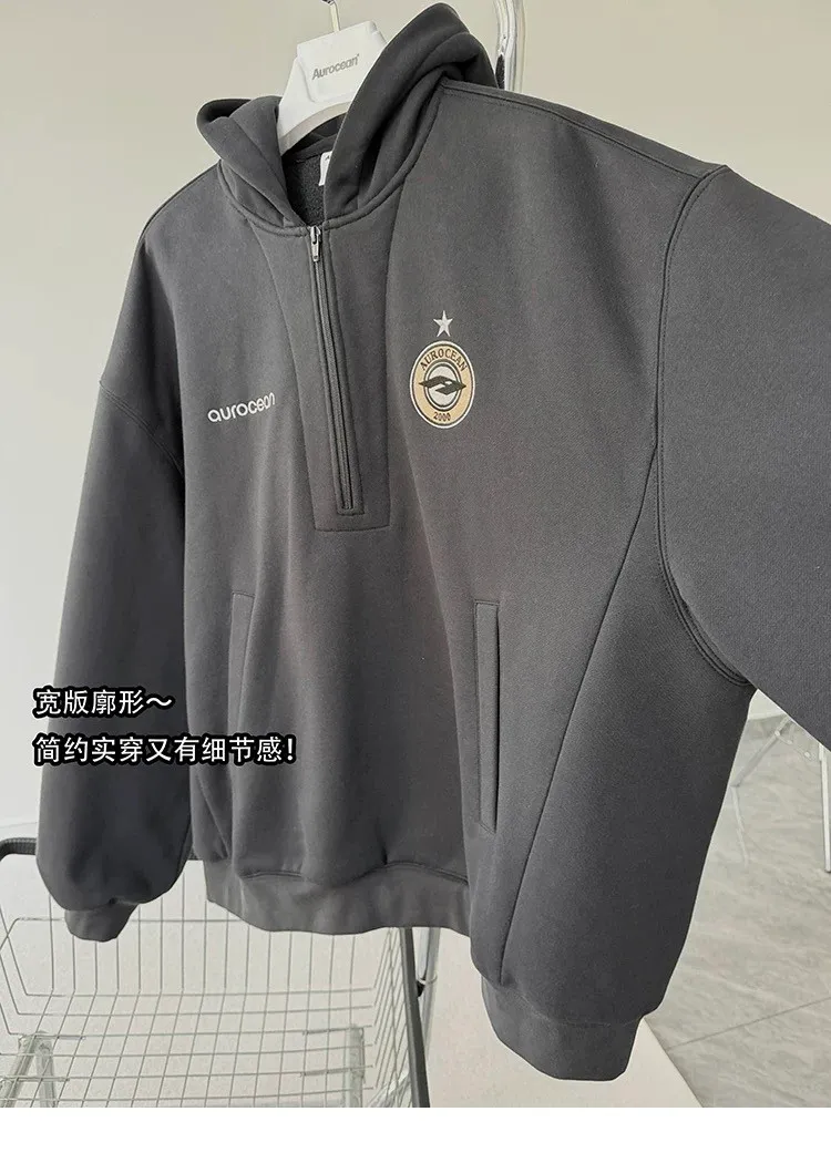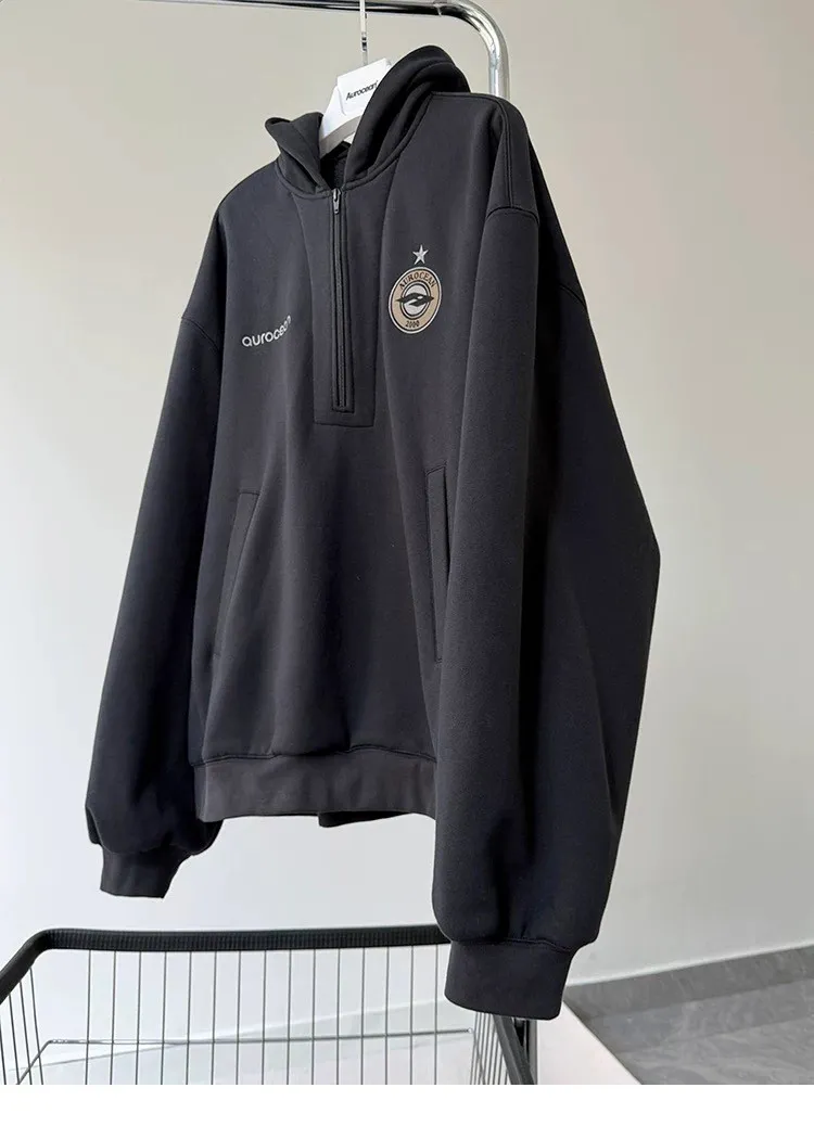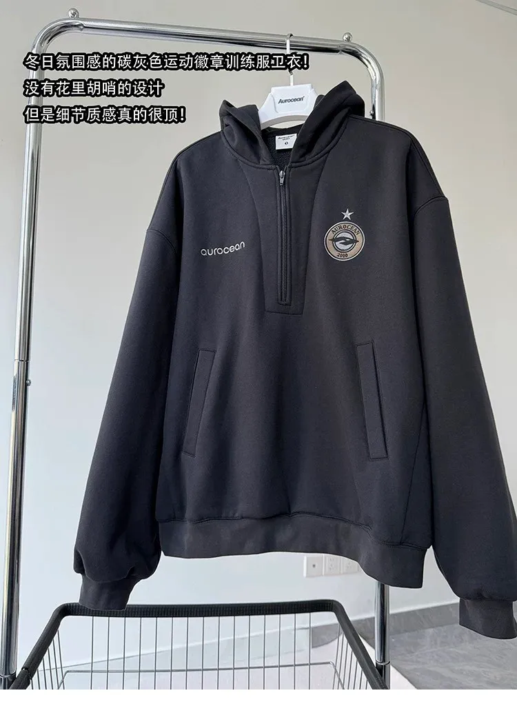 AUROCEAN 運動少年 徽章刺繡 加絨 帽踢(黑)