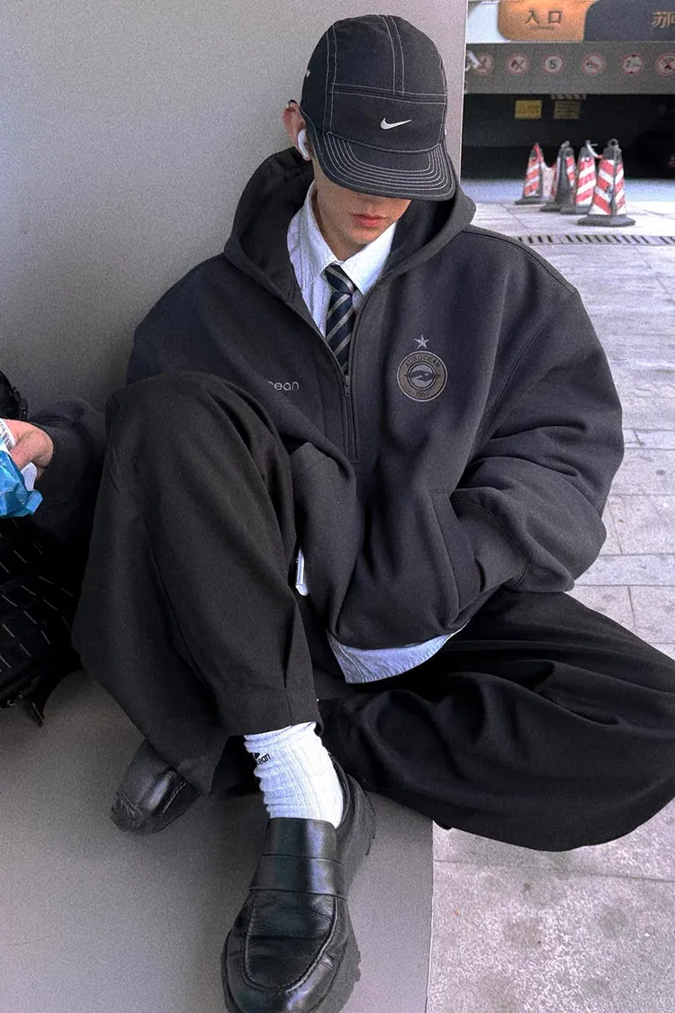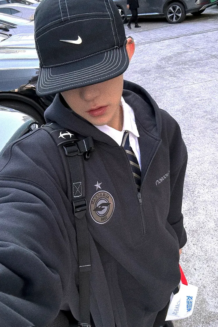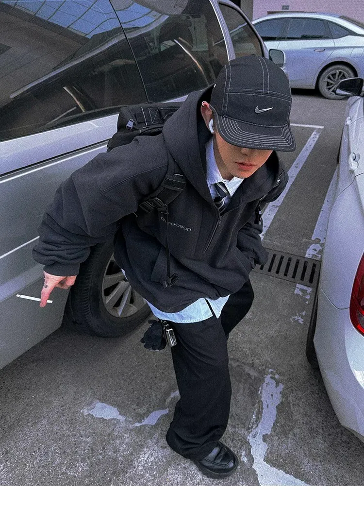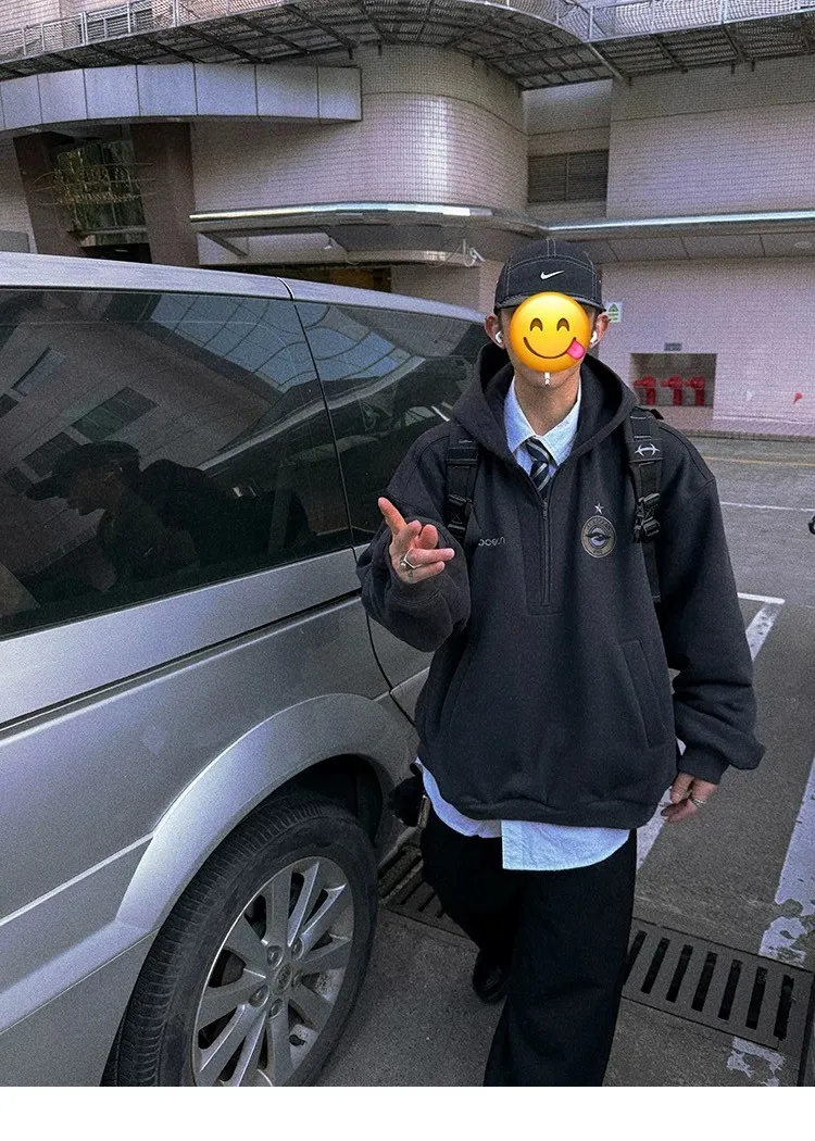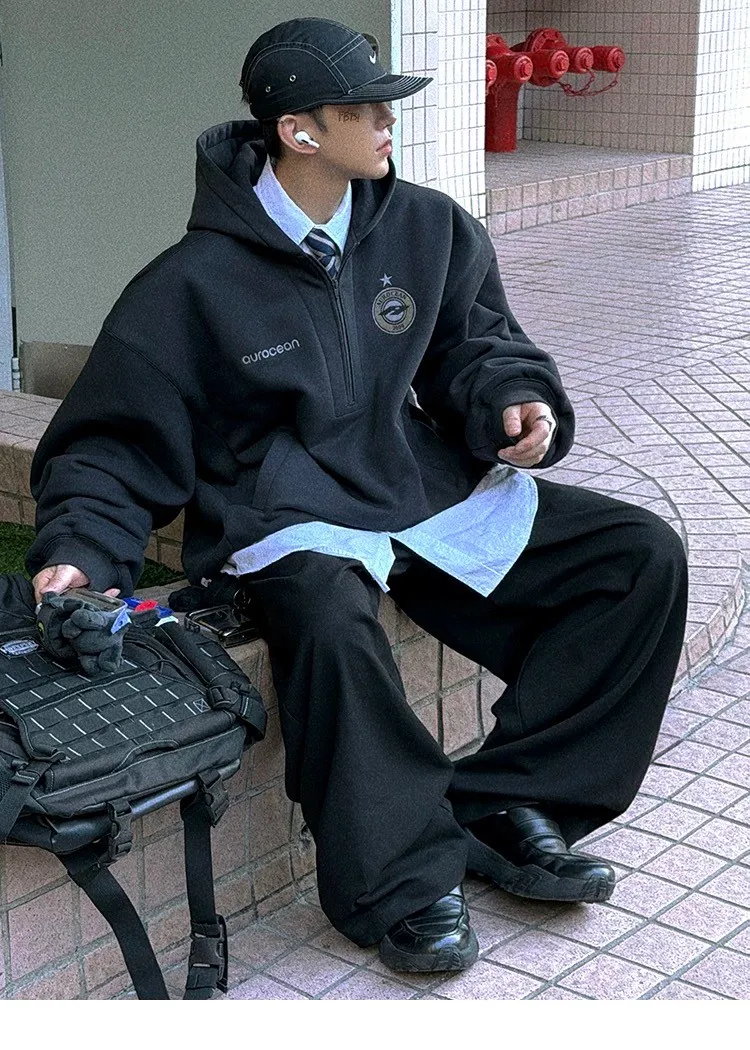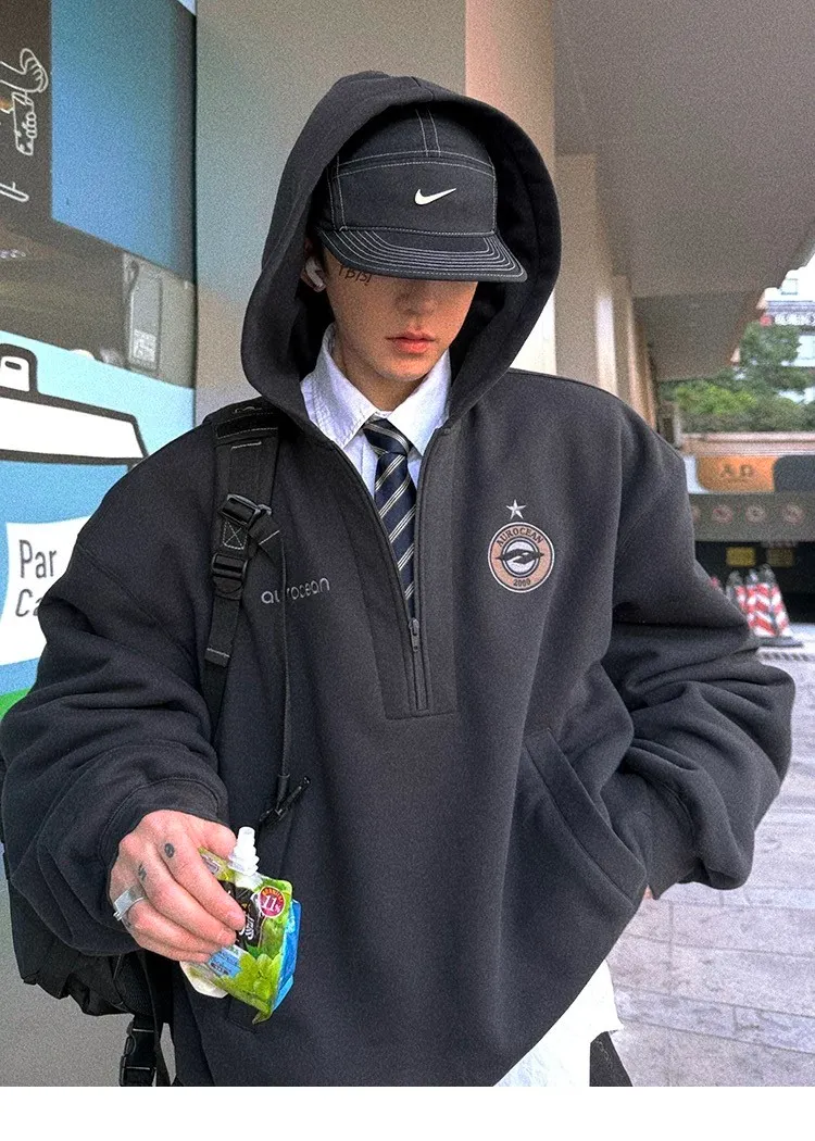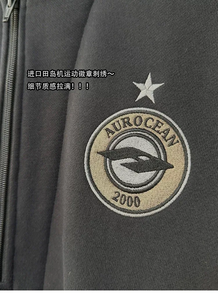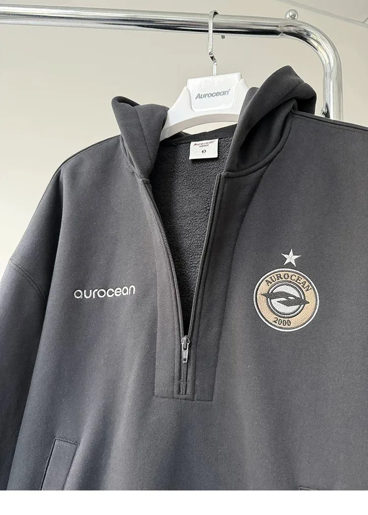 AUROCEAN 運動少年 徽章刺繡 加絨 帽踢(黑)