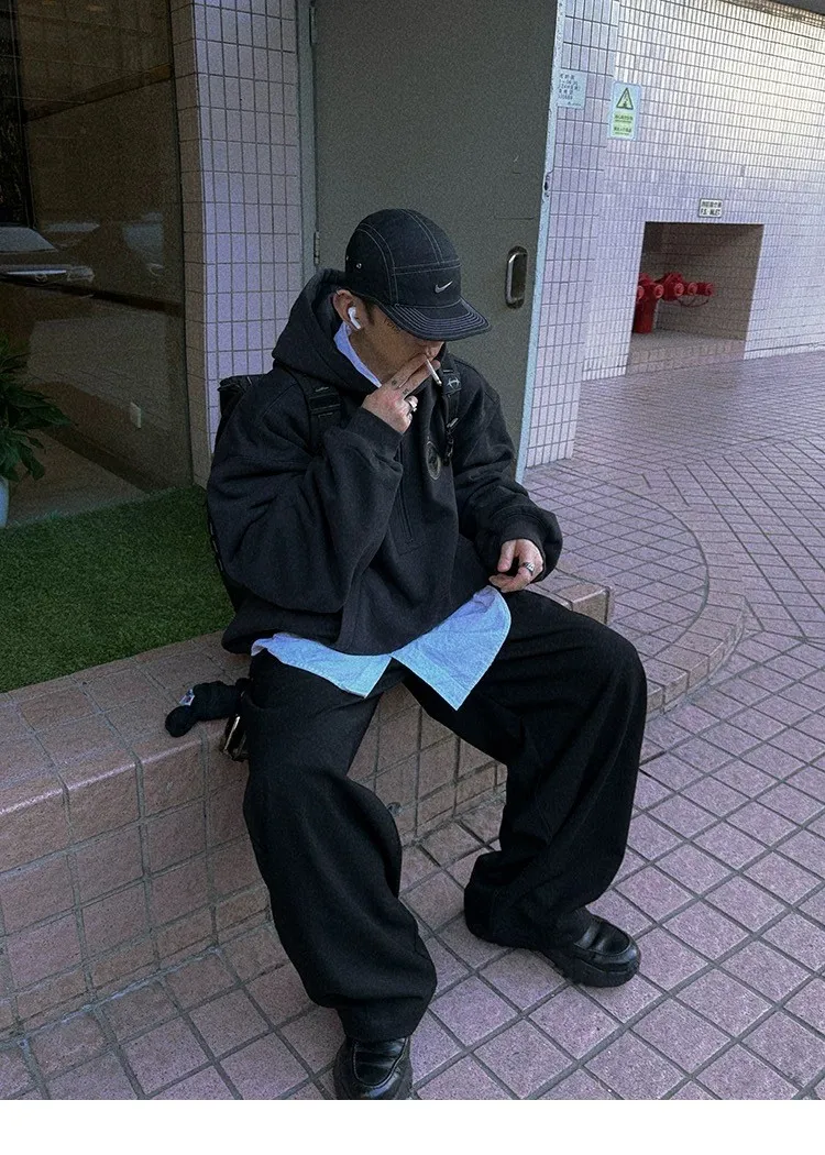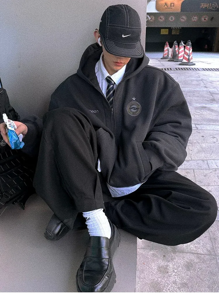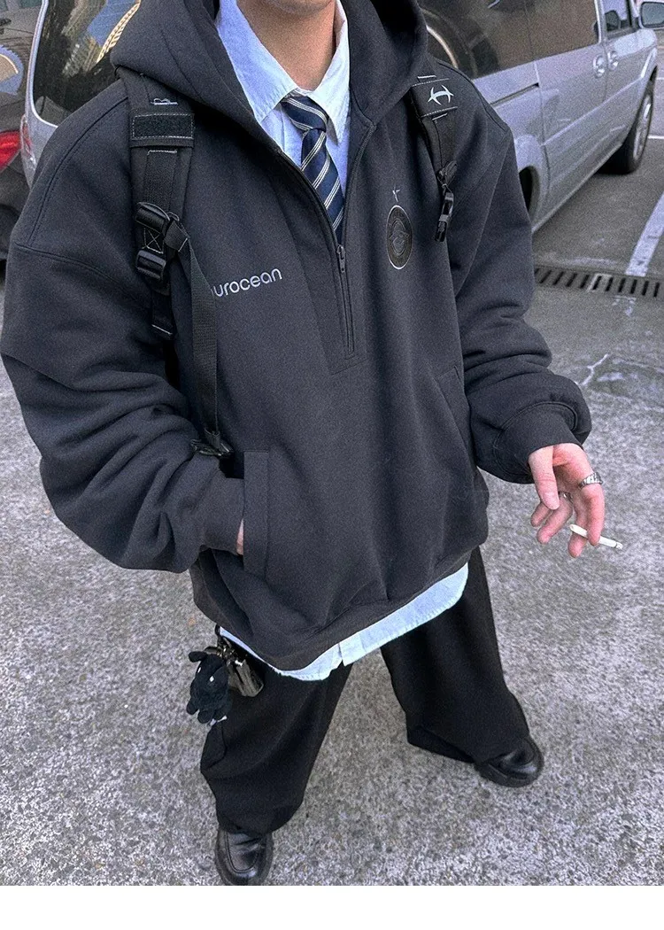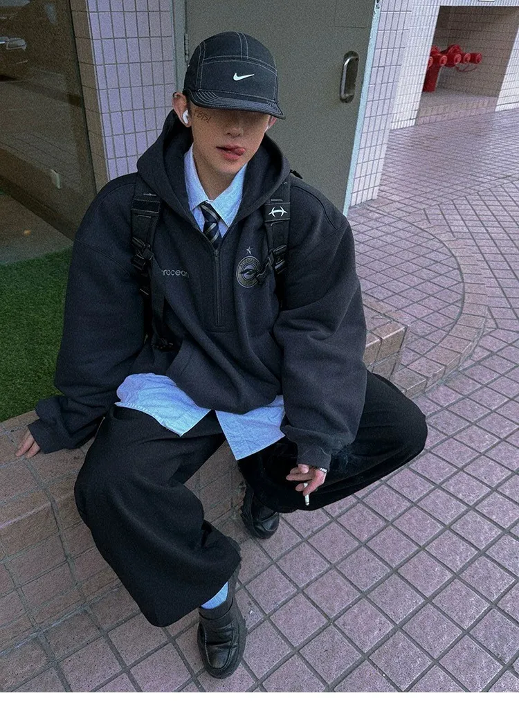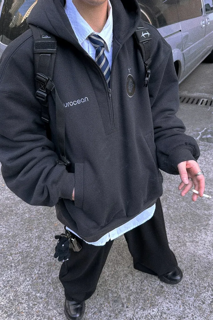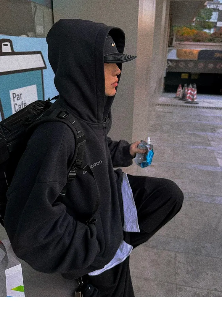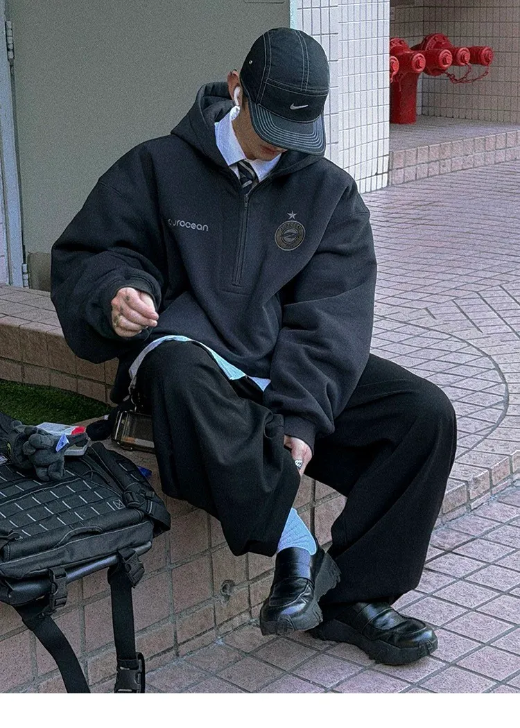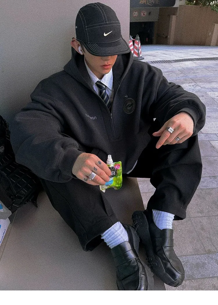 AUROCEAN 運動少年 徽章刺繡 加絨 帽踢(黑)