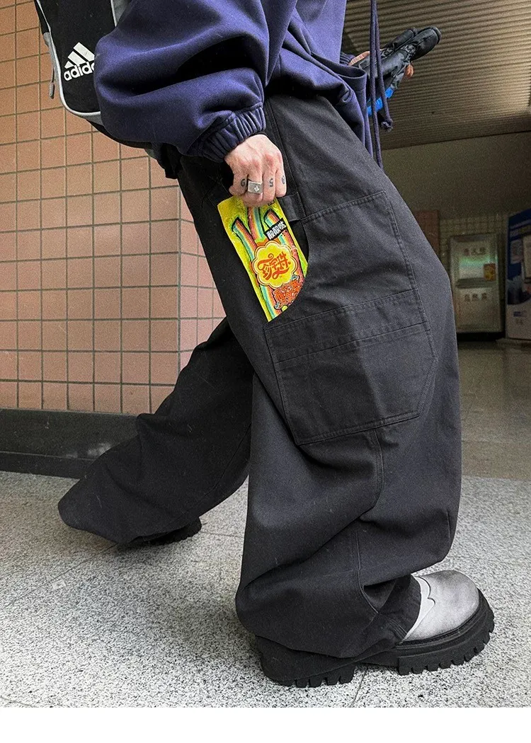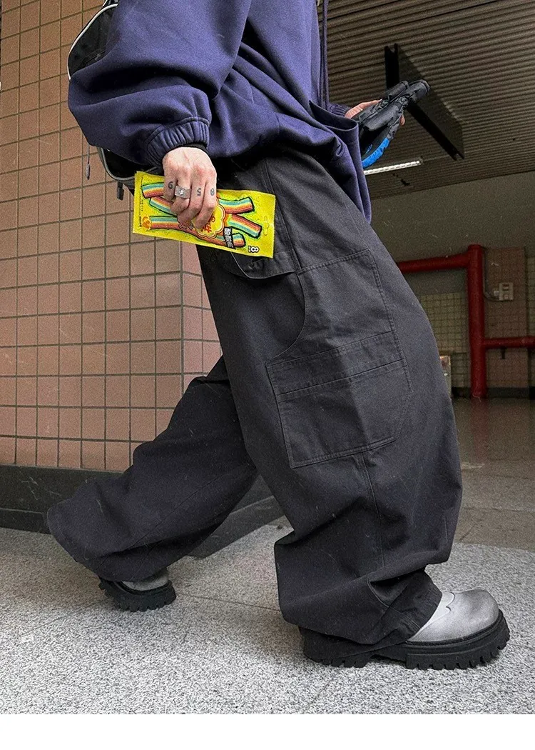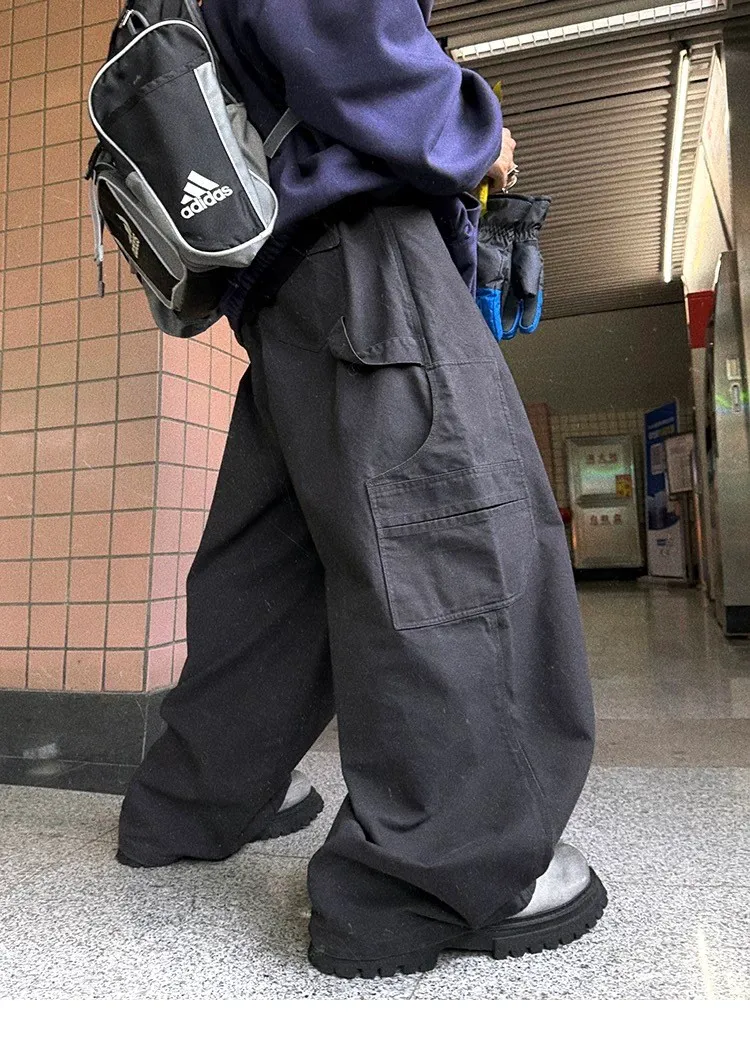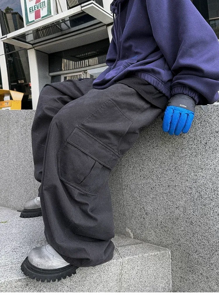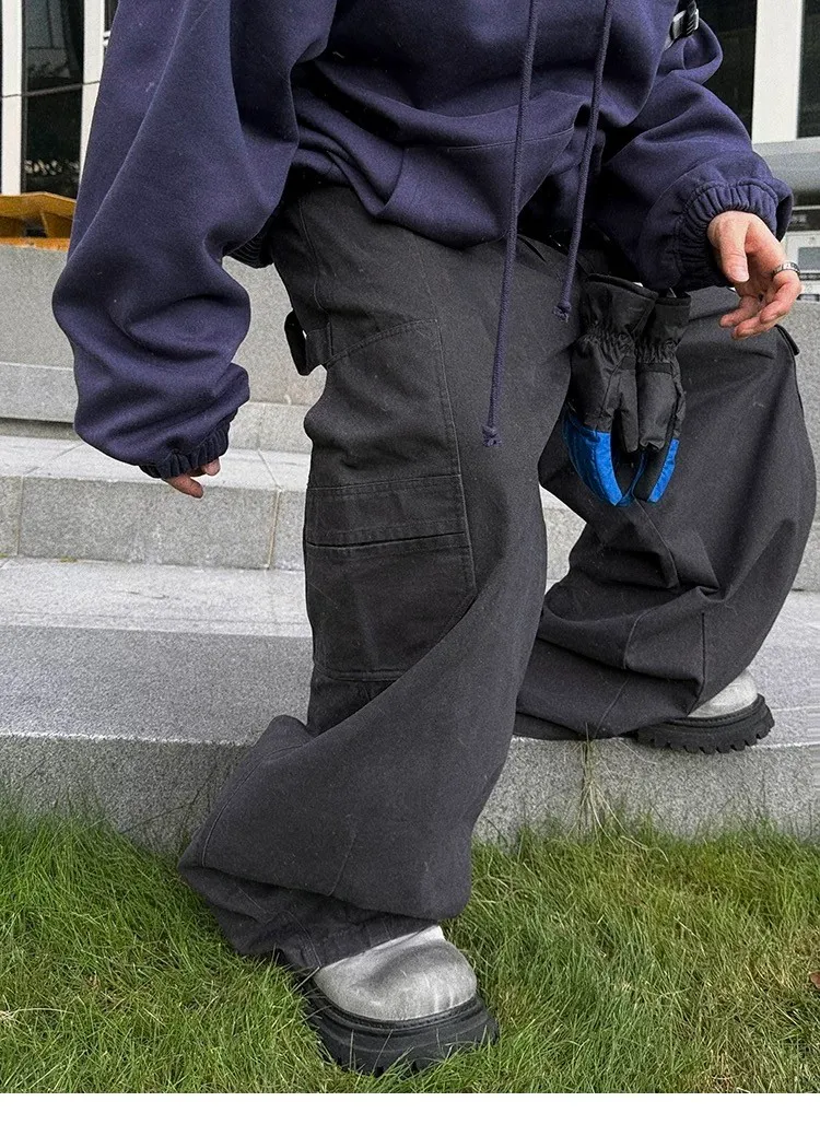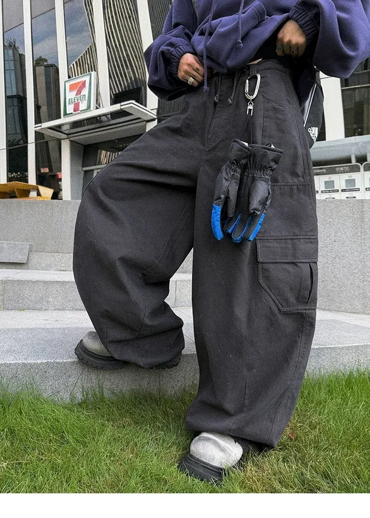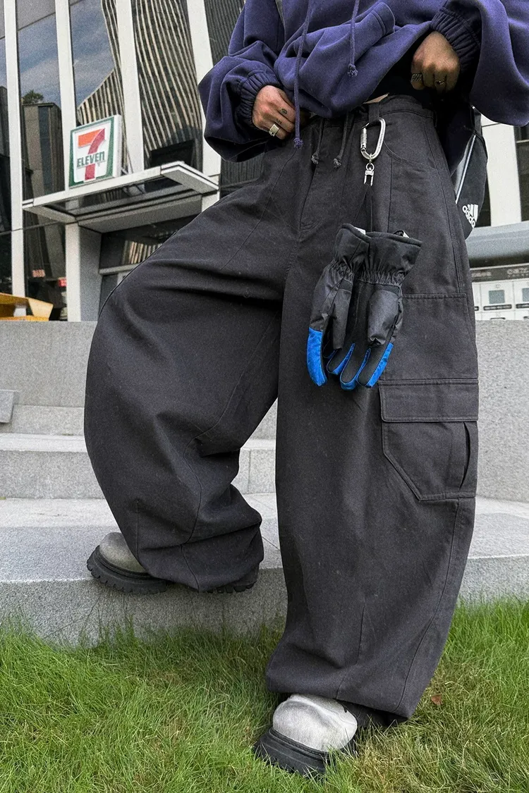 [LAX STUDIO] AUROCEAN 水洗大口袋 廓形 長褲(黑)