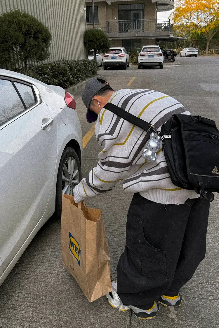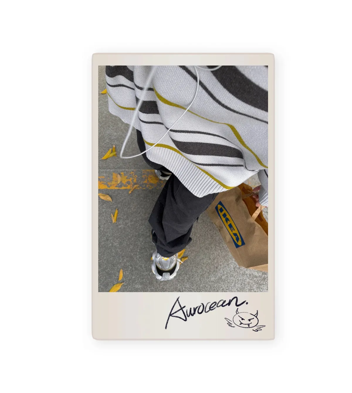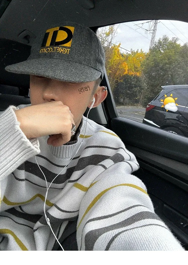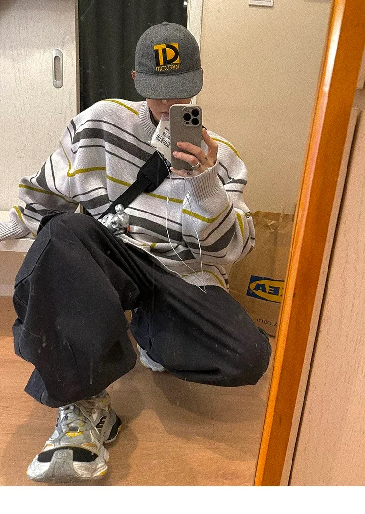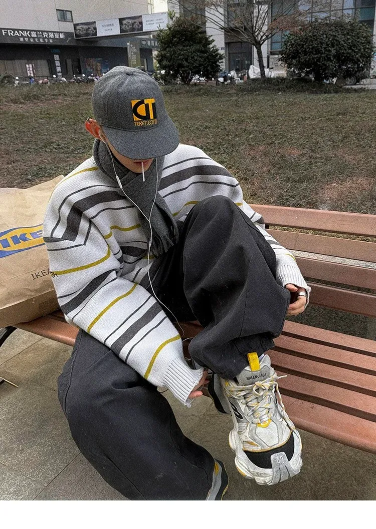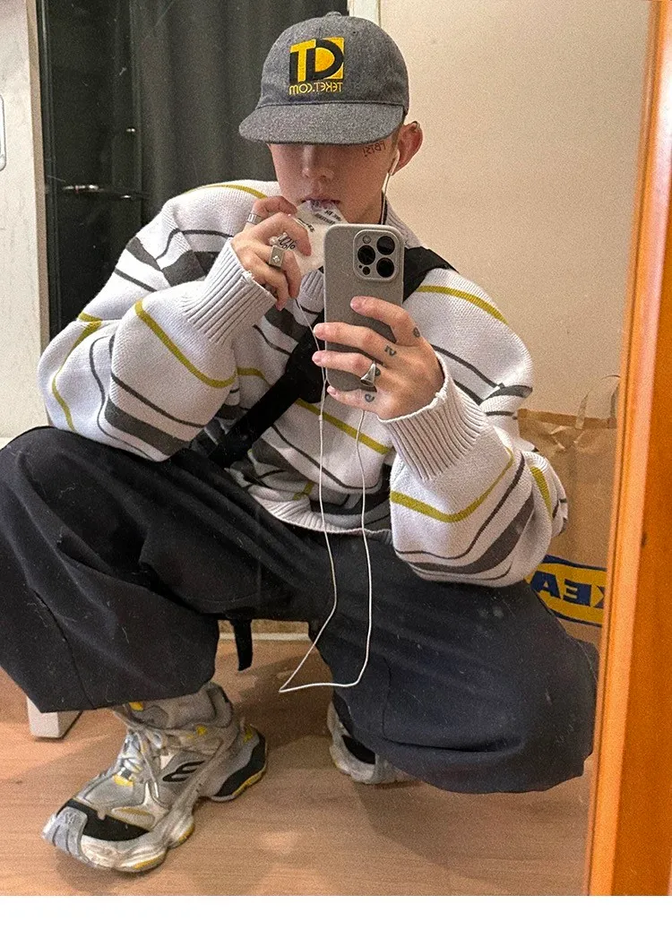AUROCEAN 奶帥少年 破壞 撞色條紋 毛衣(奶白)