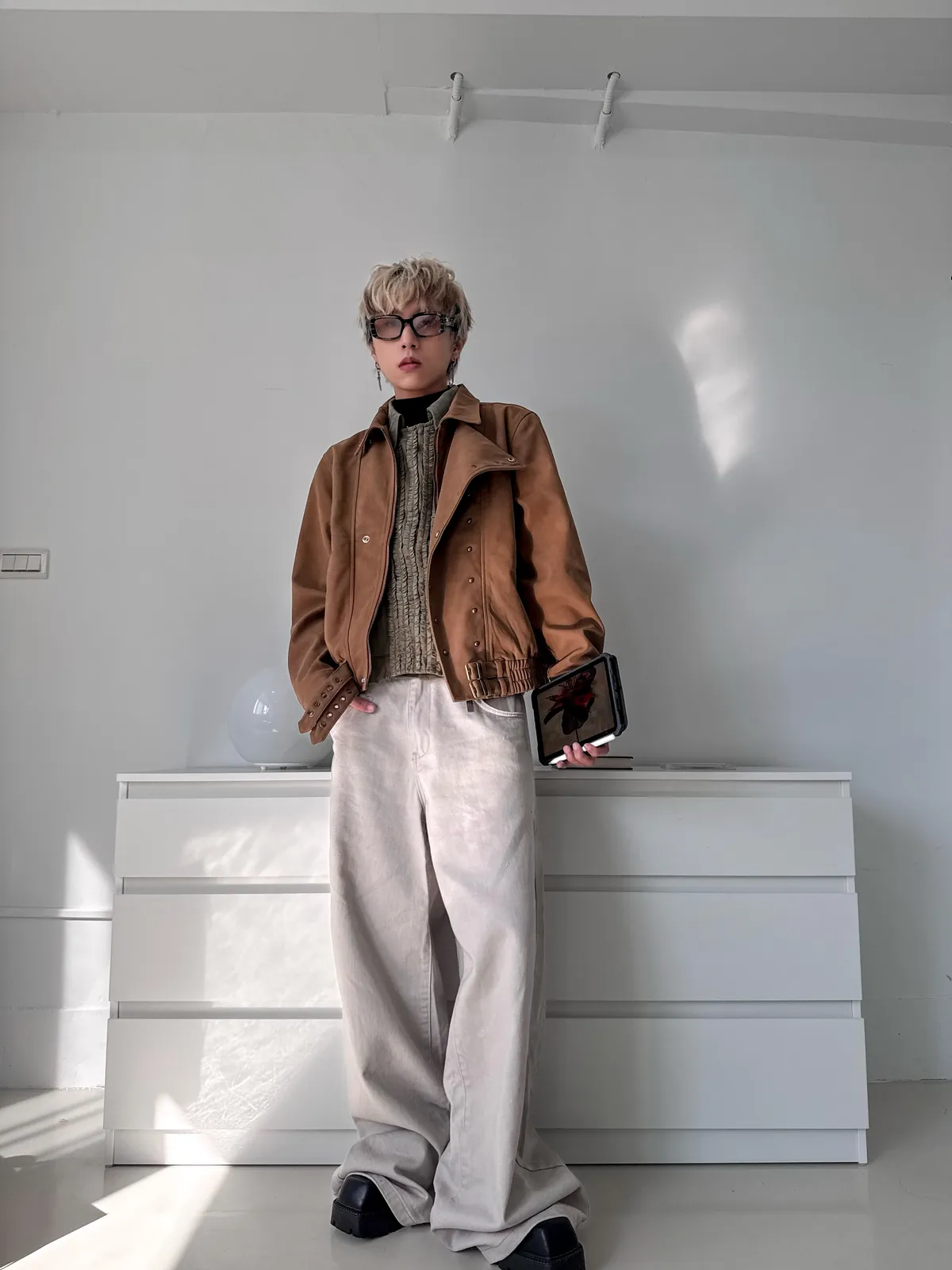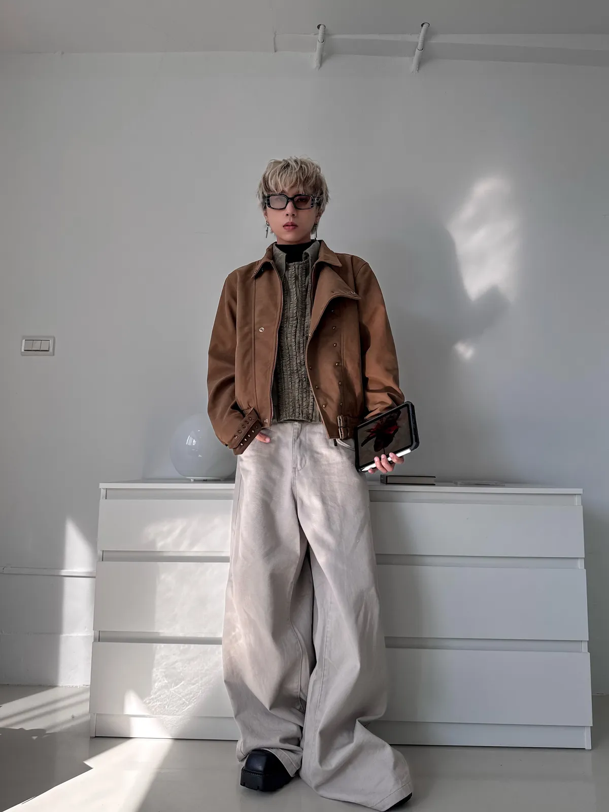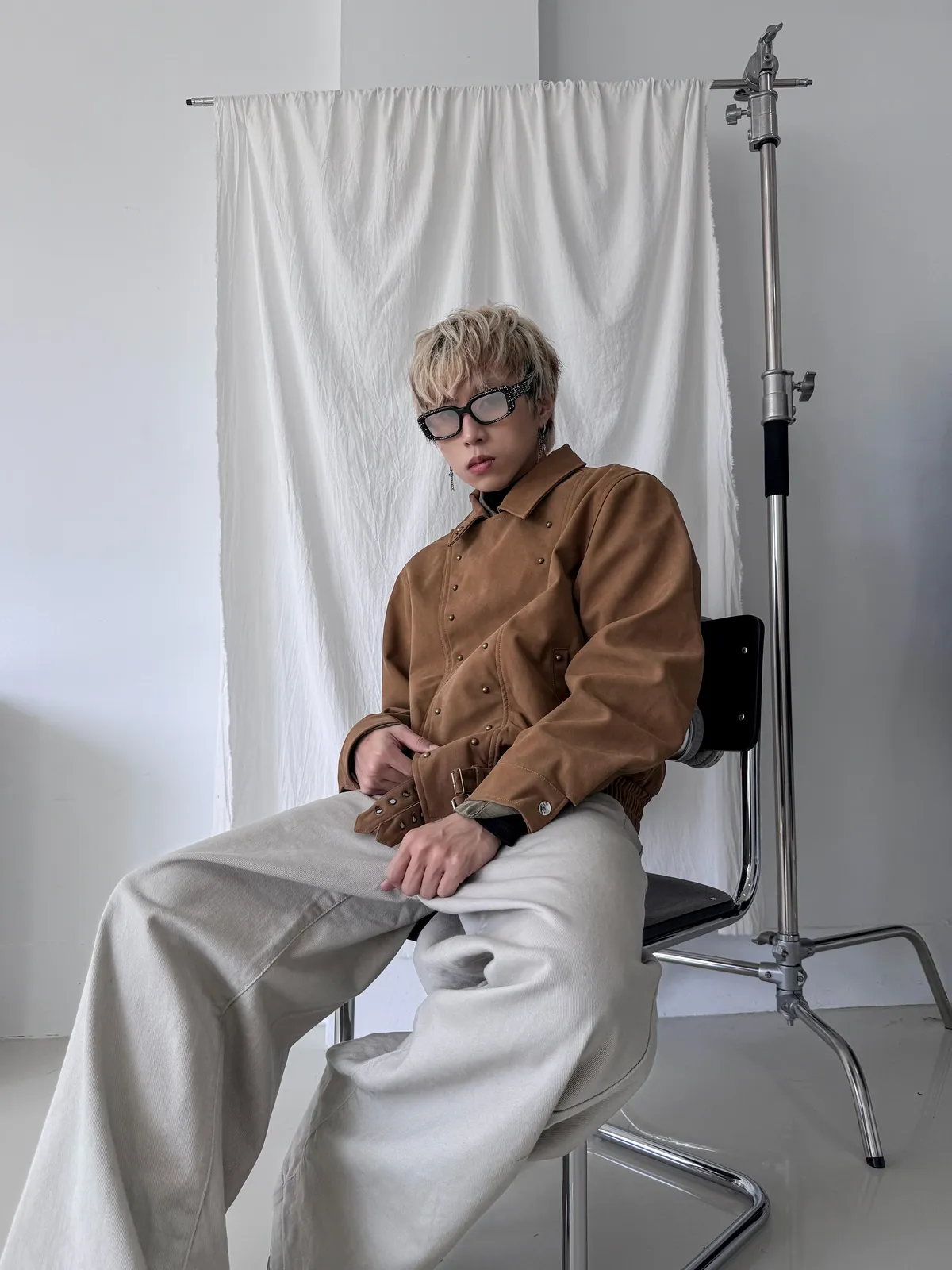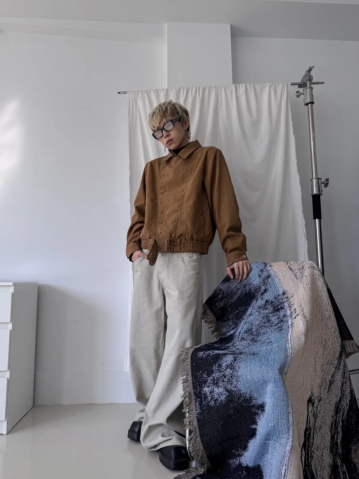RICHILL 麂皮卯釘 寬短 外套(咖啡)