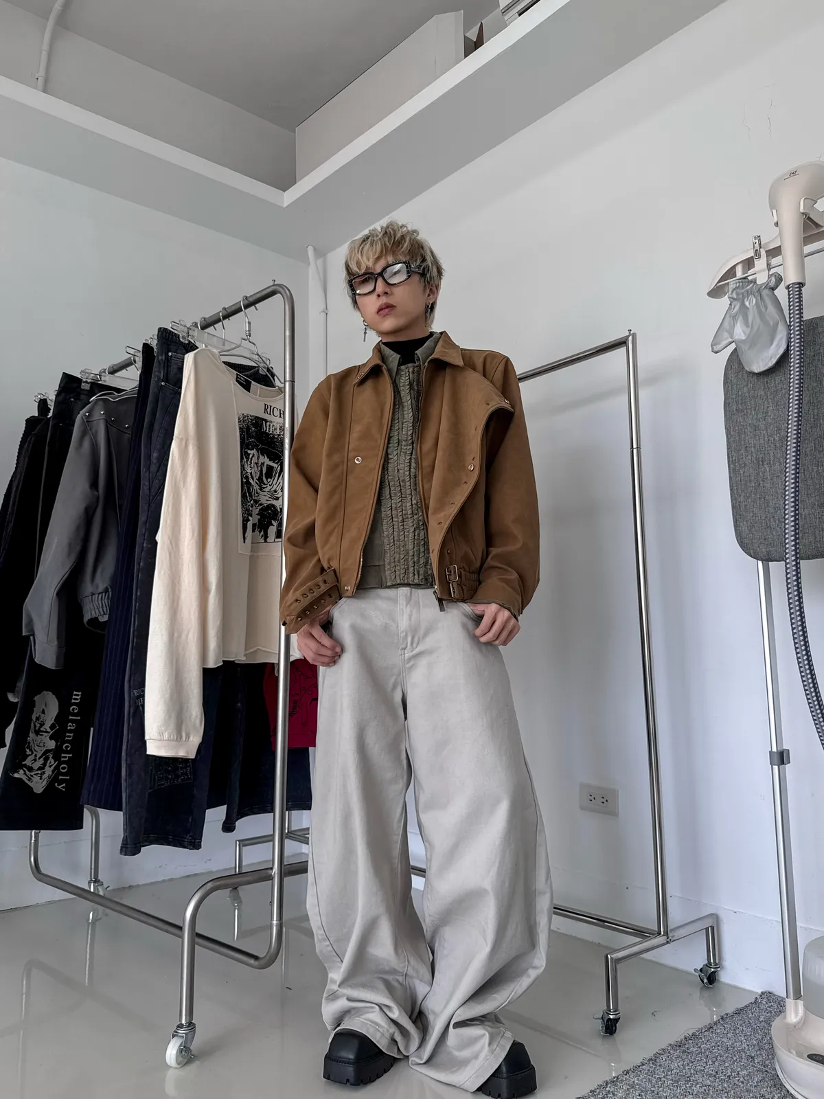 RICHILL 麂皮卯釘 寬短 外套(灰色)