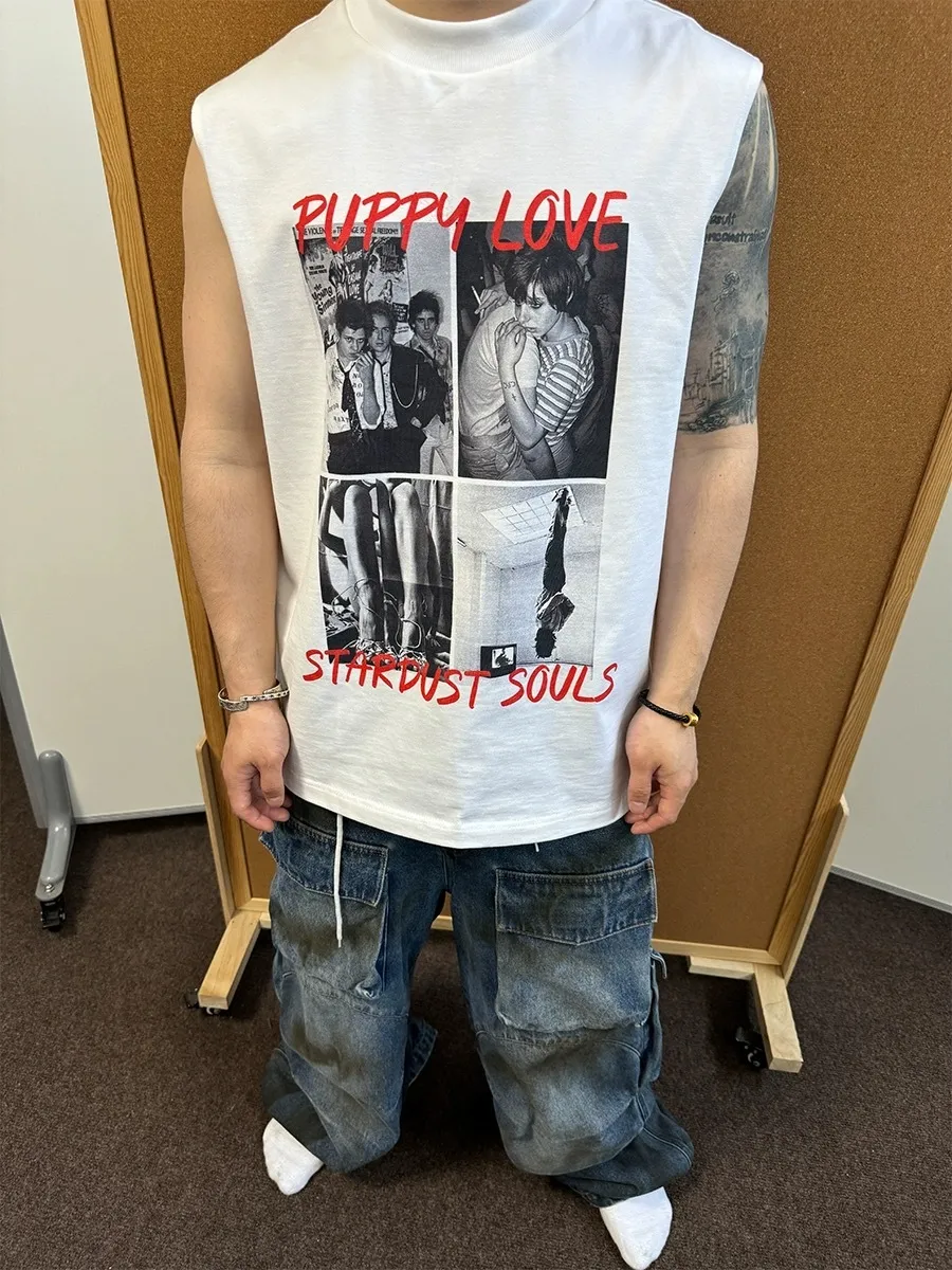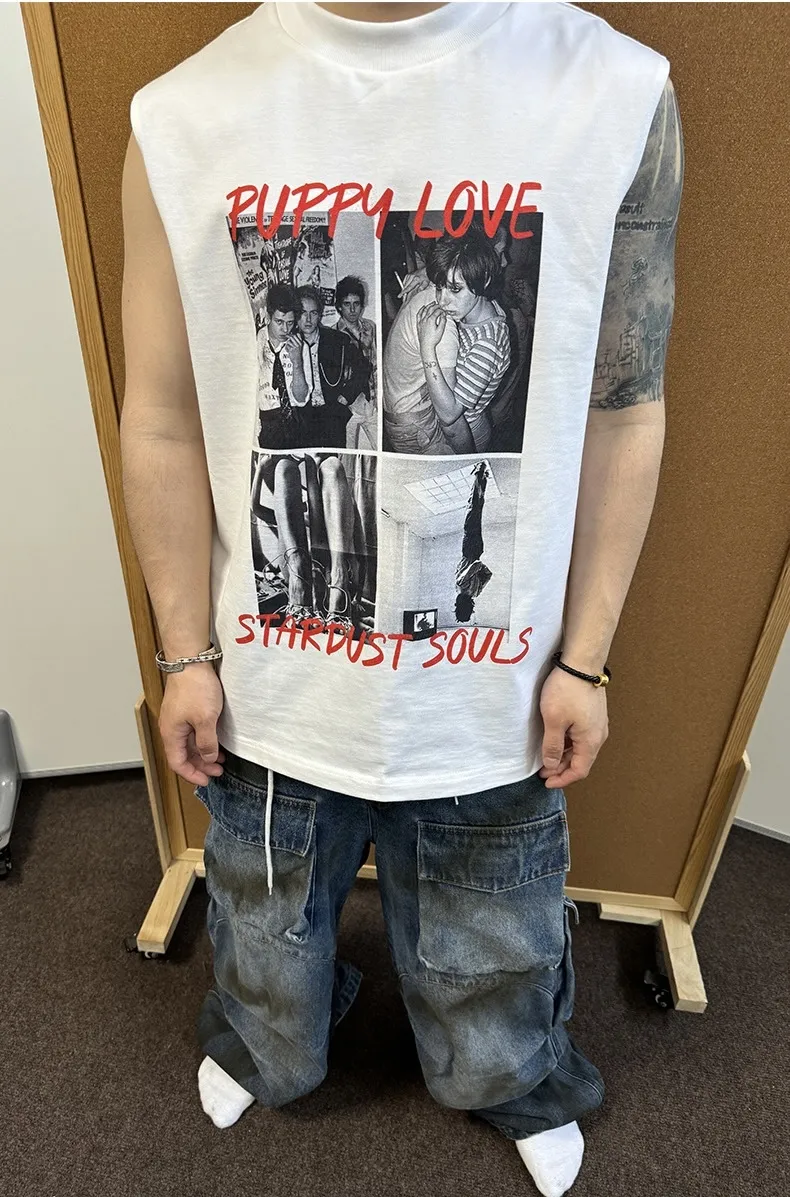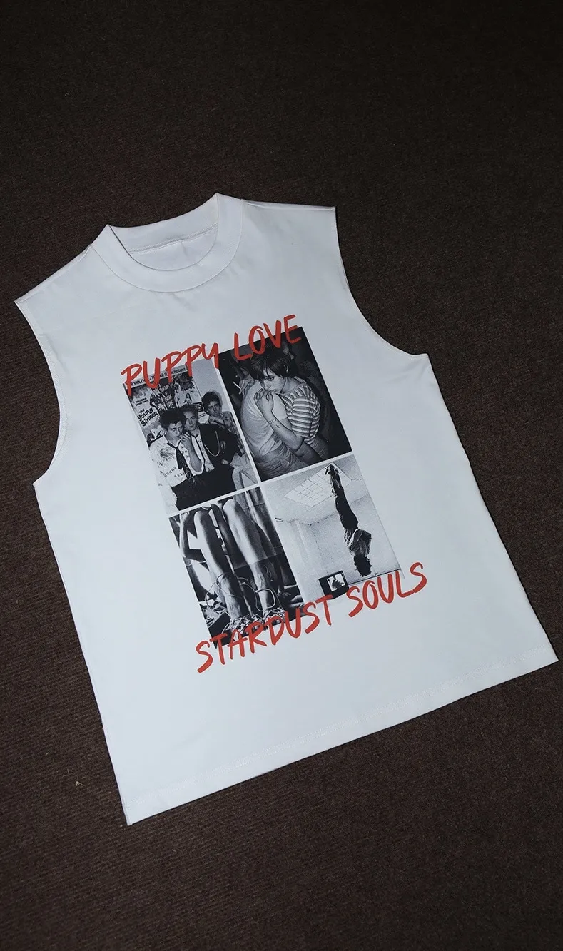 F4F 百搭 報紙感 美術館 人像 坎肩 背心(白色)