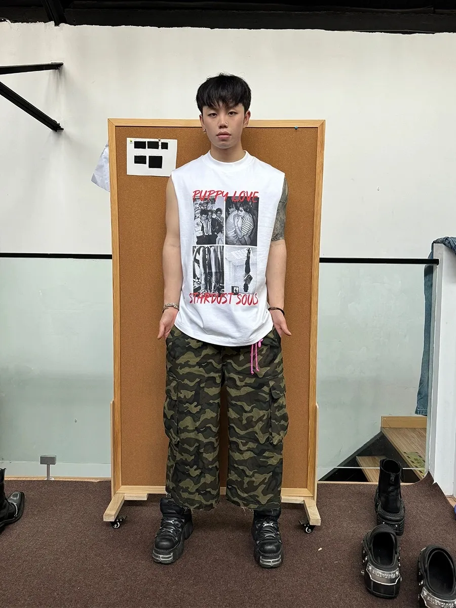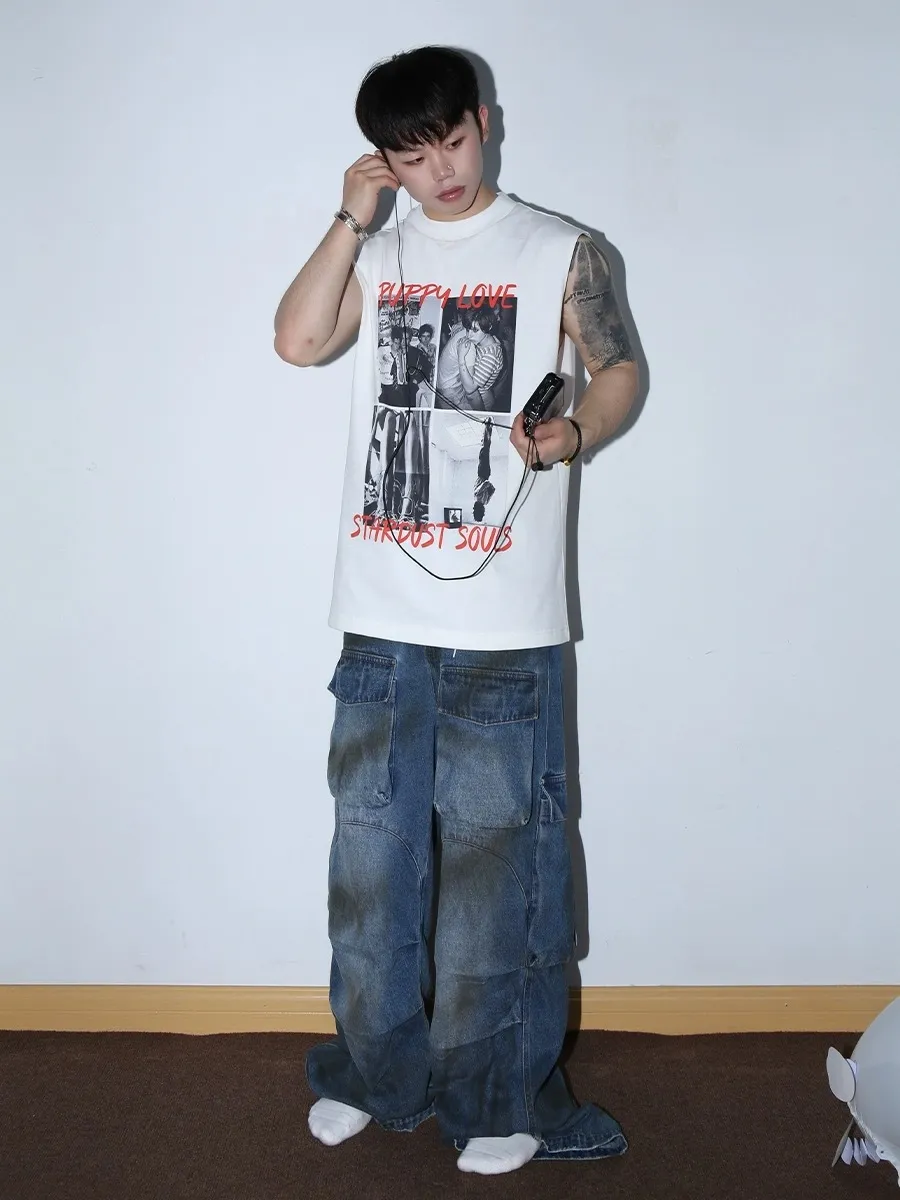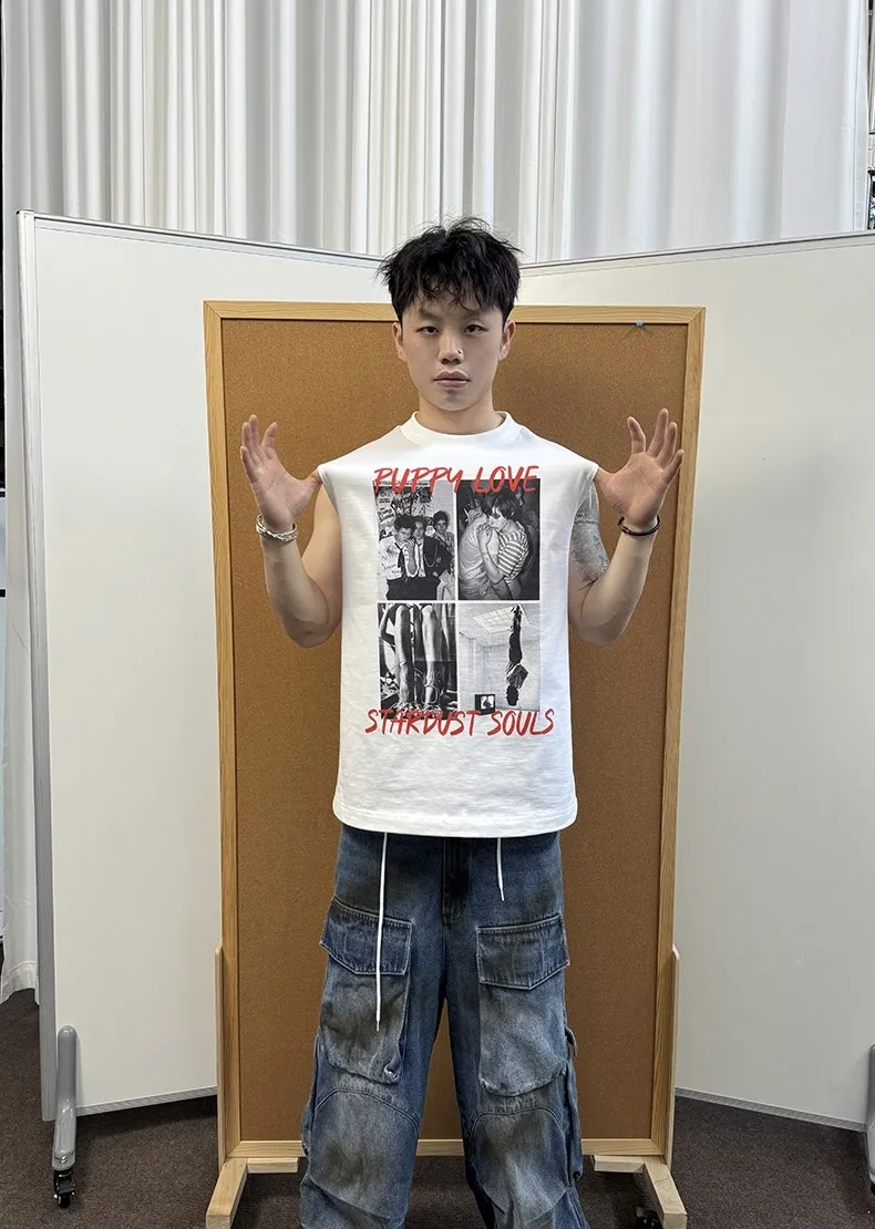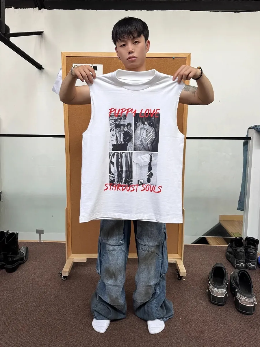 F4F 百搭 報紙感 美術館 人像 坎肩 背心(白色)