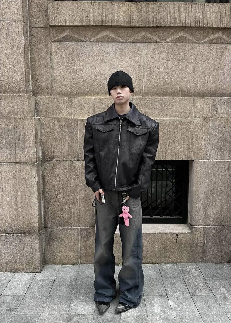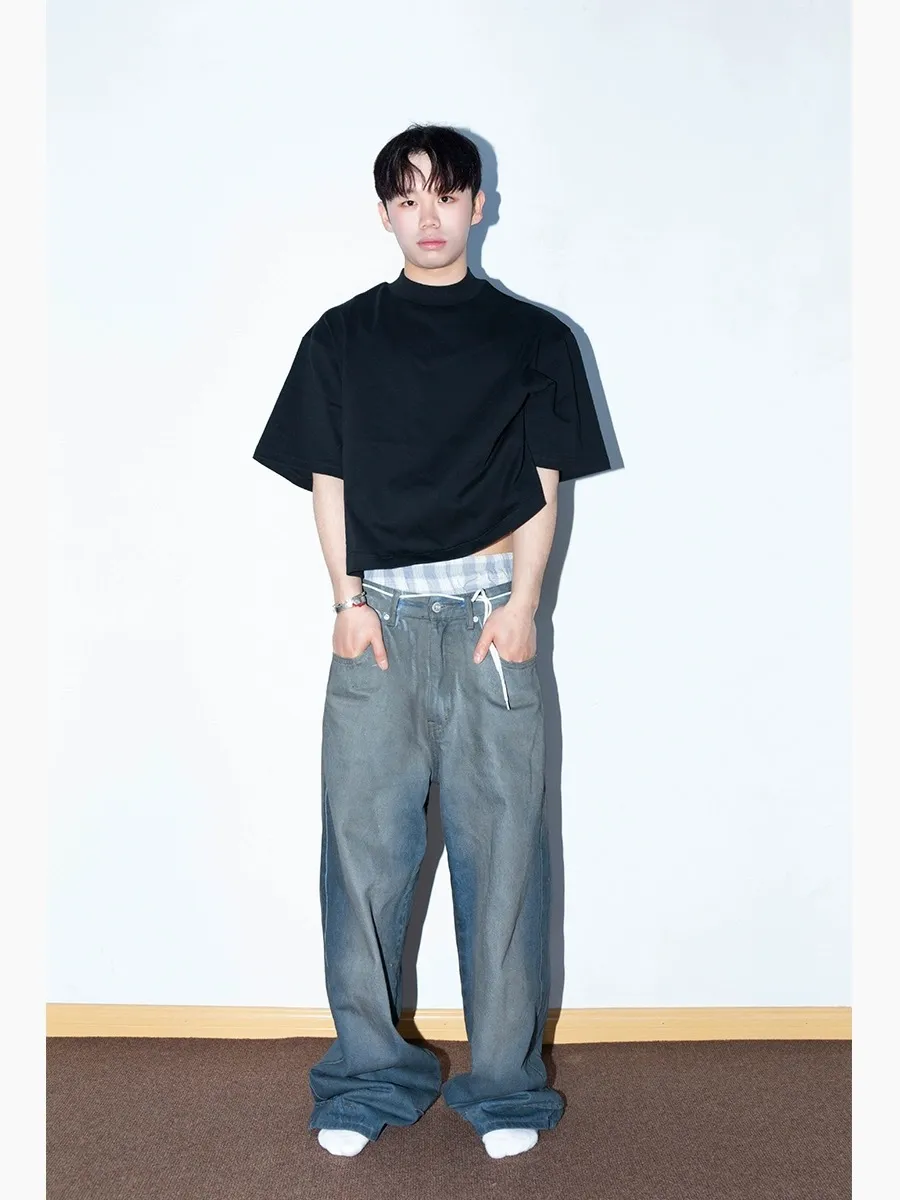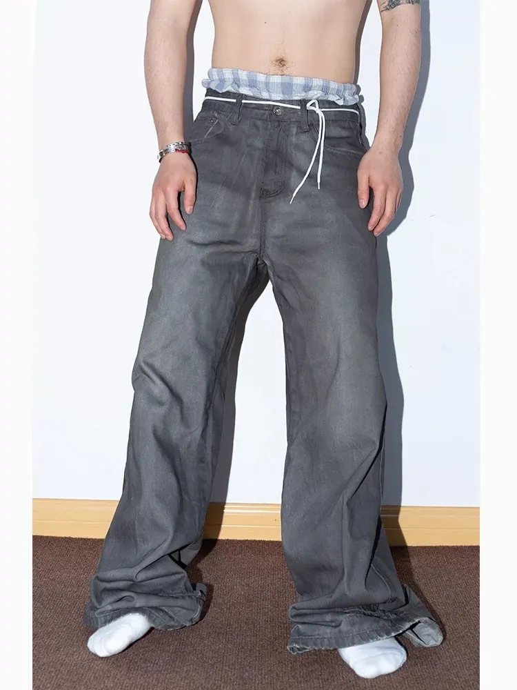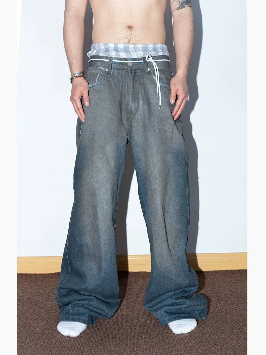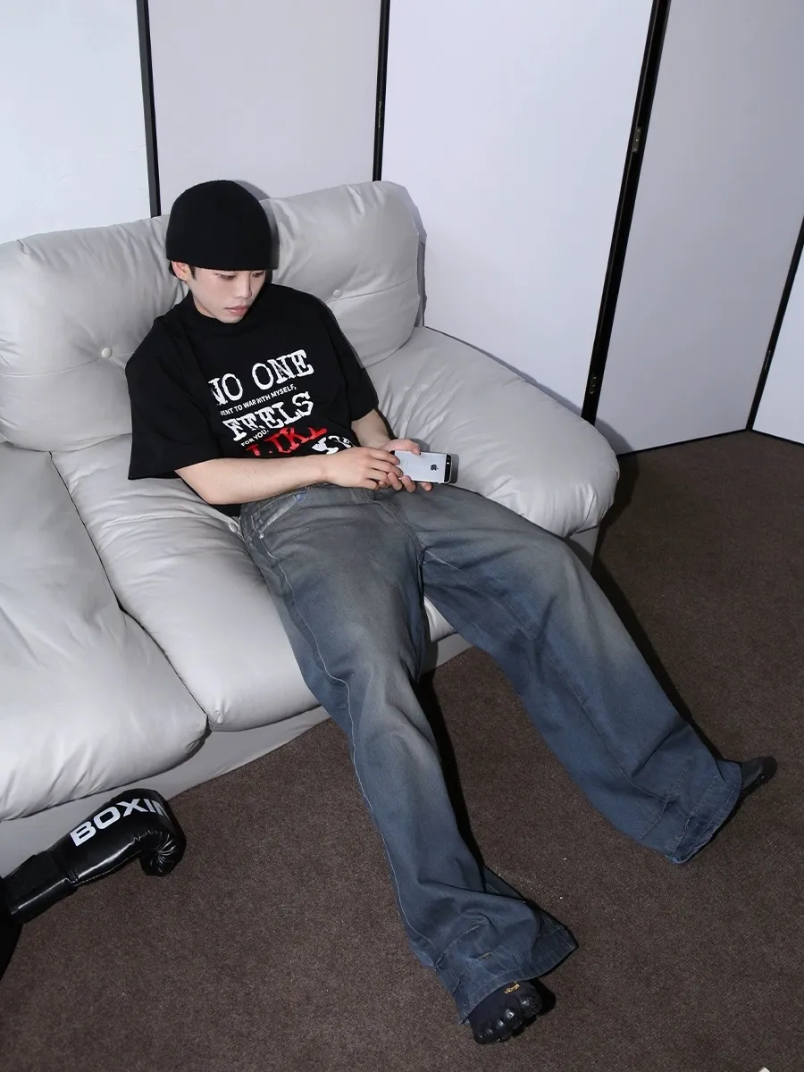 F4F 刷臘做舊 水洗 baggy jeans 牛仔褲(藍/灰)