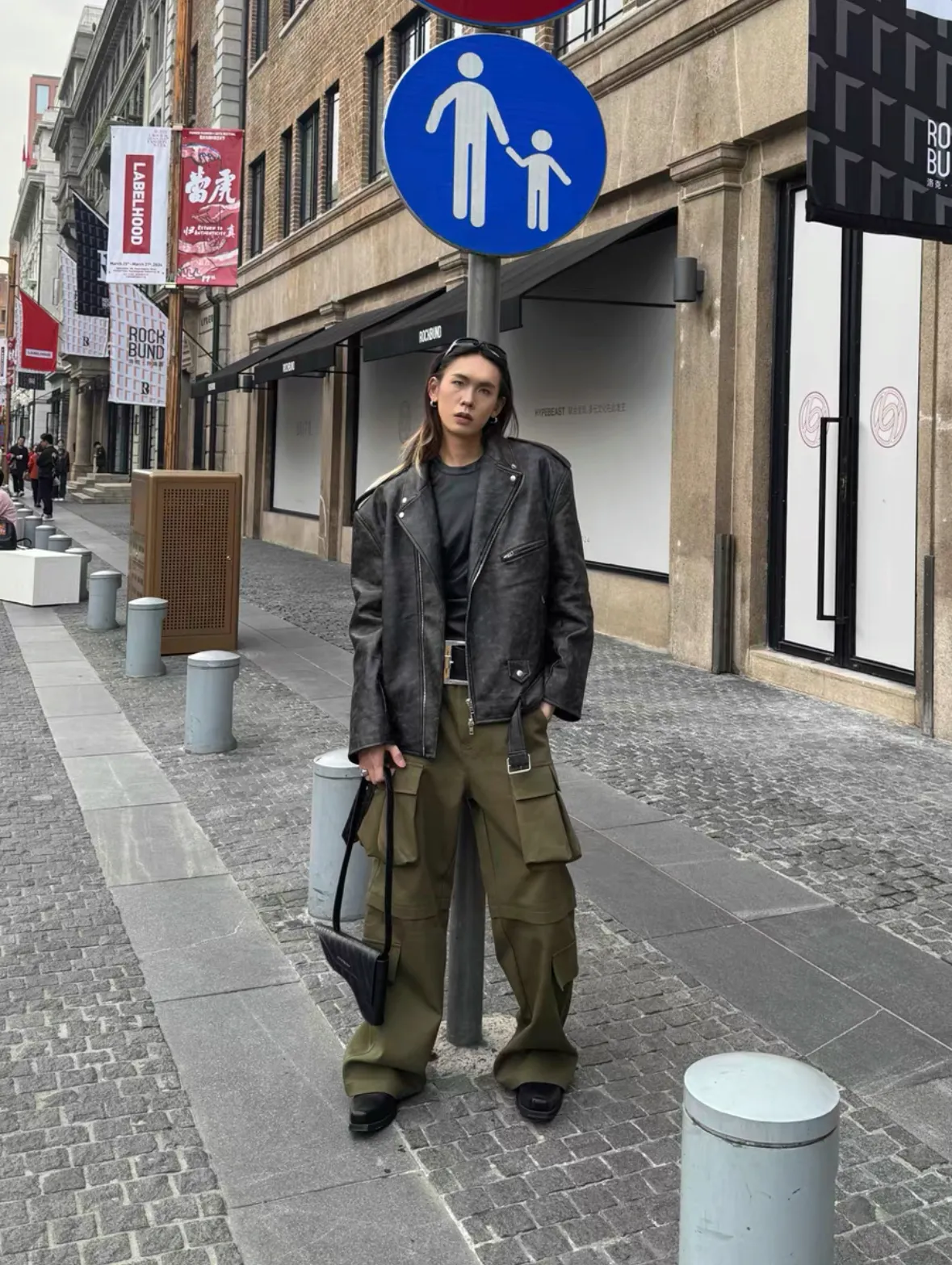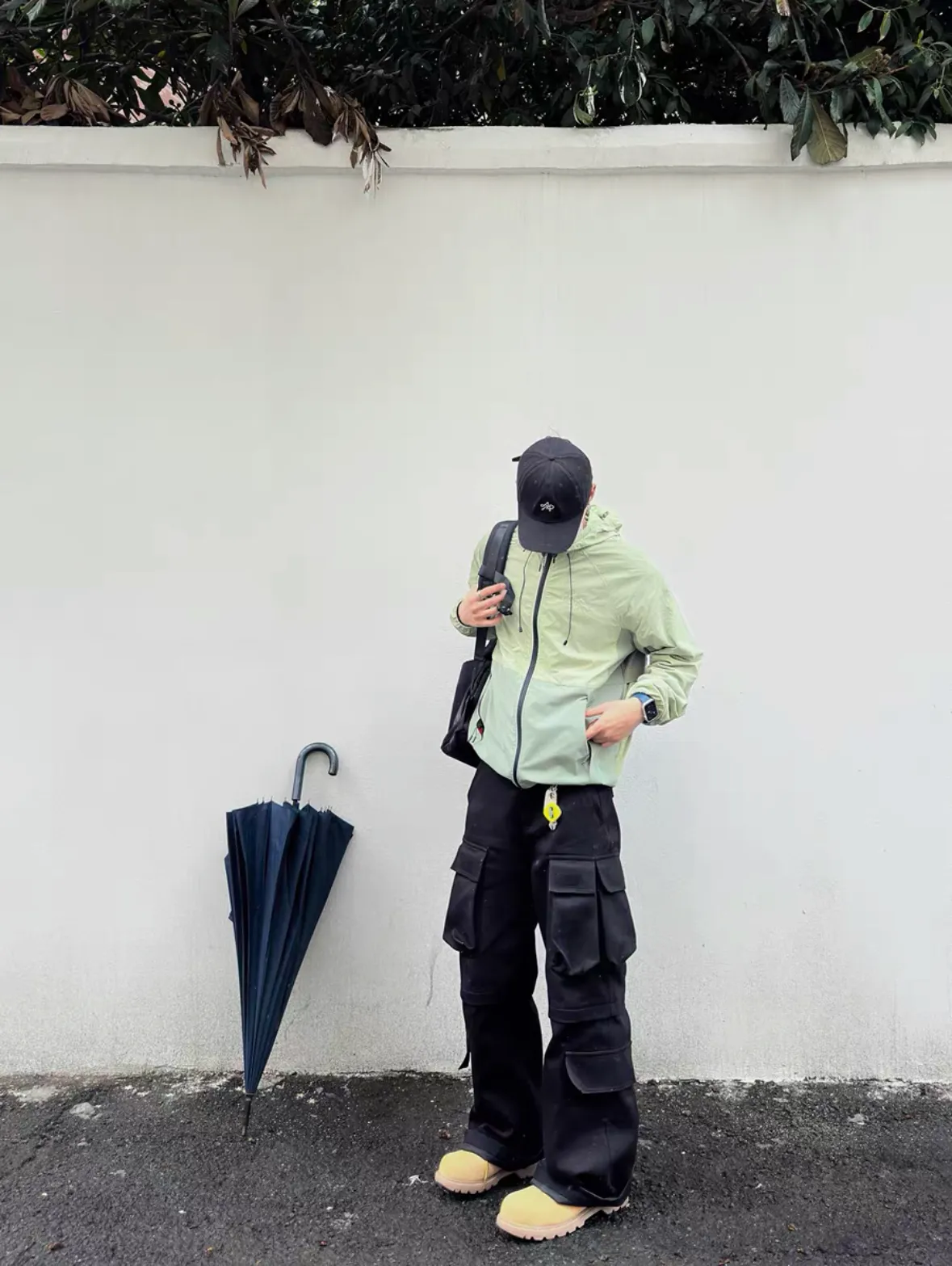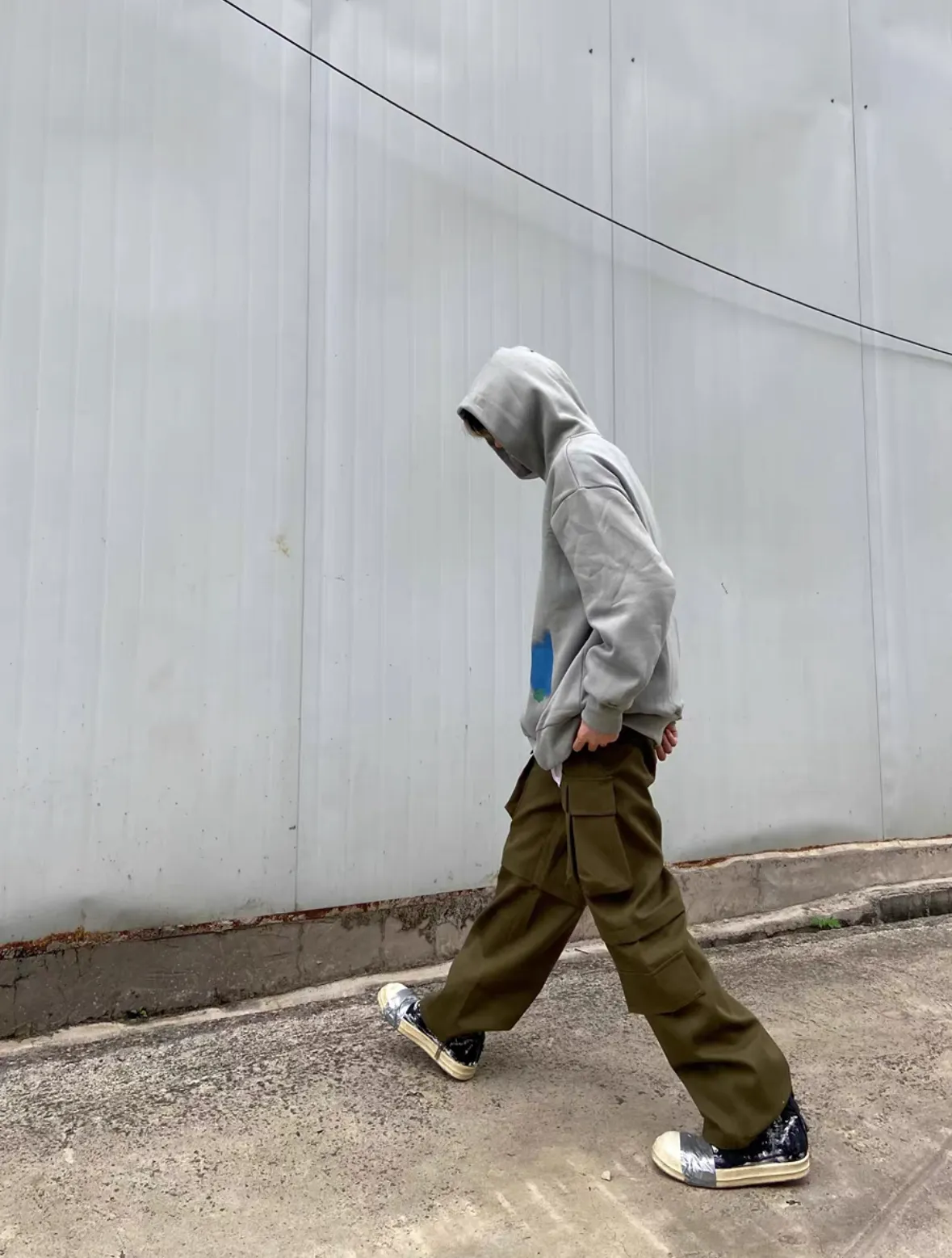 F4F 廓型立體 多口袋 寬鬆 工裝 傘兵褲 長褲(黑/綠)