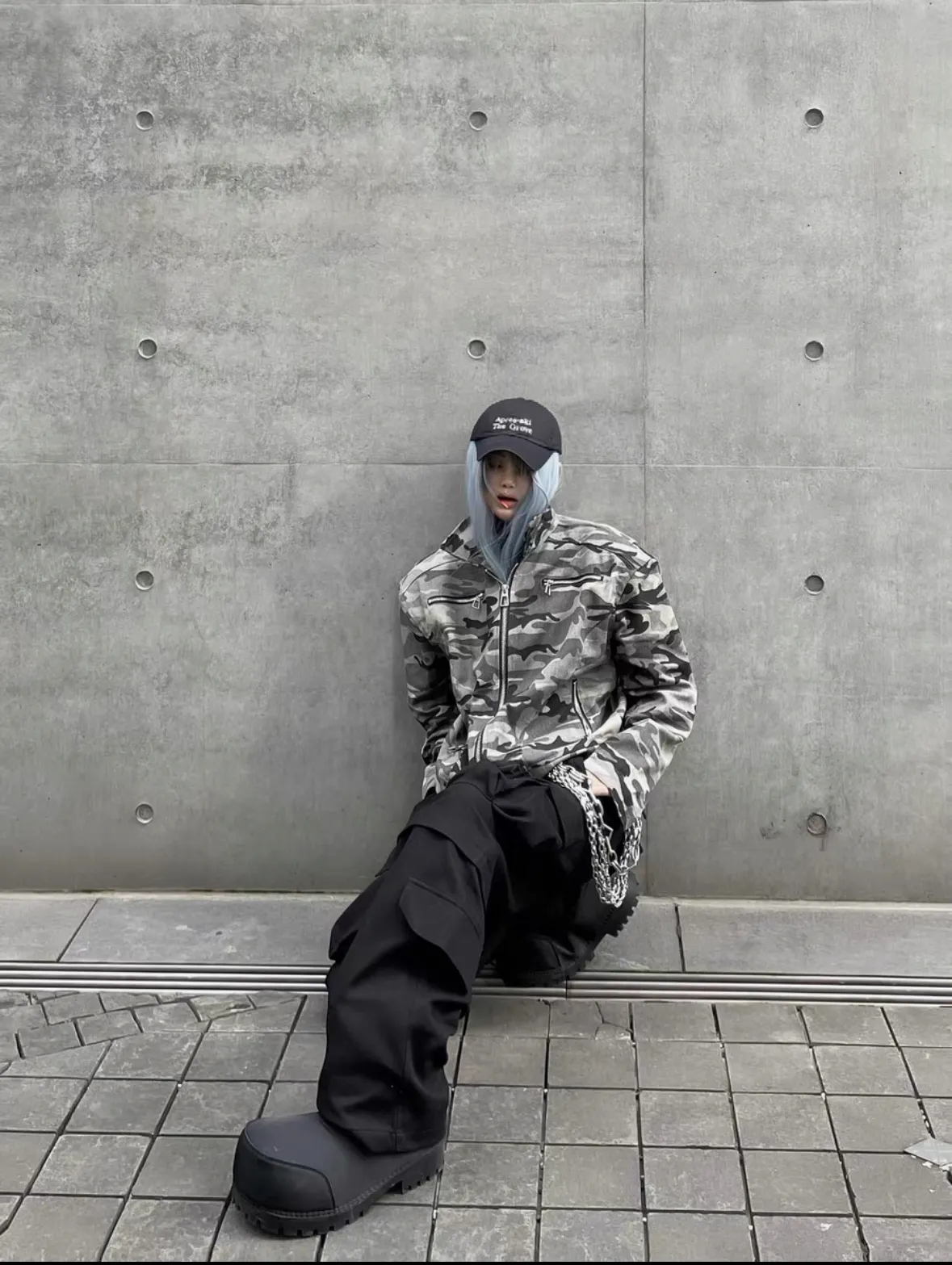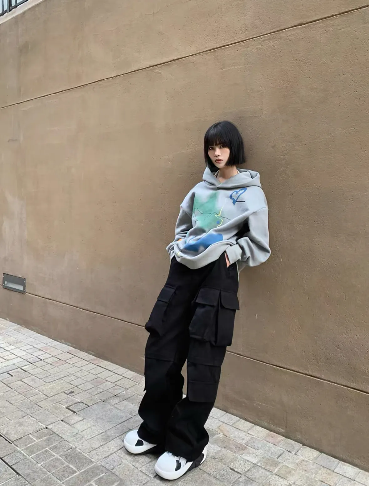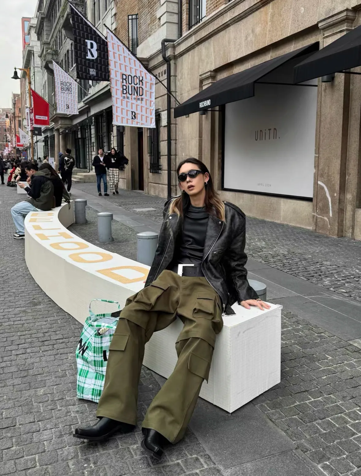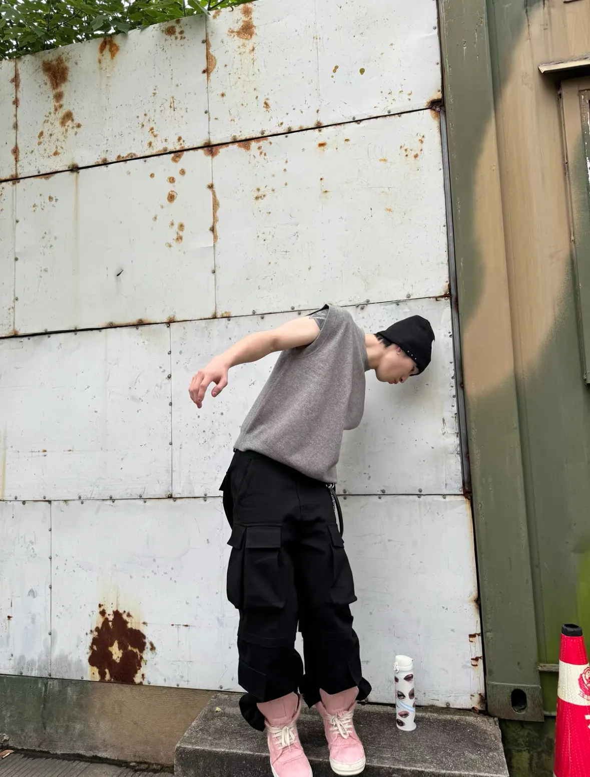 F4F 廓型立體 多口袋 寬鬆 工裝 傘兵褲 長褲(黑/綠)