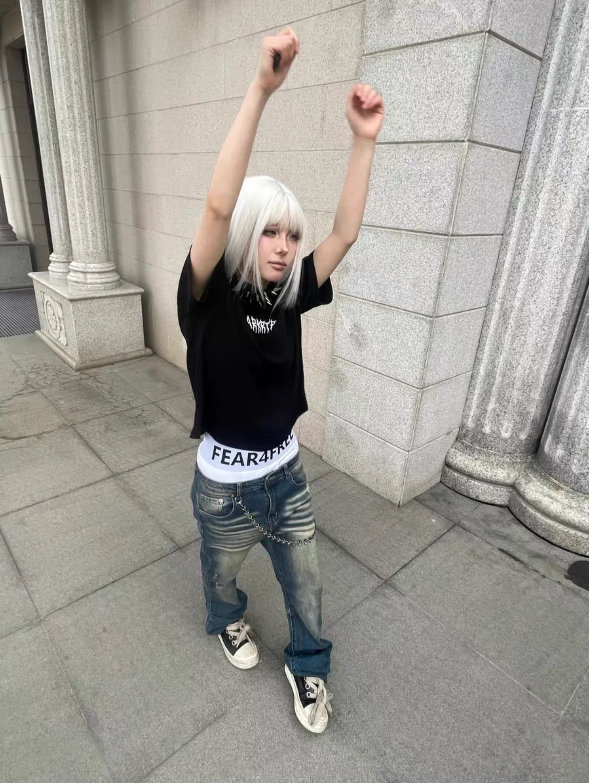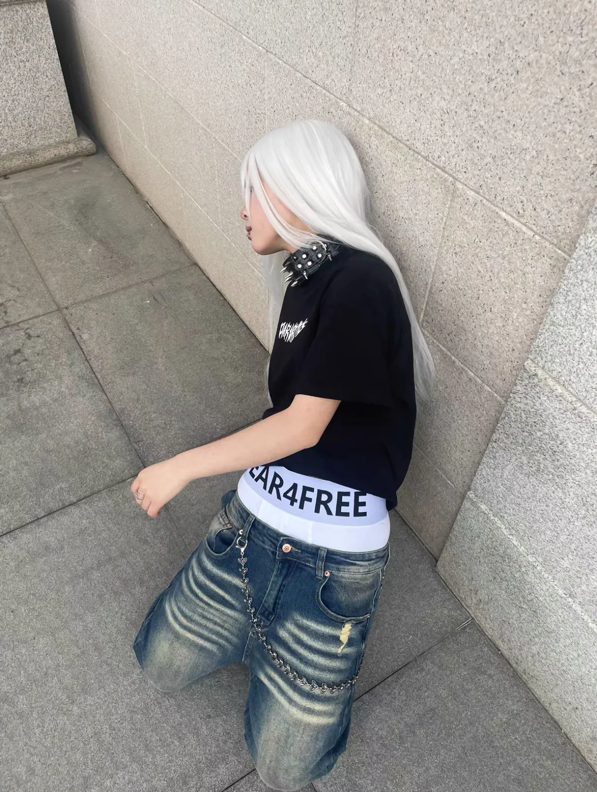 F4F 白迷彩 baggy 立體版型 牛仔褲(白迷彩)