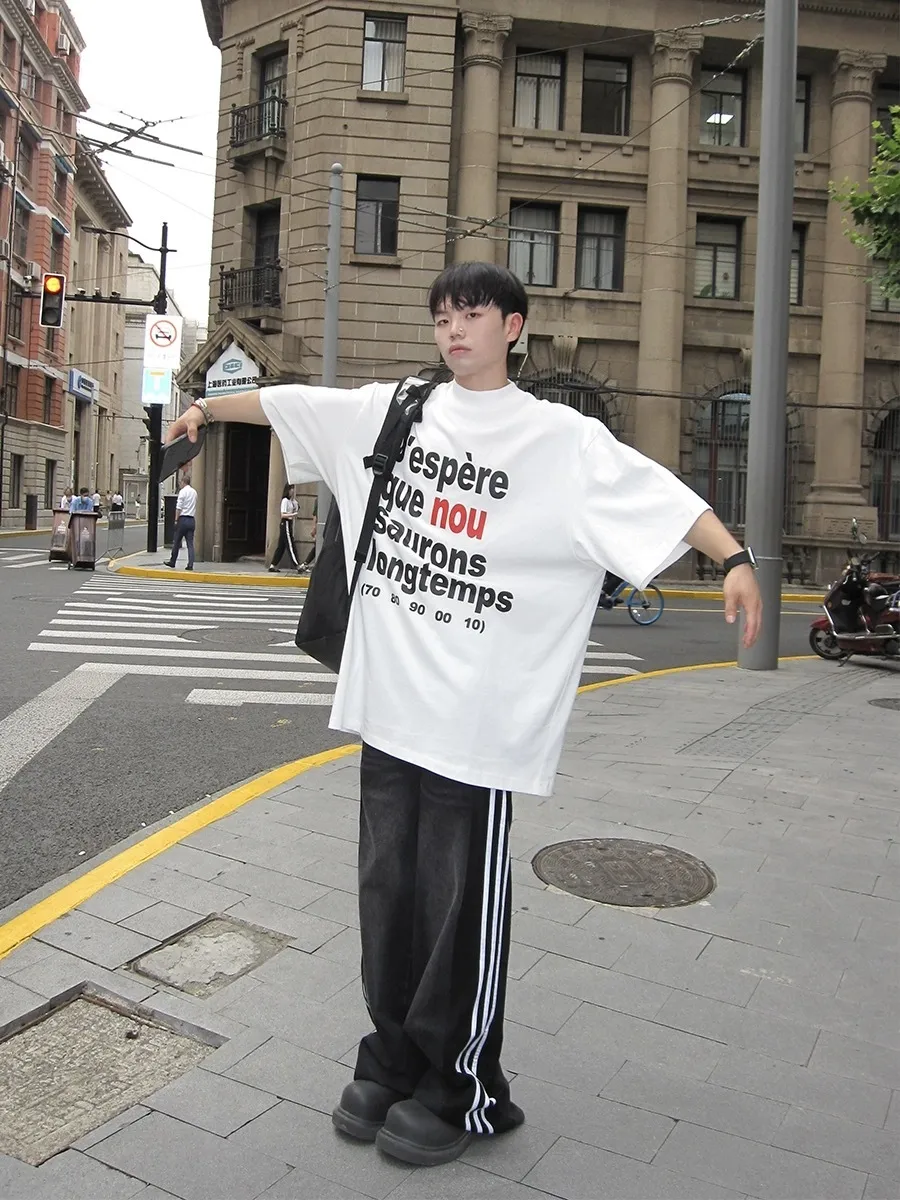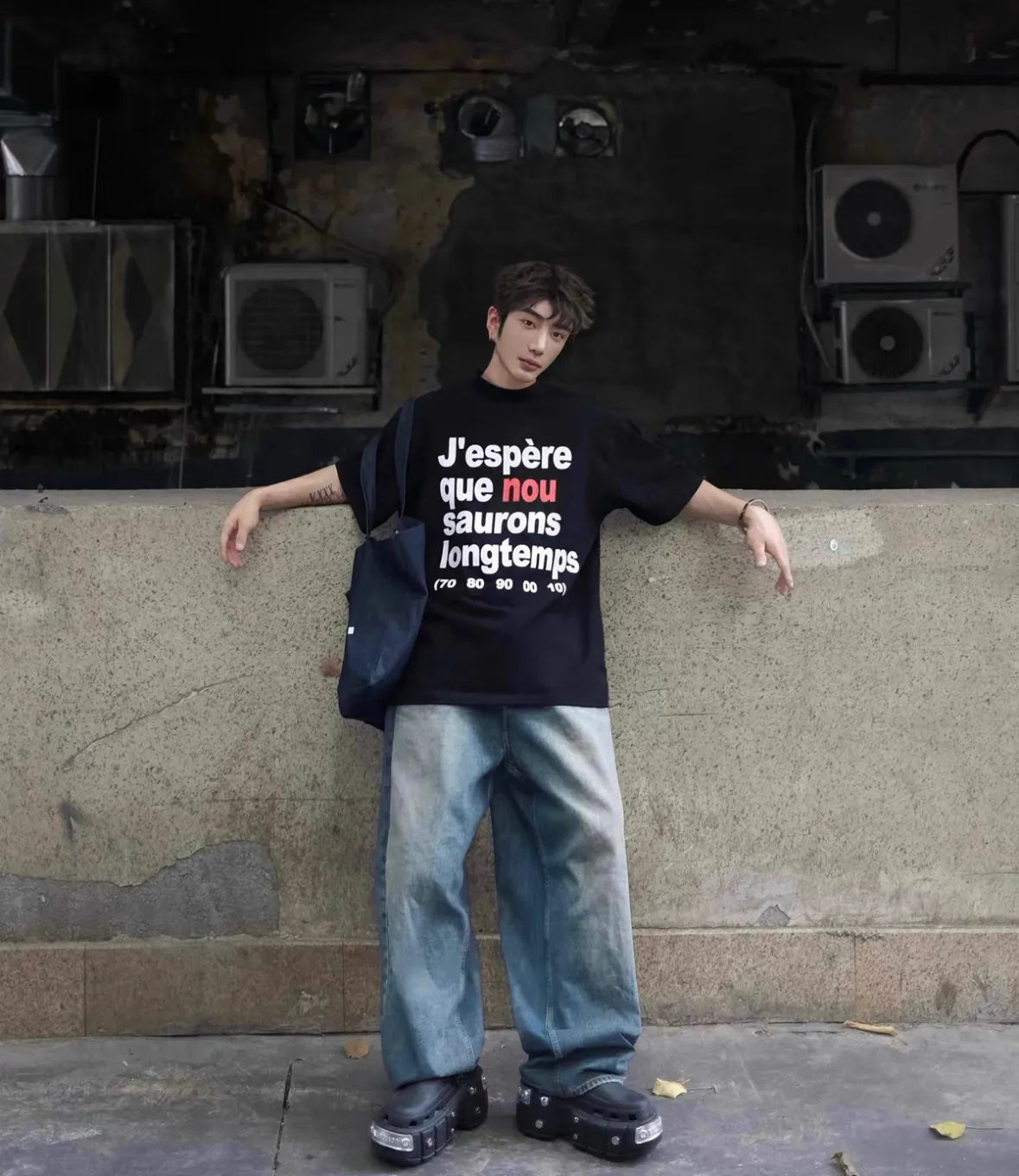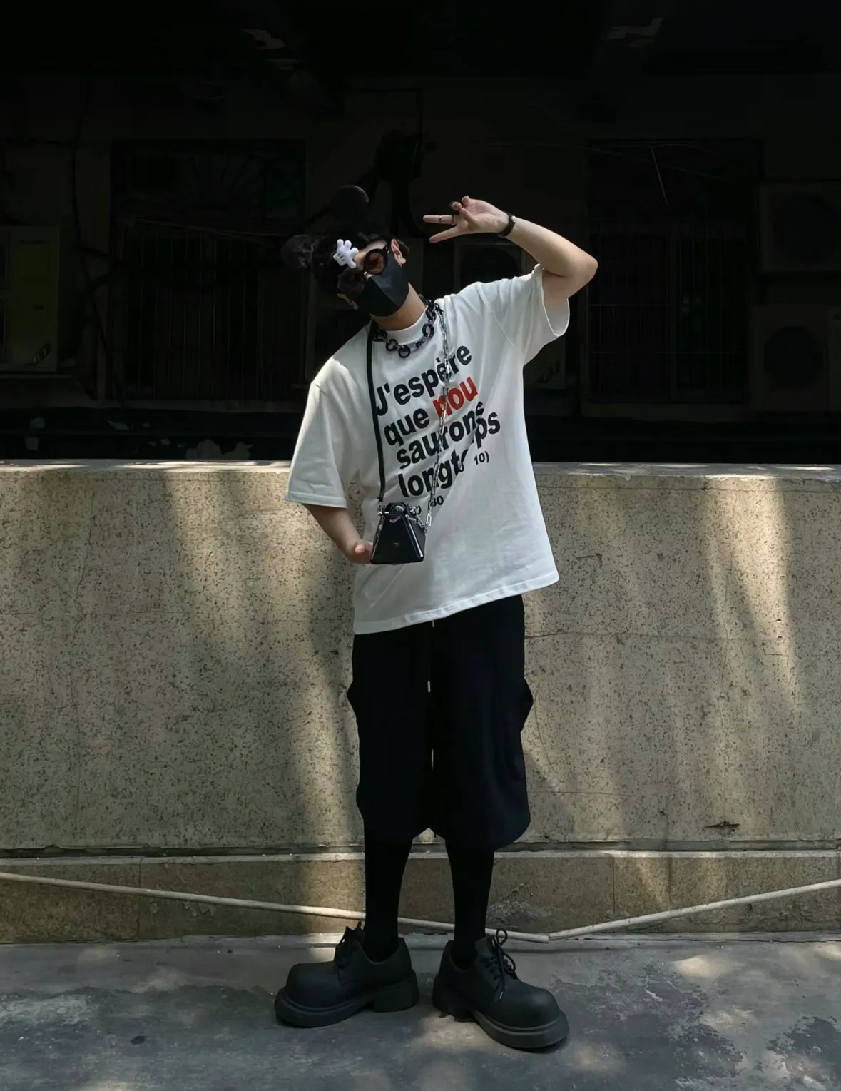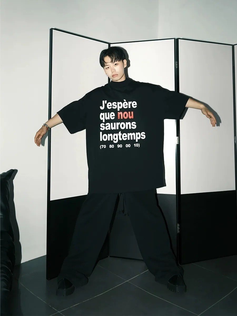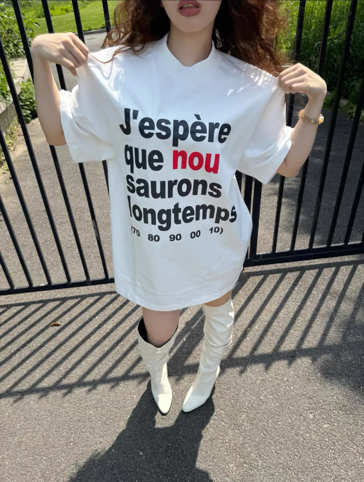 F4F 法文 標語 寬鬆 百搭 重磅 小領口 短袖(黑/白)