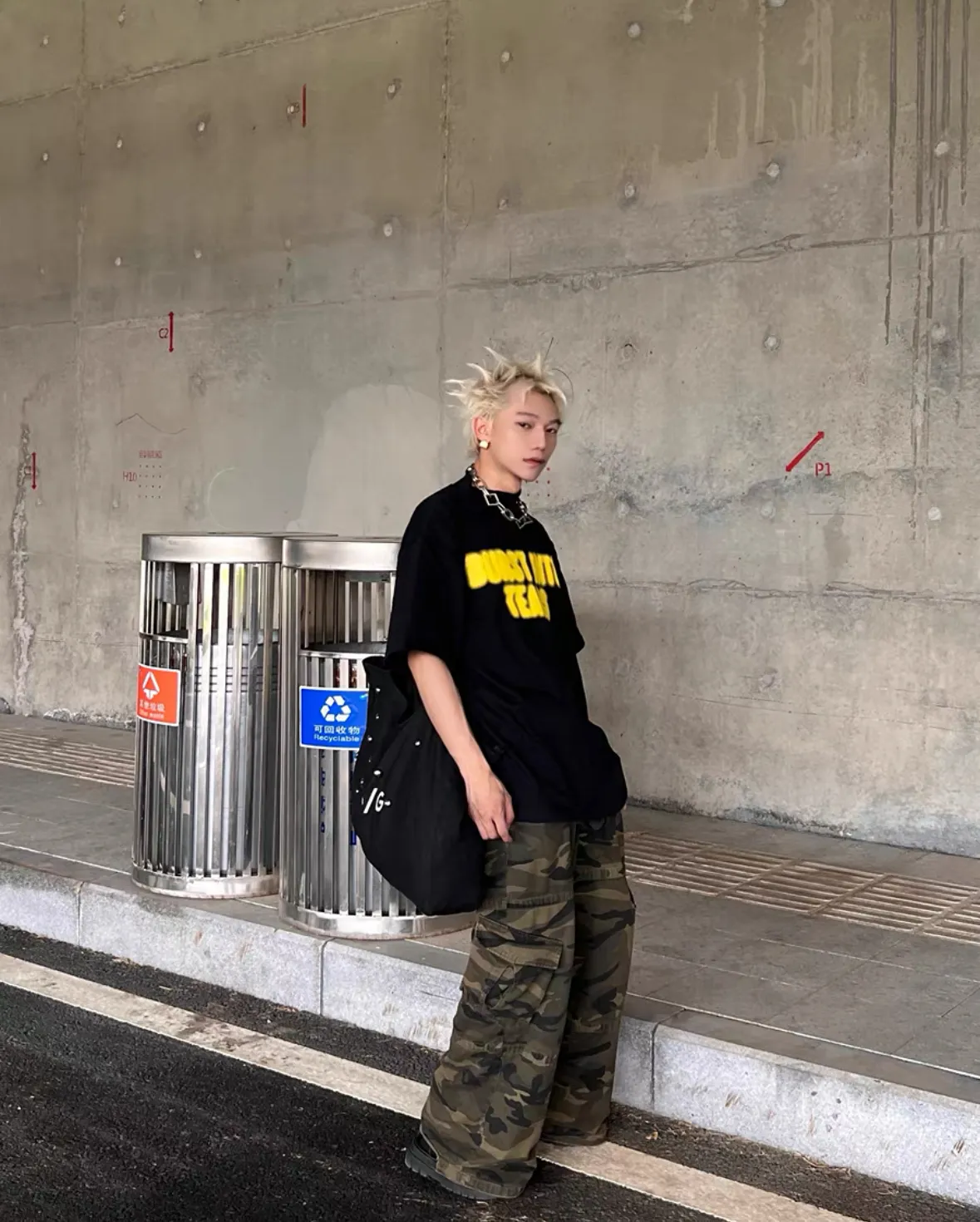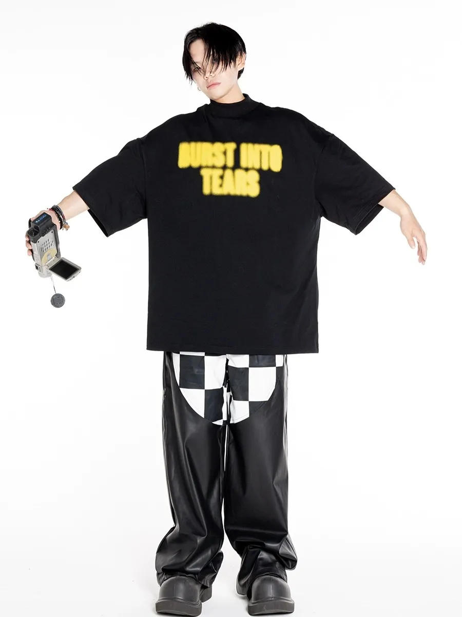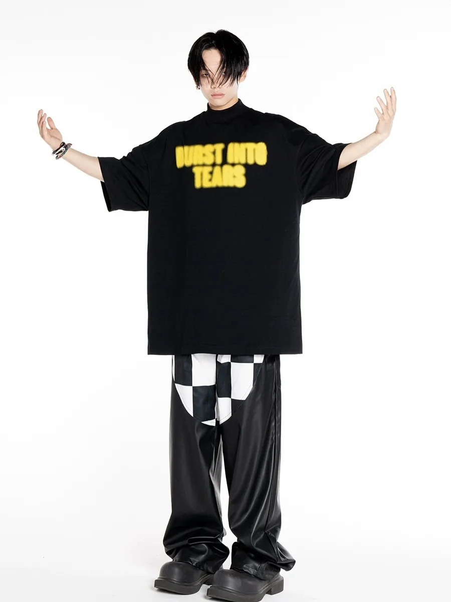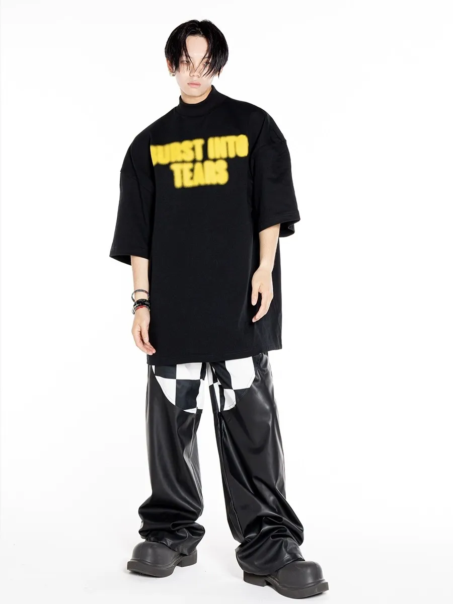 F4F 無性別 模糊字體 撞色 小高領 短袖(黑色)