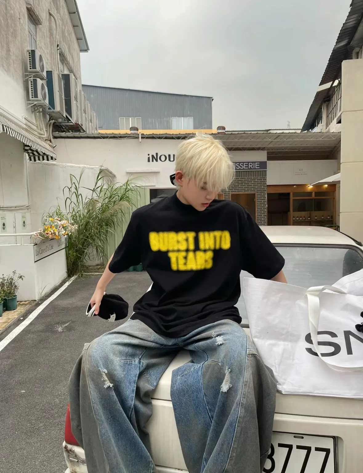F4F 法文 標語 寬鬆 百搭 重磅 小領口 短袖(黑/白)