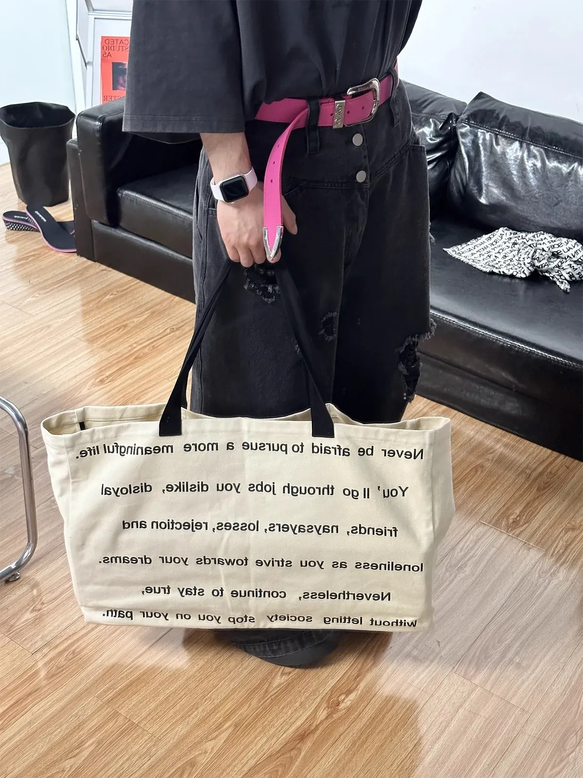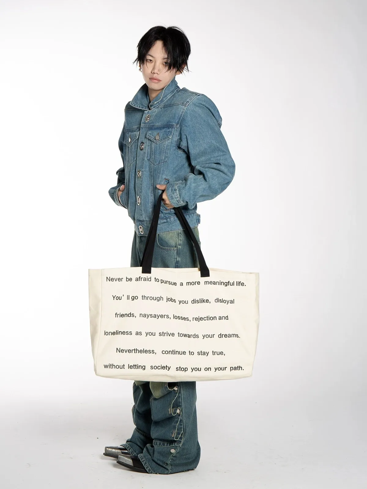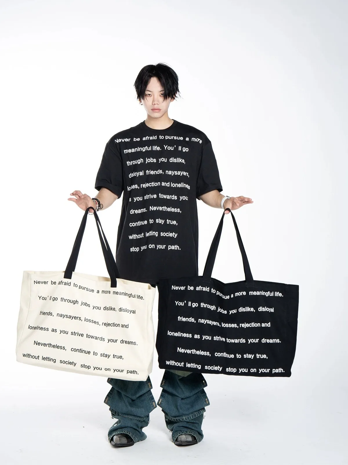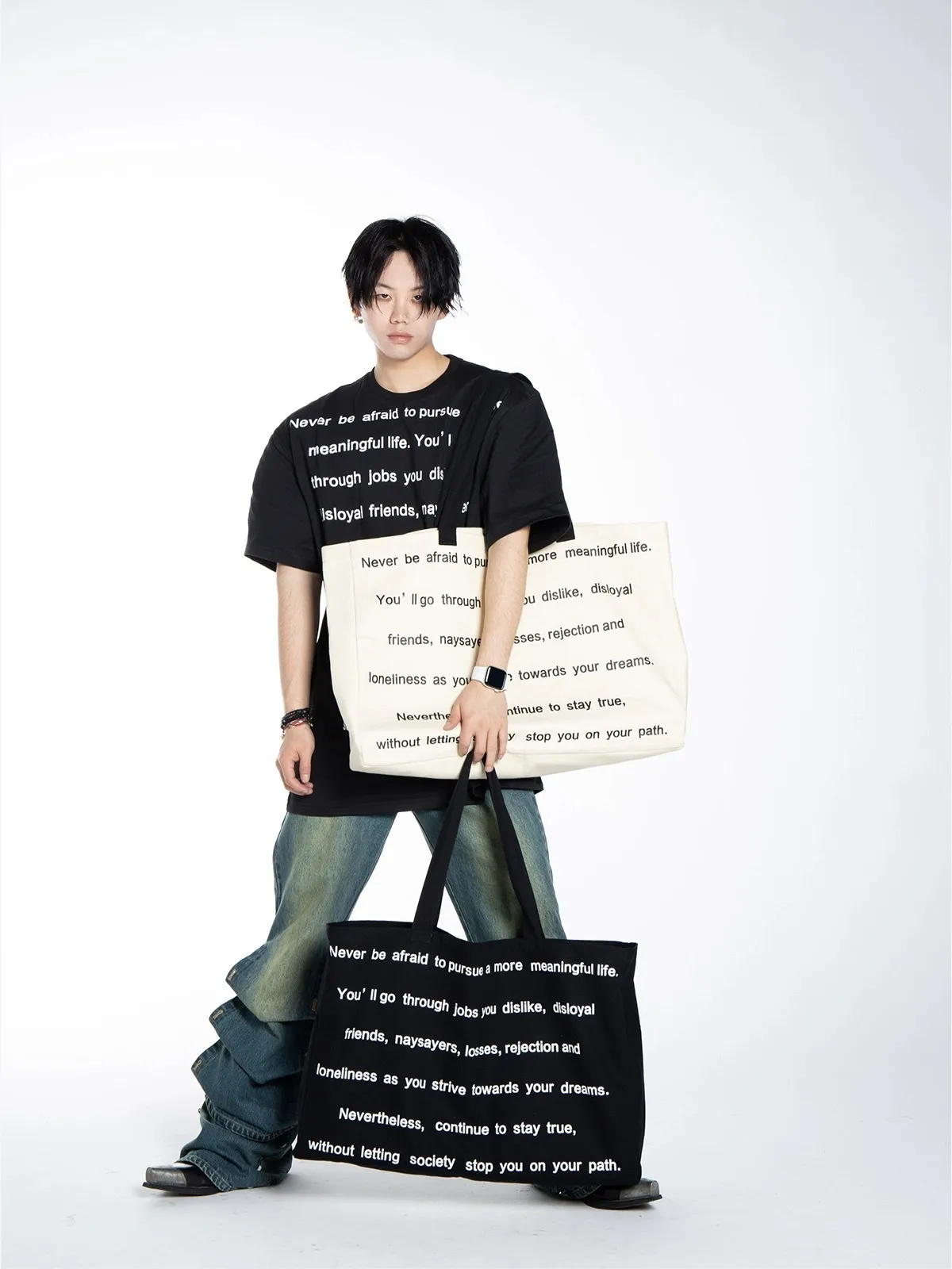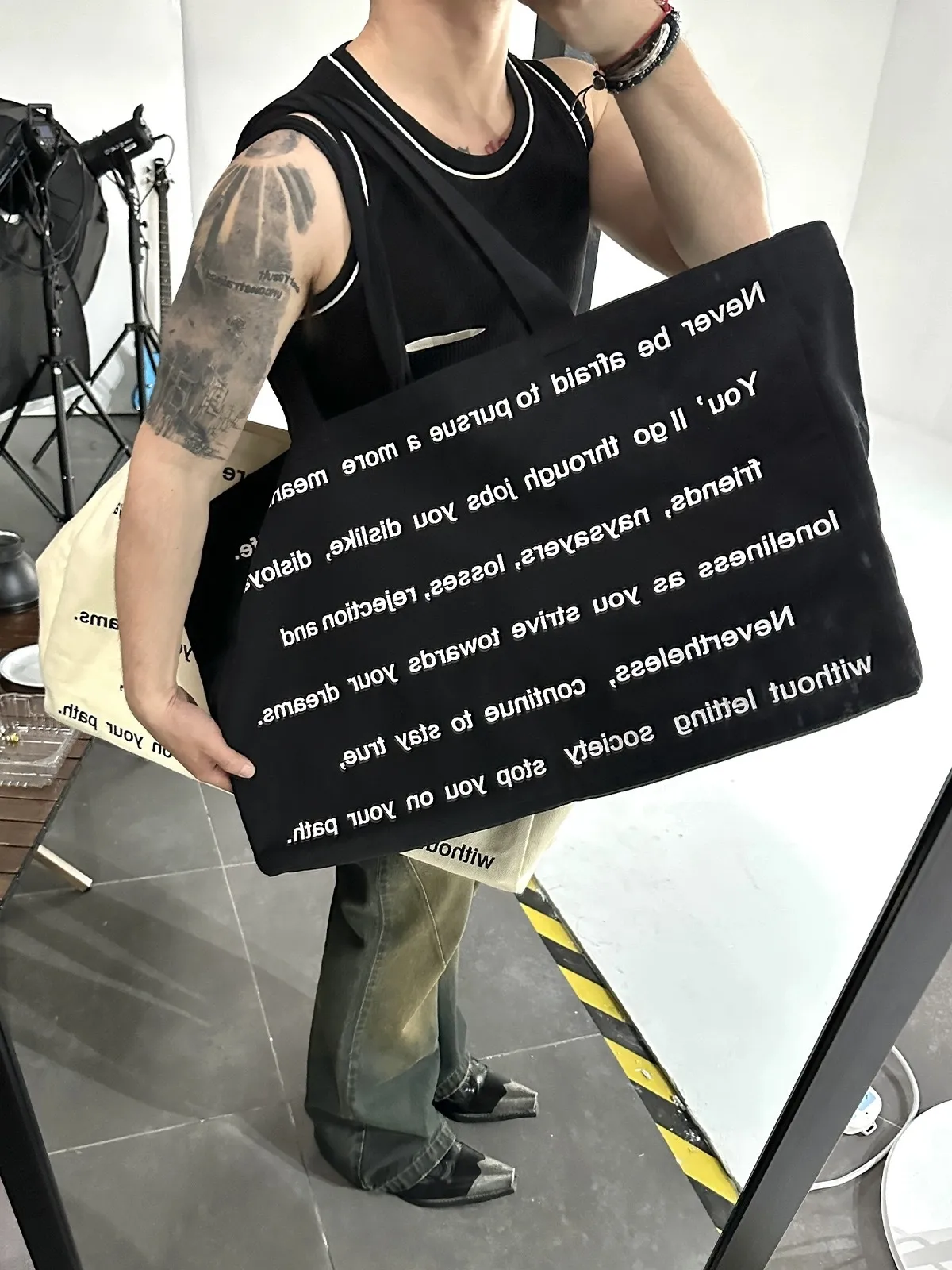 F4F 超大容量 滿版字母 致敬熱愛生活的人 托特包 (黑/米白)
